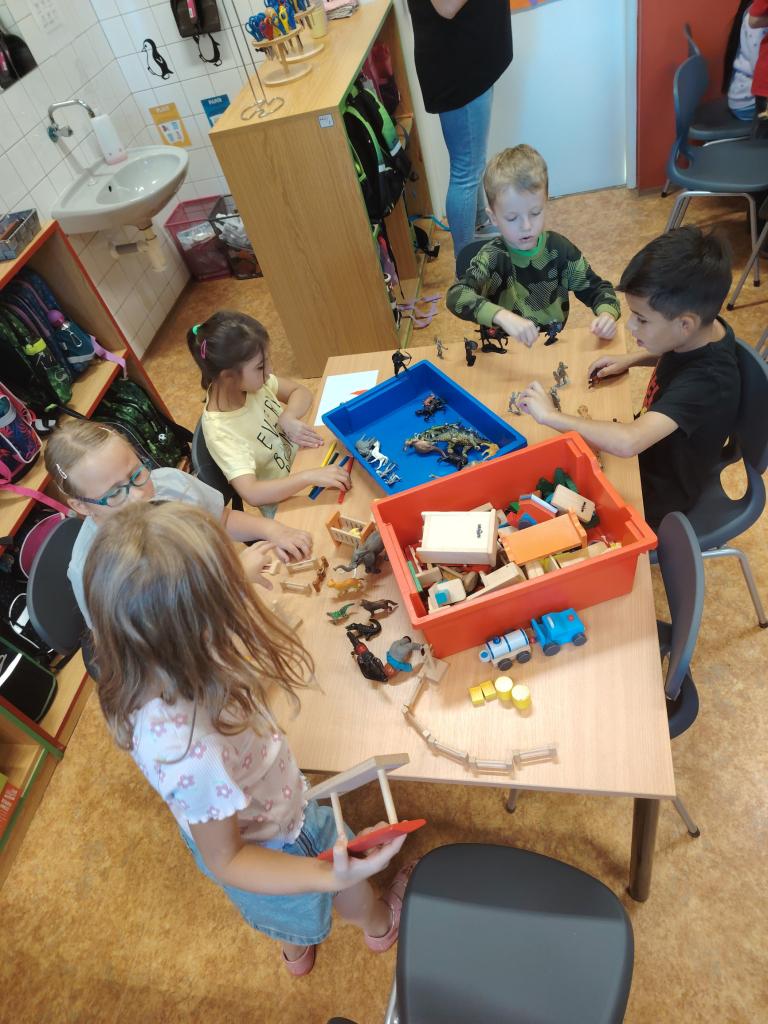 První týden je za námi. Tento týden jsme se pomalu poznávali, seznamovali se se školou, družinou, jídelnou i zahradou. Teď už víme, kde co je a těšíme se na celý rok plný hraní s novými i stávajícími kamarády, učení i vyrábění.