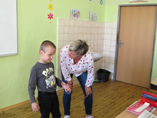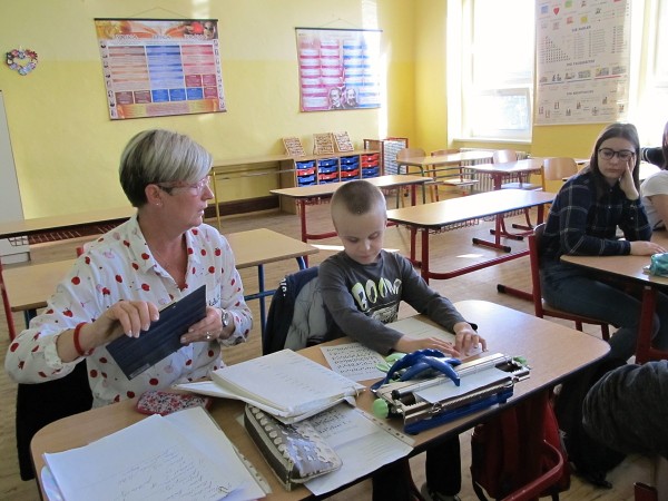 Nejen, že nám ukázal, jak pracuje během výuky, ale připravil si pro nás i zajímavé úkoly. Například jsme luštili vzkazy psané Braillovým písmem. Dalo mám to pořádně zabrat. Zjistili jsme, že Dominik je výborný společník, který rád zpívá, sportuje a je vždy pozitivně naladěný. Mohli jsme se ho na cokoliv zeptat, vyzkoušet si jeho speciální pomůcky na český jazyk, matematiku či tělesnou výchovu. Dominiček strávil jednu hodinu i s našimi prvňáky. I toto setkání bylo úžasné.