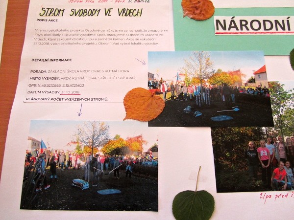 V rámci projektu Osudové osmičky jsme se rozhodli zmapovat lípy v okolí školy a ke 100. výročí vzniku republiky lípu vysadit.