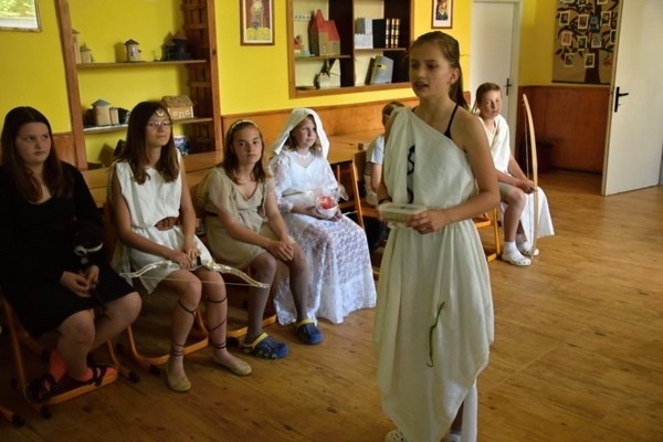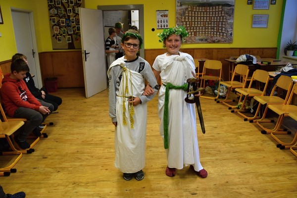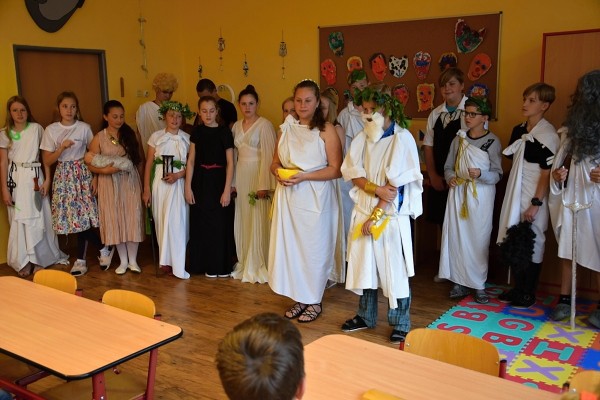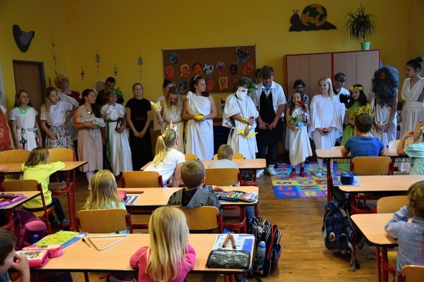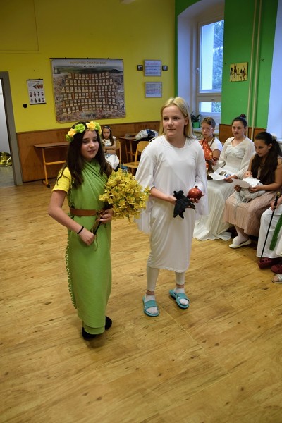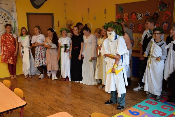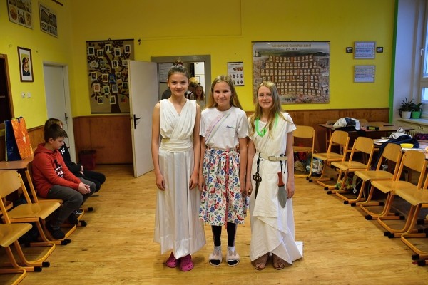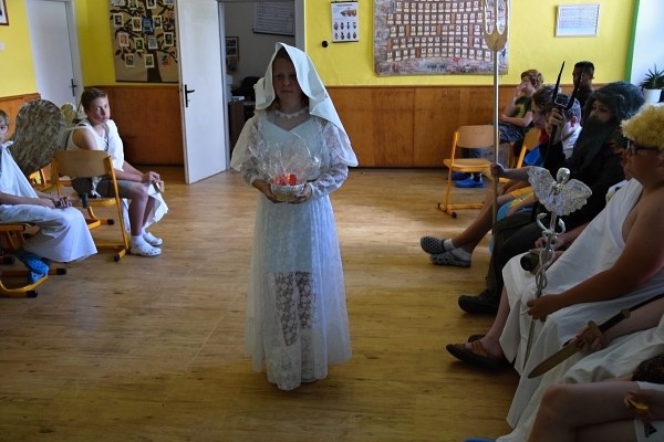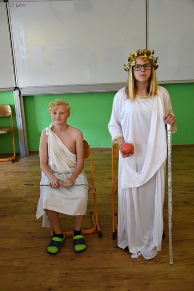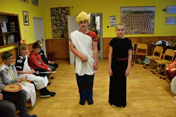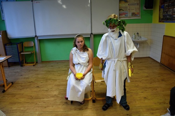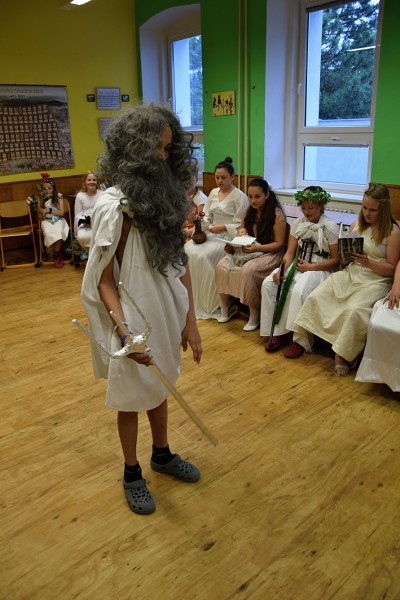 I v letošním školním roce navštívili naši školu bohové a bohyně z řeckého Olympu. Ve středu 29.5. proběhlo jejich zasedání v 6.A, o den později, ve čtvrtek 30.5., pak v 6.B.