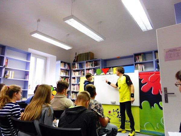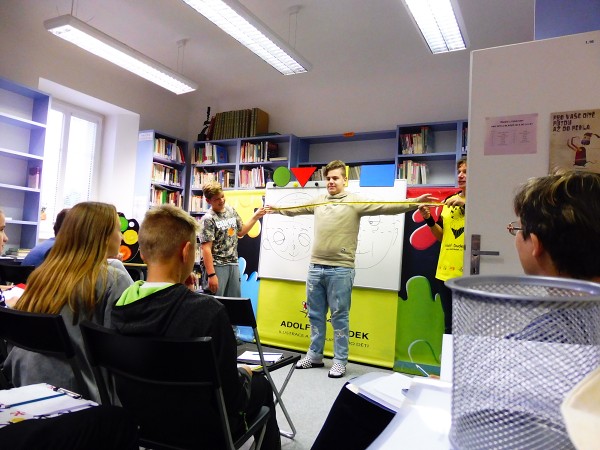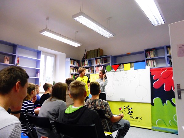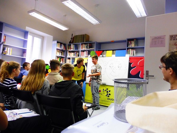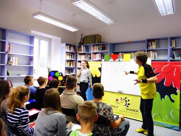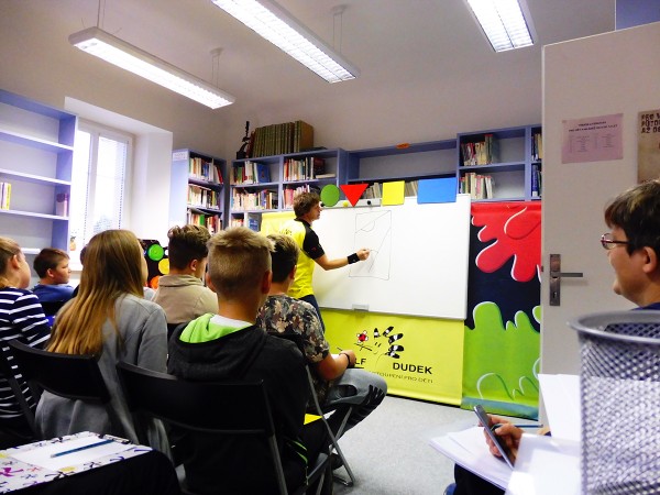 Pan Dudek nám ukázal, že kreslení nemusí být nic obtížného, že všechno se dá nakreslit pomocí trojúhelníku, kruhu, obdélníku a čtverce.