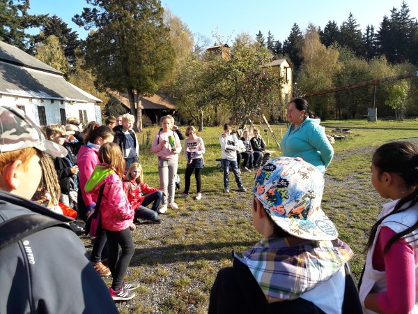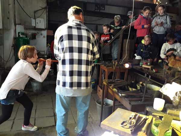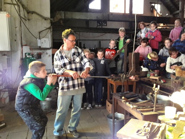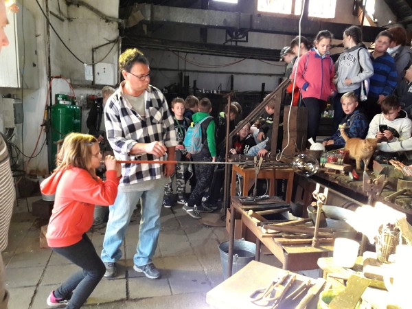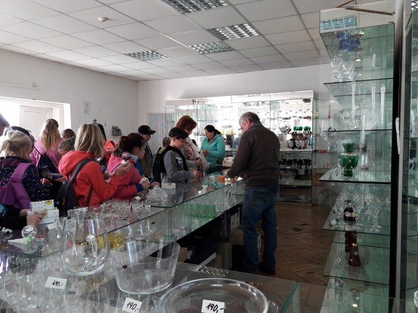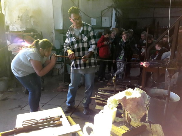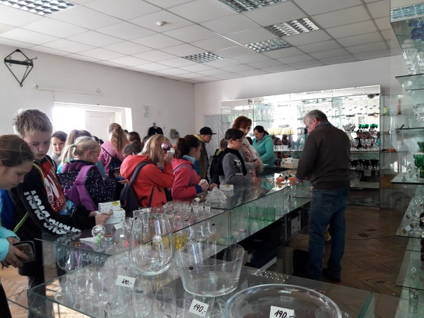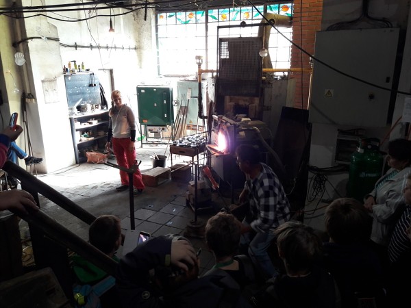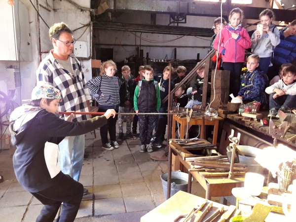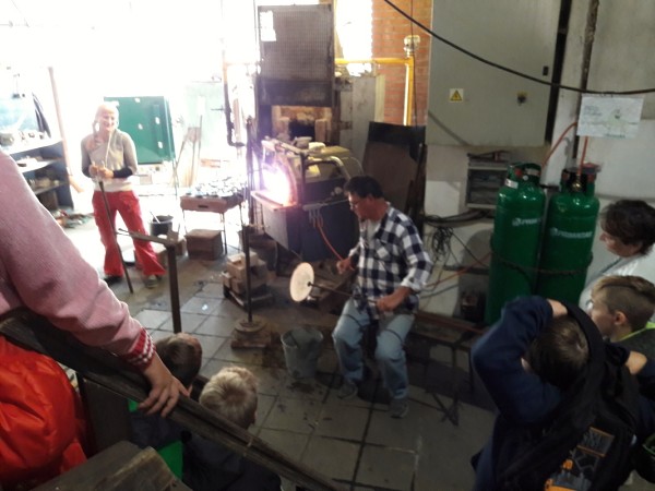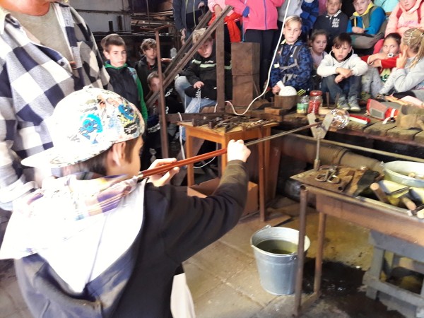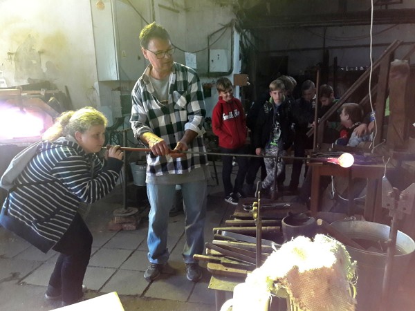 Po úvodním výkladu o historii a současnosti sklárny nás čekala prohlídka výrobních prostor a ukázka výroby. Některé děti si vyzkoušely práci se sklářskou píšťalou. Huť je známá ze seriálu Synové a dcery Jakuba skláře, který se zde natáčel. V podnikové prodejně jsme si mohli zakoupit upomínkové předměty a výrobky ze skla. Exkurze se konala v období dozrávání kaštanů, a proto jsme si mohli nasbírat několik krabic těchto plodů. Ve škole jsme z nich vyráběli různé předměty a zvířátka. Zbytek kaštanů nabídneme jako krmivo pro zvířata.