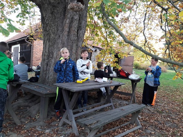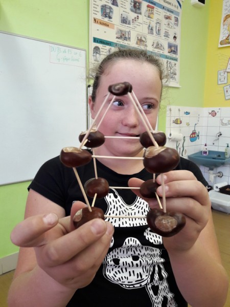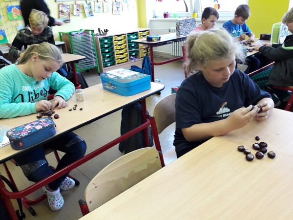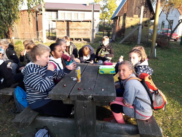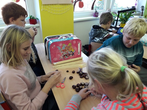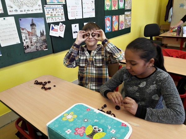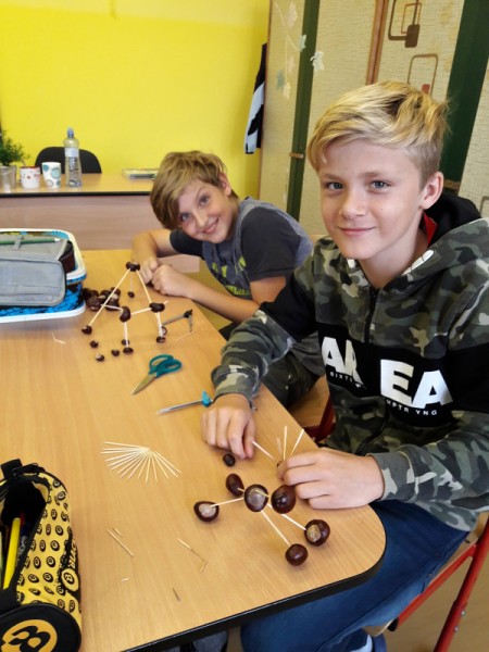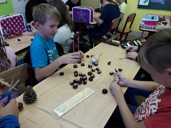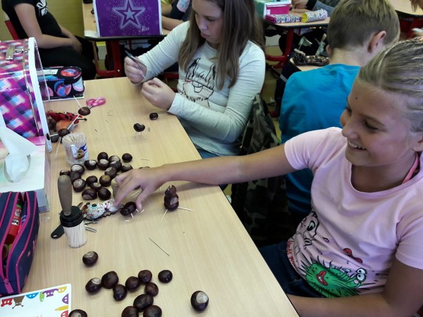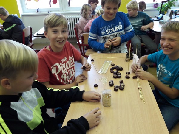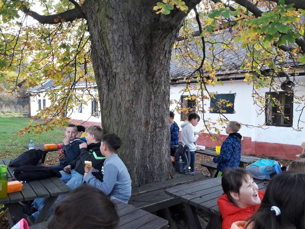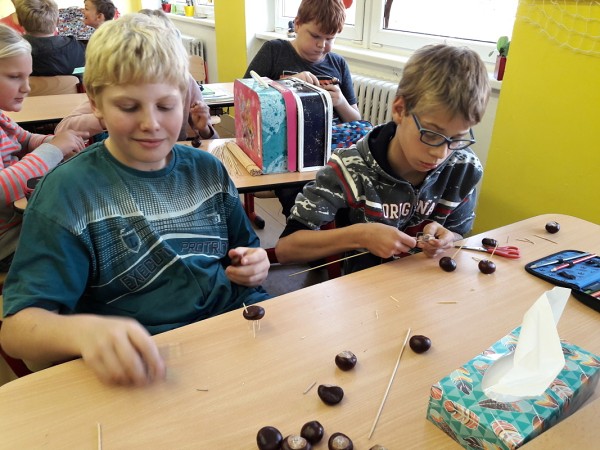 Po úvodním výkladu o historii a současnosti sklárny nás čekala prohlídka výrobních prostor a ukázka výroby. Některé děti si vyzkoušely práci se sklářskou píšťalou. Huť je známá ze seriálu Synové a dcery Jakuba skláře, který se zde natáčel. V podnikové prodejně jsme si mohli zakoupit upomínkové předměty a výrobky ze skla. Exkurze se konala v období dozrávání kaštanů, a proto jsme si mohli nasbírat několik krabic těchto plodů. Ve škole jsme z nich vyráběli různé předměty a zvířátka. Zbytek kaštanů nabídneme jako krmivo pro zvířata.
