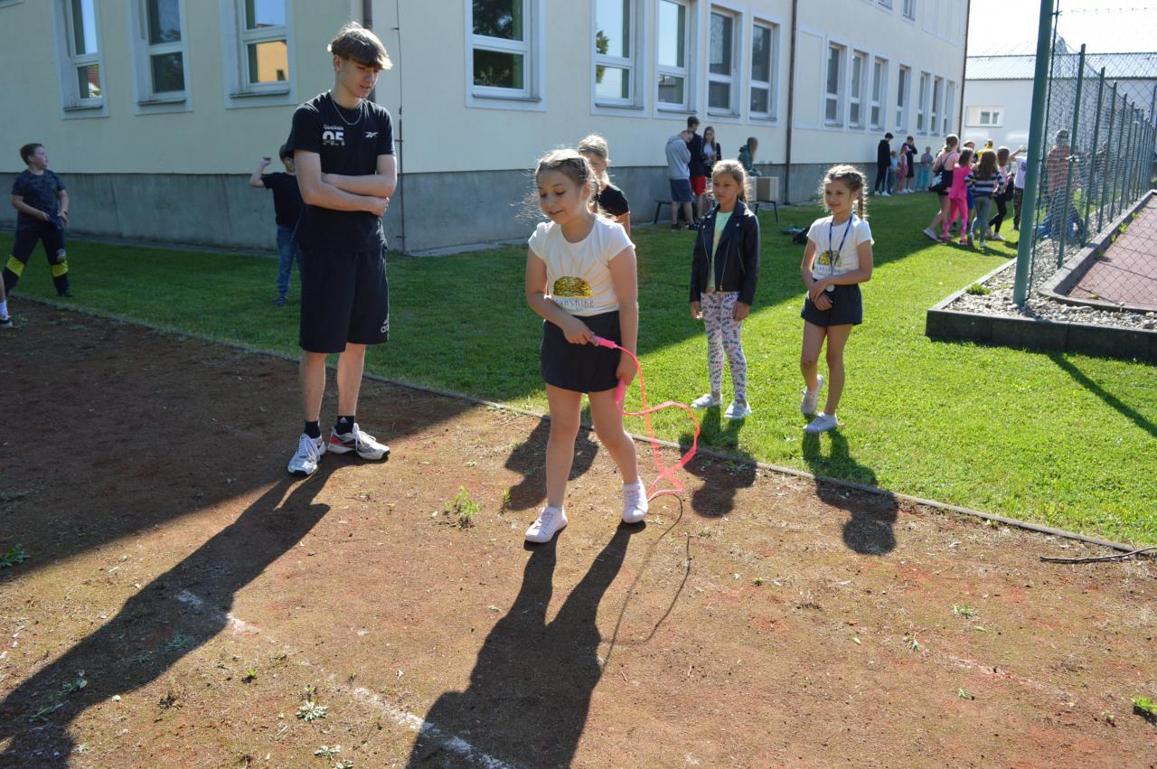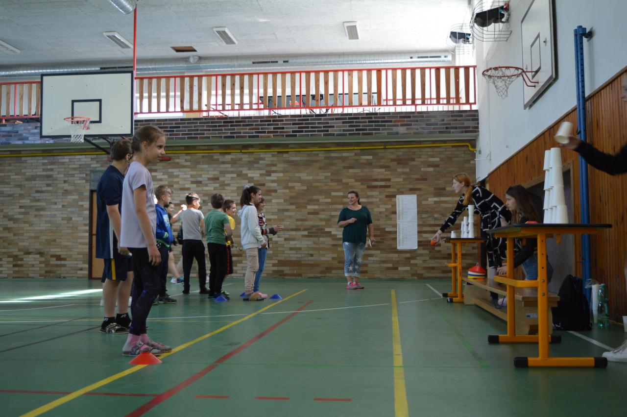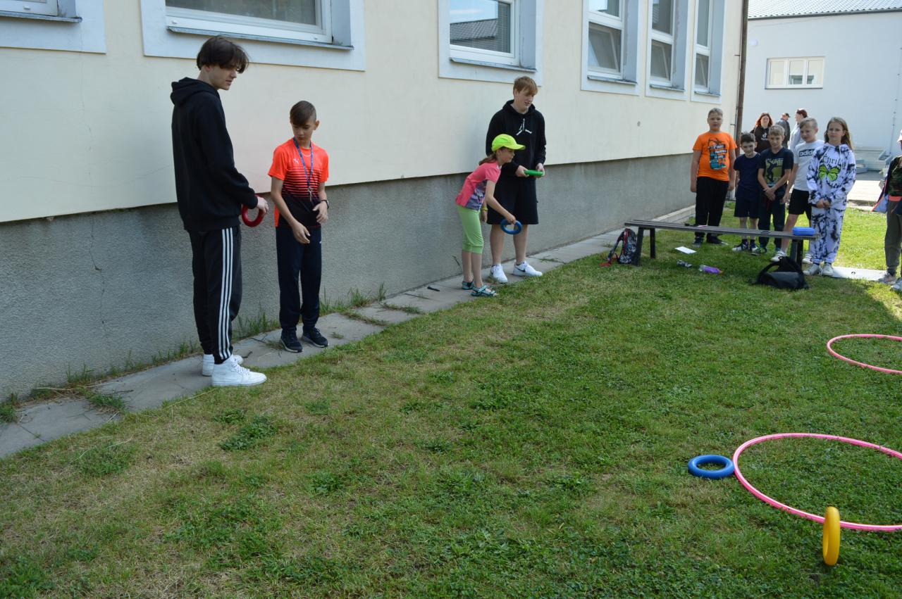 Dnes se u nás ve škole uskutečnil Den dětí, který pro žáky připravili žáci 9.A. Stanovišť bylo hned několik, proto si každý mohl vybrat, co je mu blízké: trefování se do kelímků, skákání panáka, skládání obrázků, skákání přes švihadlo, házení kroužků, poznávání předmětů hmatem, přenášení míčku na lžíci a nechyběl ani vědomostní test. Každá třída nakonec vyrobila pod taktovkou své třídní učitelky a asistentky překrásné plakáty. Ty nejlepší skupiny jsme odměnili velkými koláči z naší místní pekárny, které patří velké poděkování!