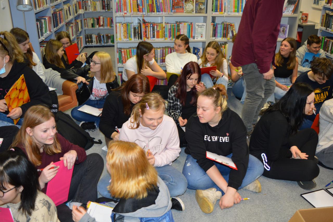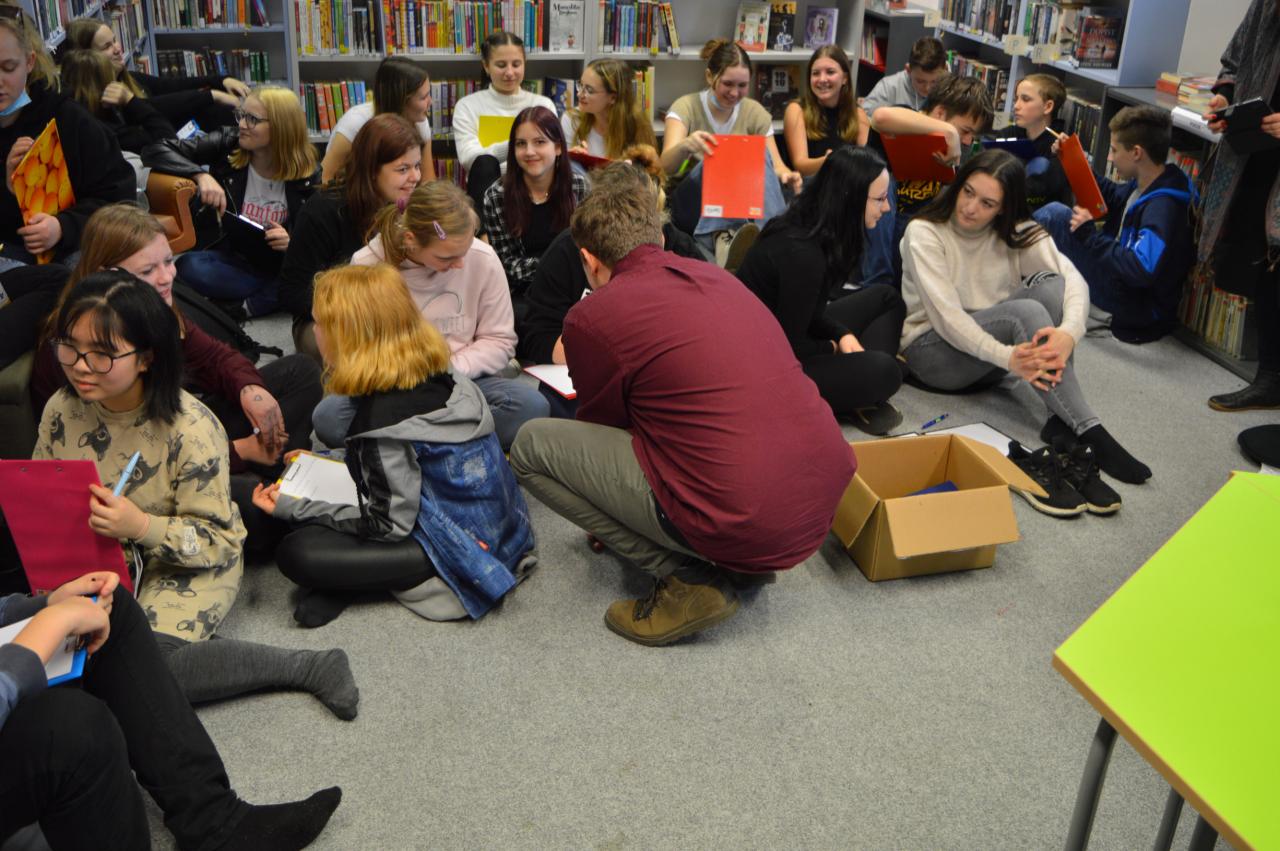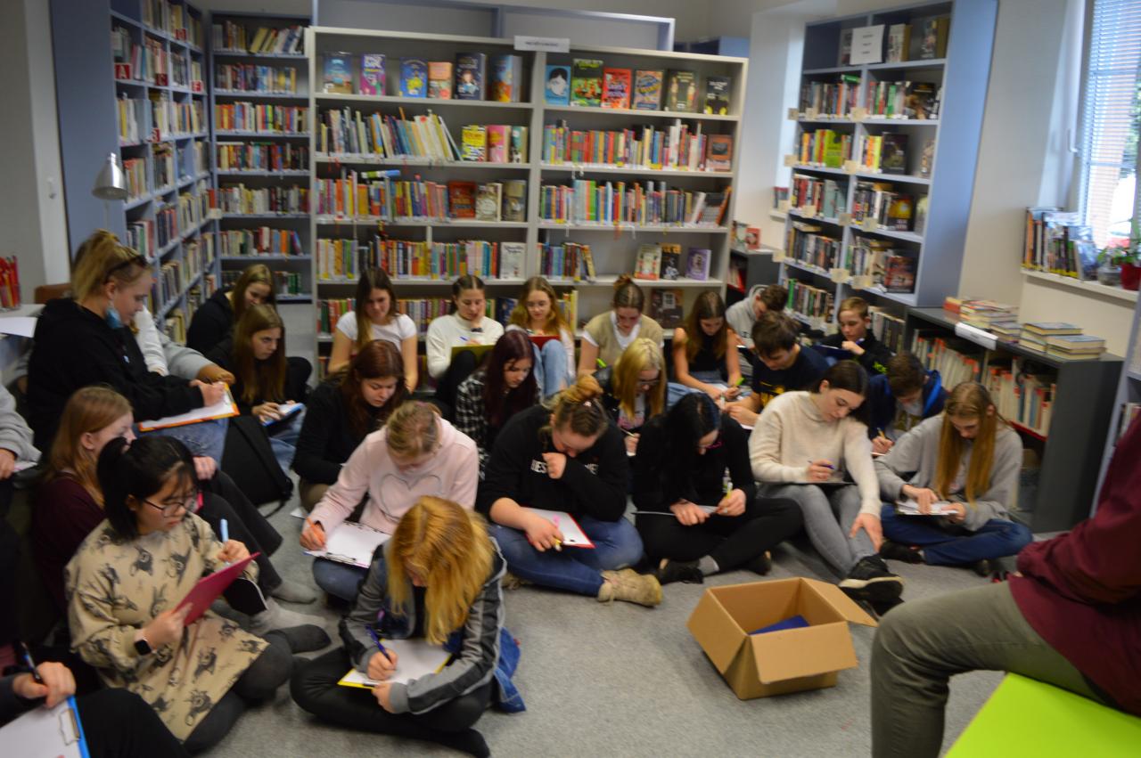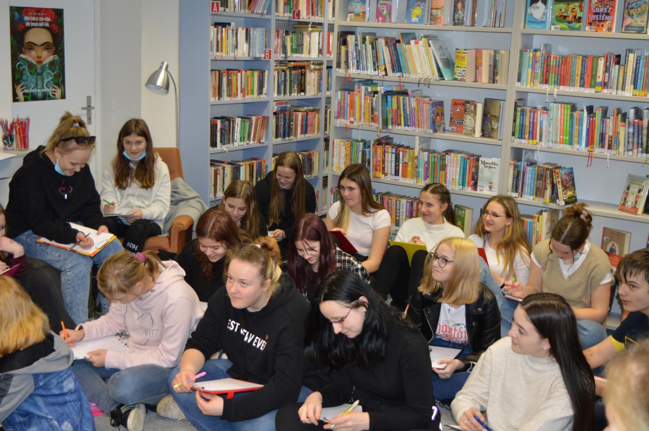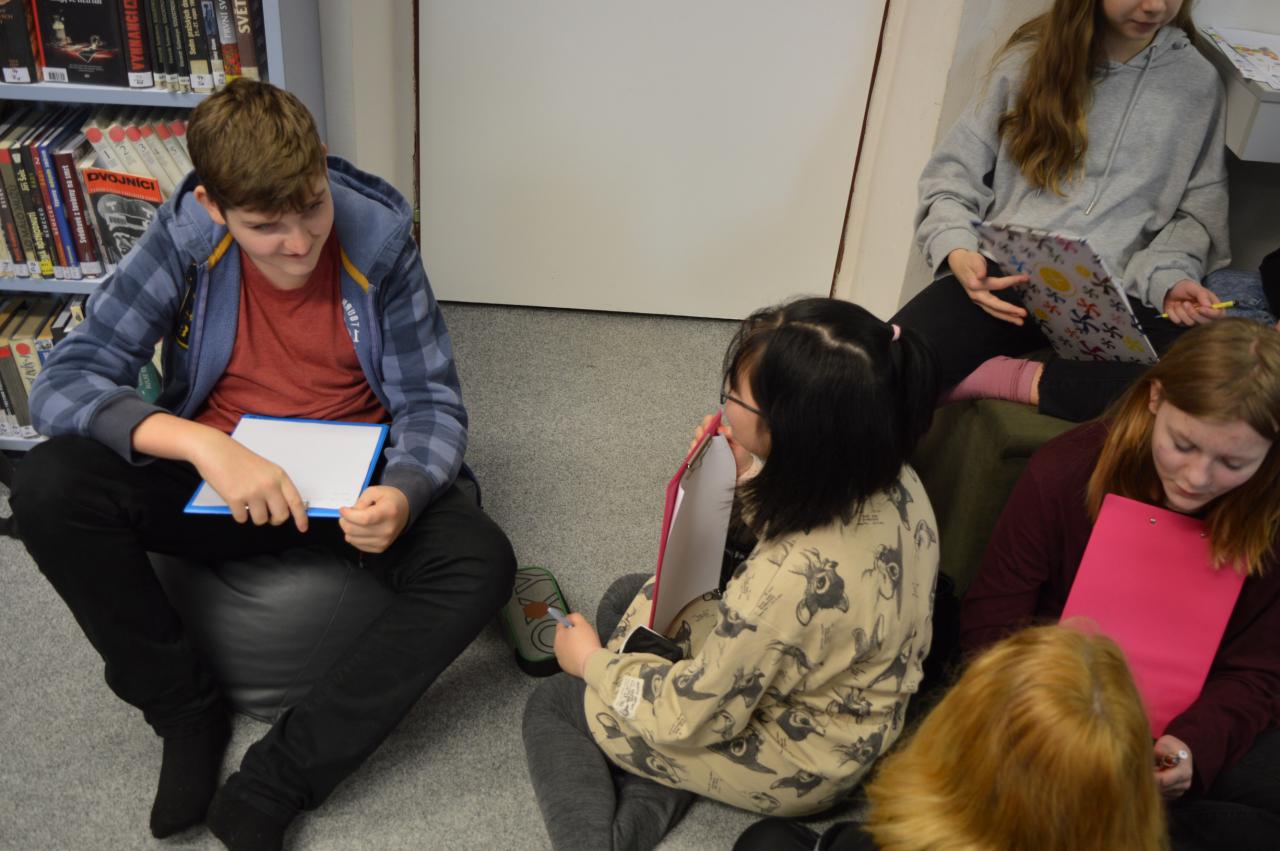 Ve středu 23. 2. 2022 se žáci 7. a 8. ročníku zúčastnili lekce tvořivého psaní vedené panem René Nekudou v Knihovně F. V. Lorence.