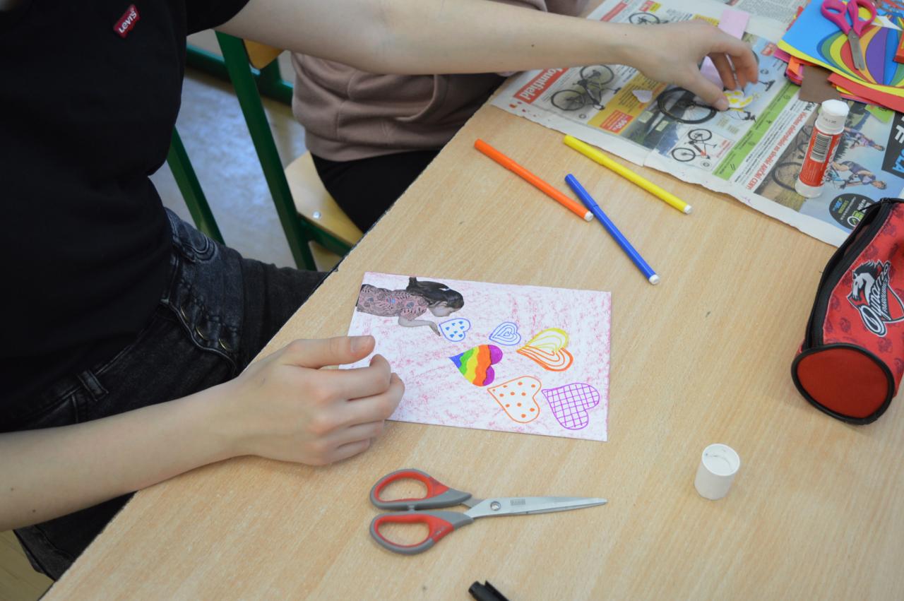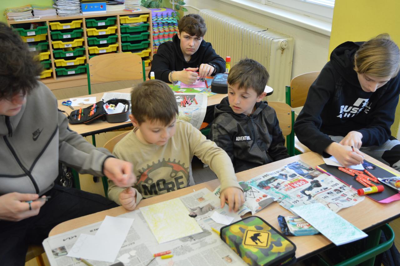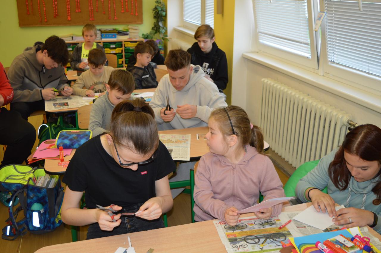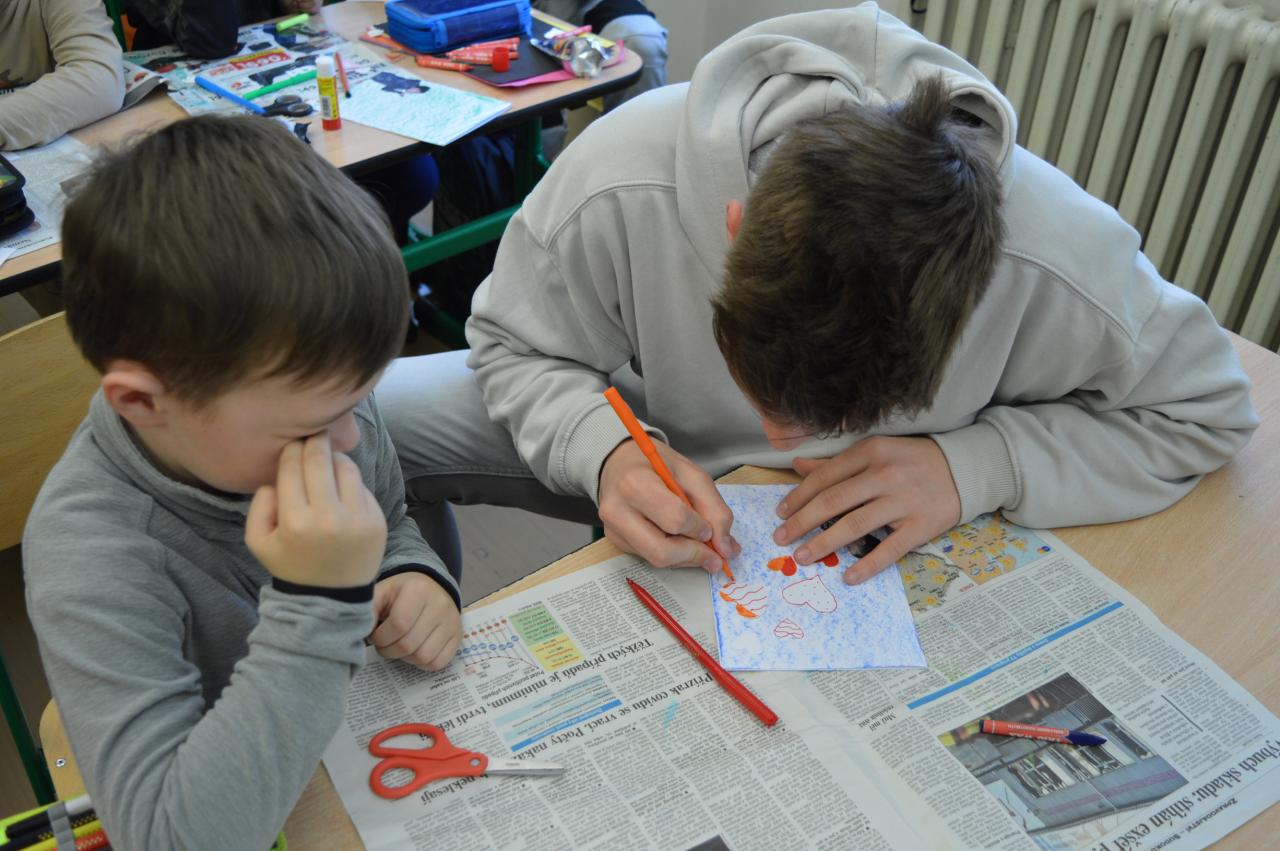 Přání ke Dni matek - společné tvoření 1.B a 9.B