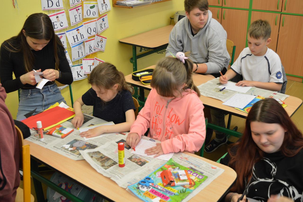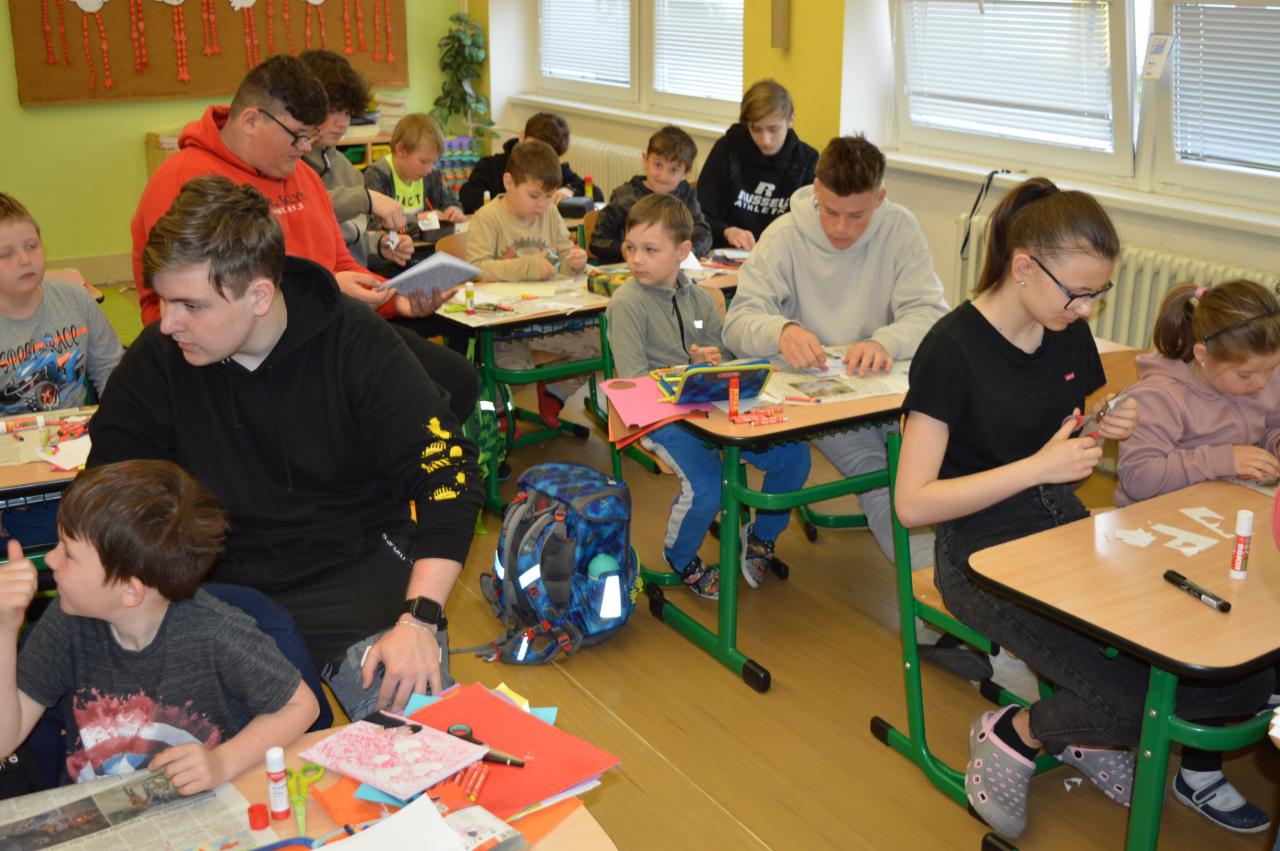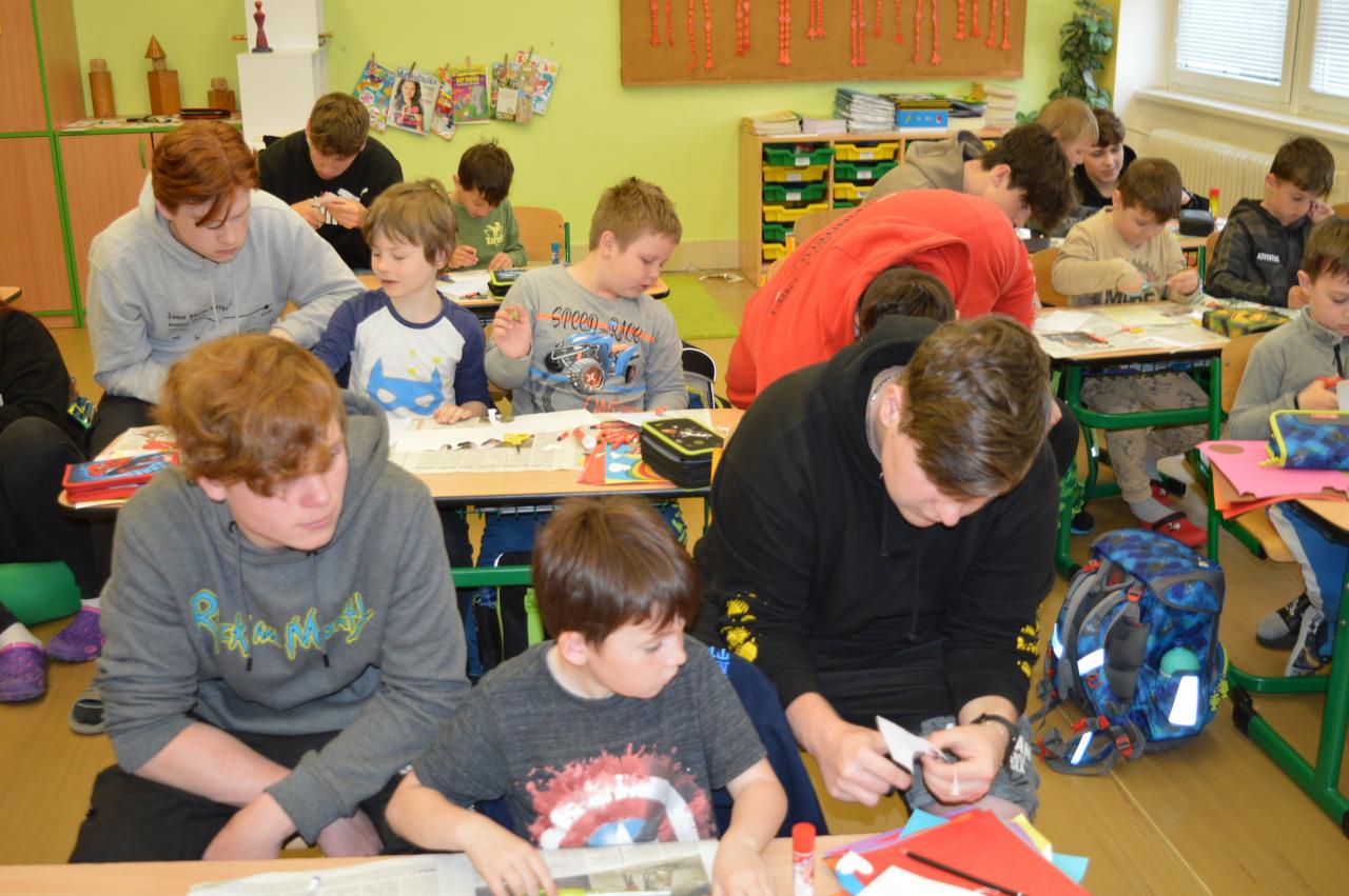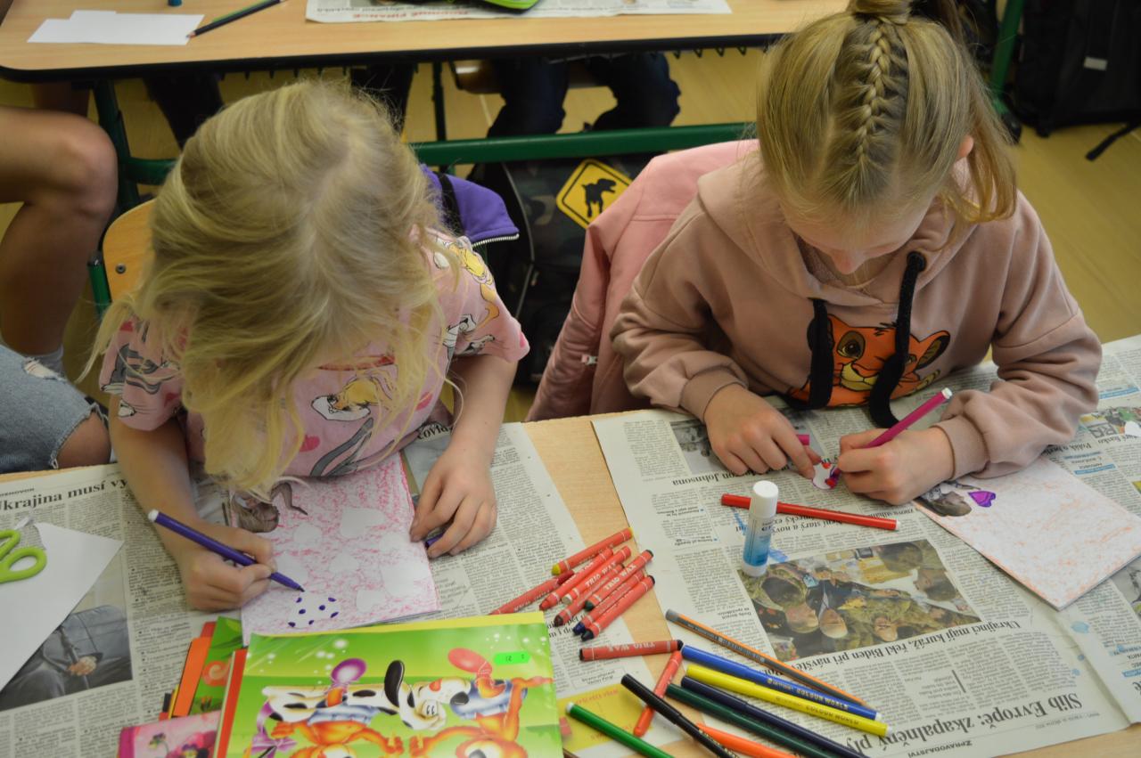 Přání ke Dni matek - společné tvoření 1.B a 9.B