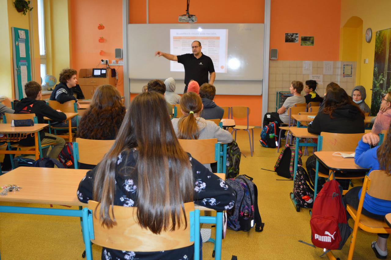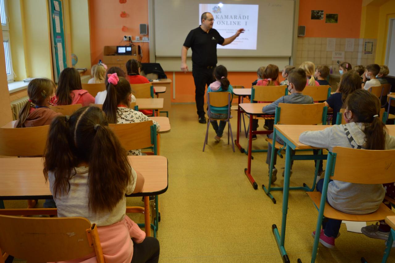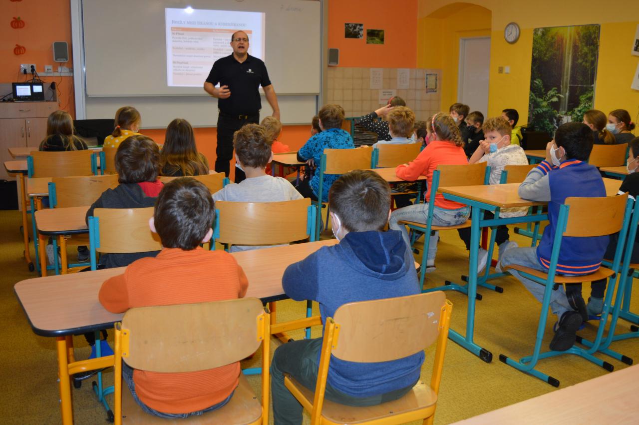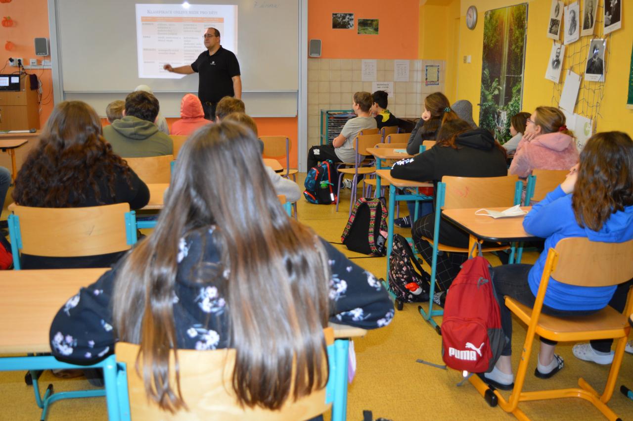 V týdnu před jarními prázdninami proběhly tři dny besed a přednášek zaměřené na prevenci v online prostoru. Dr. Ludvík Hanák probíral s žáky 1. – 9. ročníku vybraná témata. Realizovány byly programy: Kamarádi online, Kyberšikana, Rizika na sociálních sítích, Youtube a youtubering, Internetové dezinformace a fake news, Děti a sociální sítě, Rizika online her, Internetová komerce a dezinformace. Zajímavé bylo sledovat, jak se žáci zapojili do diskuze a sami se dělili o své poznatky. Přednášející velmi ochotně vysvětloval a uváděl informace na pravou míru, zároveň upřesnil žákům, co již je za hranou zákona.