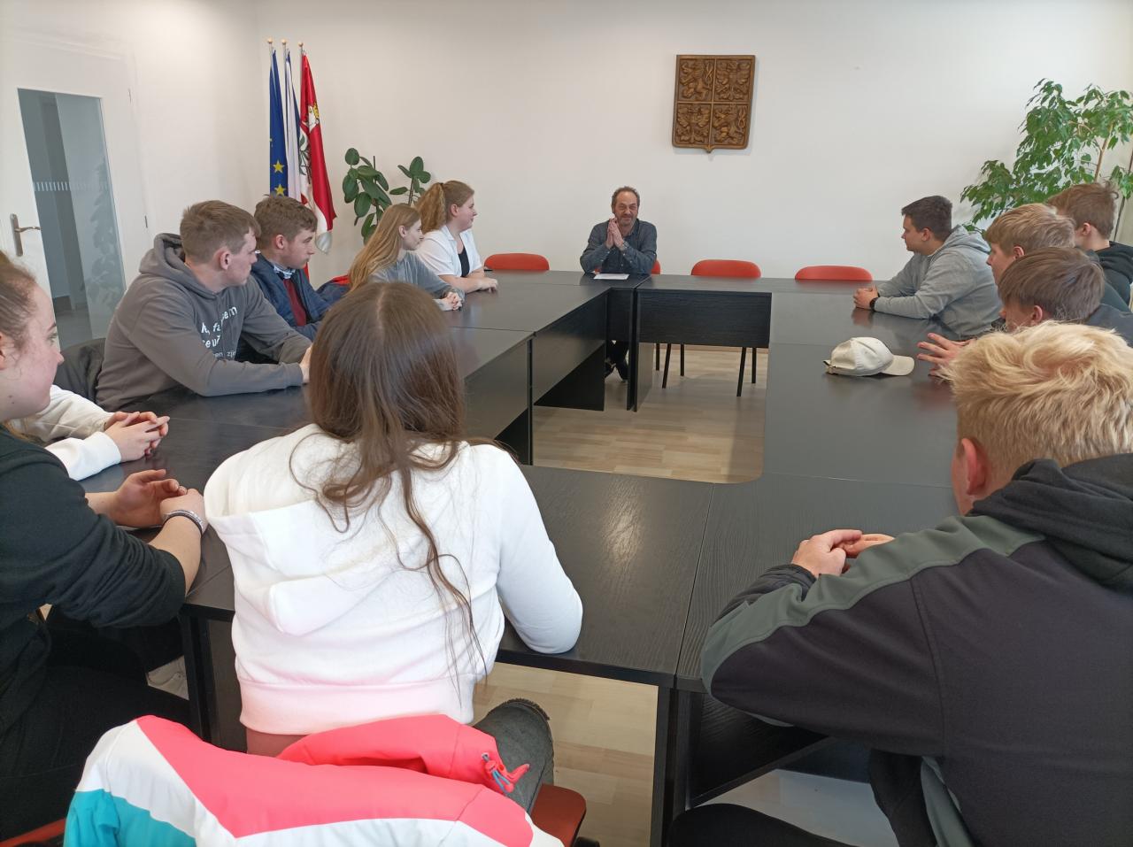 V pondělí 3. dubna se žáci devátého ročníku vydali na Obecní úřad ve Vrdech. Zde pro ně byla připravena prohlídka úřadu a beseda s panem starostou Ing. Milošem Mlynkou. Žáci si v předchozích hodinách připravili dotazy, na které pan starosta velmi ochotně a věcně odpovídal. Jak později zhodnotili, dozvěděli se řadu zajímavých informací o práci starosty i fungování obecního úřadu. Tímto moc děkujeme panu starostovi, že si na nás udělal čas.