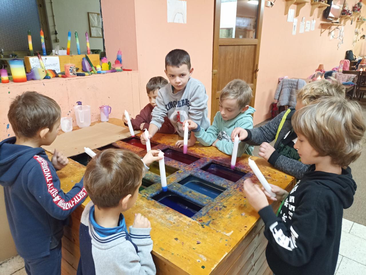 Vydali jsme se na naši první exkurzi do svíčkárny v Šestajovicích. Přivezli jsme si odtud voňavou sůl do koupele, svíčku, kterou jsme si sami ozdobili a krásné mýdlo. Také jsme nakupovali v obchůdku a prohlédli si spoustu zvířátek. Ani nám nevadilo, že se trochu ochladilo.