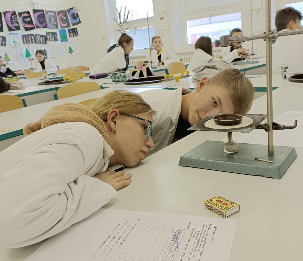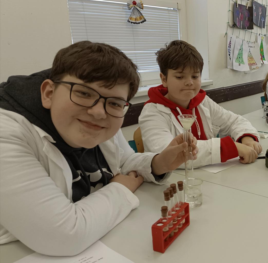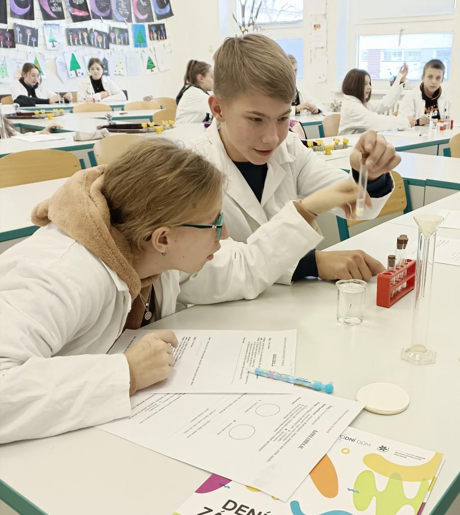 Žáci sedmého ročníku pokračují v práci na projektu "Zachraň vodu s vodoměrkou". Své teoretické znalosti si rozšířili také o praktické dovednosti. Zkoumali složení vody a rozpustnost různých látek ve vodě a vyzkoušeli si různé metody, jak látky z vody oddělit, např. filtraci a vypařování.