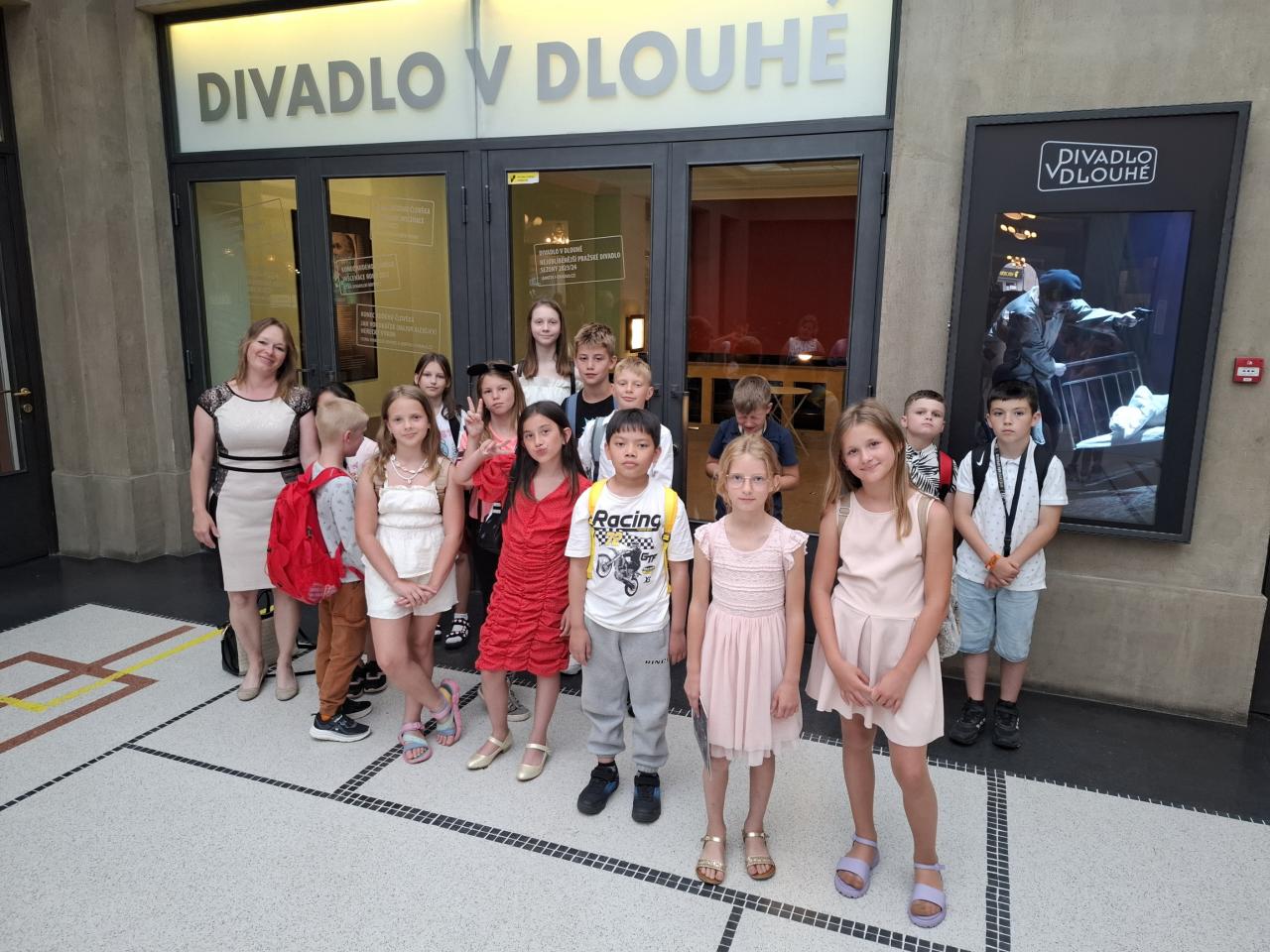 Ve středu 25.6. jsme navštívili v pražském Divadle V Dlouhé představení O líné babičce, které bylo velmi vtipné a plné písniček. Líbilo se nám divadlo i představení a podpořili jsme dobré vztahy mezi našimi třídami. Jako odměnu v horkém dni jsme si dopřáli zmrzlinu.