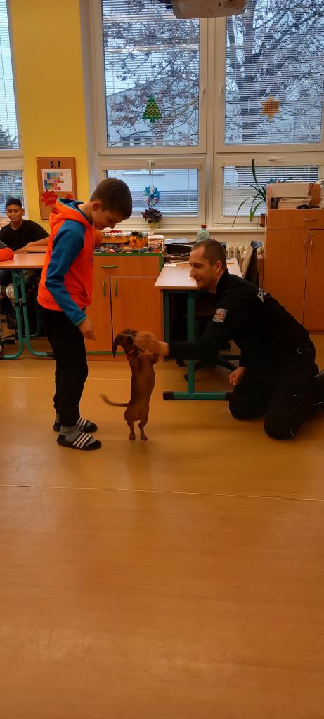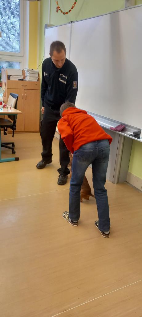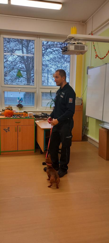Preventista děti seznámil nejen s úlohou policie ve společnosti, ale názorně ukázal bezpečné chování na ulici a varoval před úrazy spojenými s jízdou na kole. Citlivě s dětmi probral problematiku šikany, nebezpečných věcí, se kterými se mohou setkat v běžném životě. Nebylo opomenuto ani téma evakuace budov v případě hrozícího nebezpečí. Děkujeme za toto příjemné setkání.