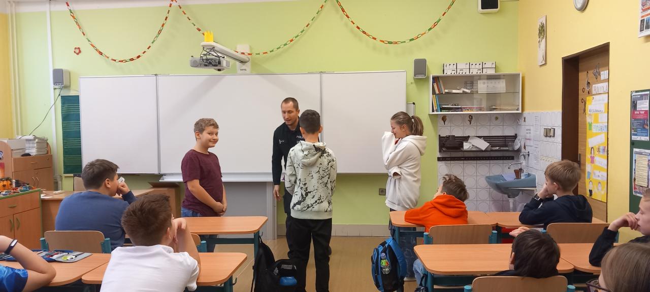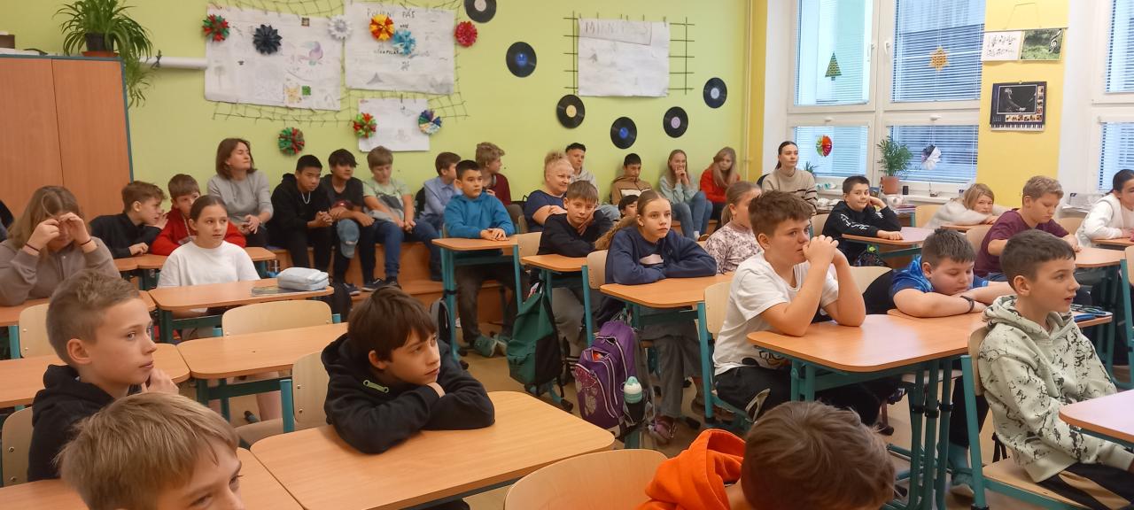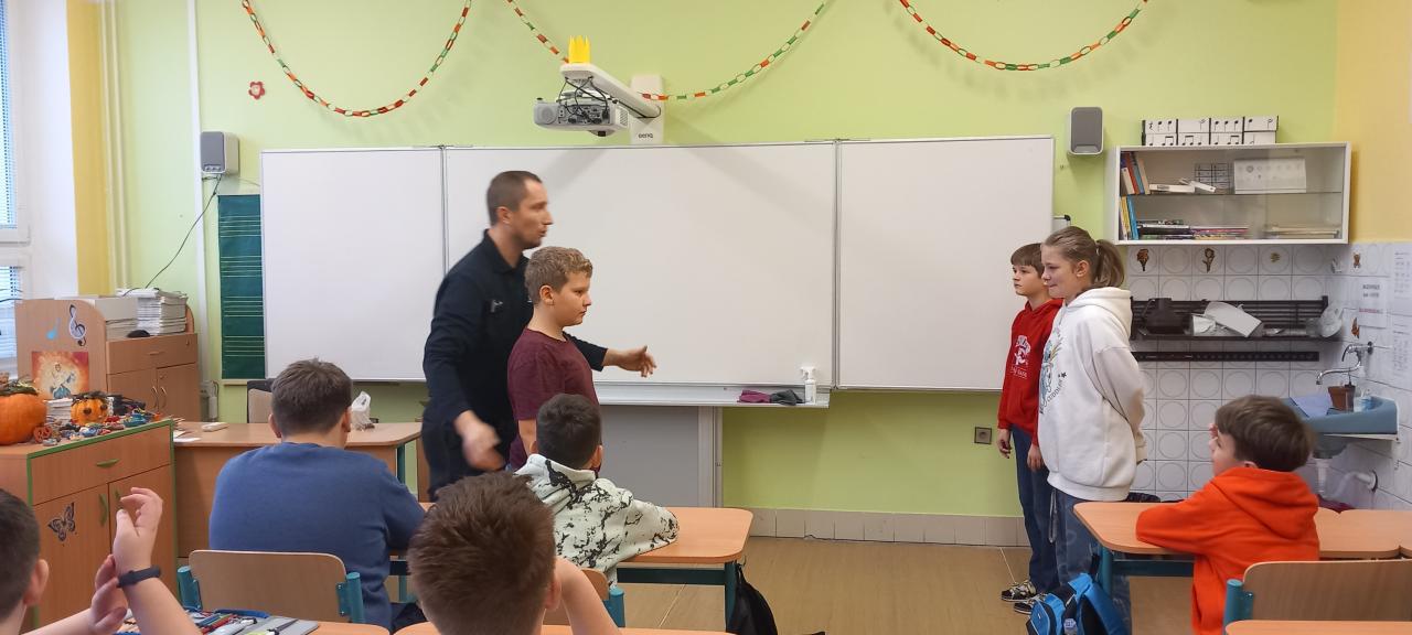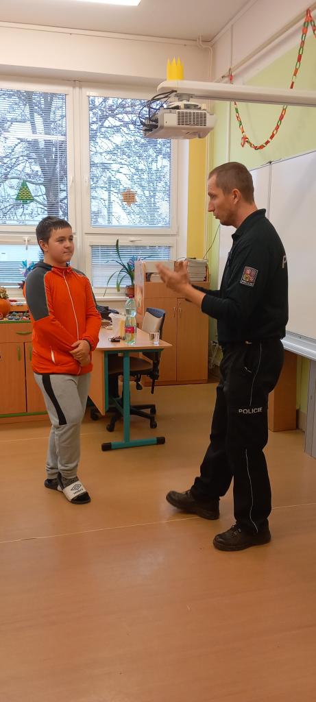 Tématům bezpečí je u nás ve škole kladen velký důraz, proto se žáci šestých ročníků tento týden setkali s policistou z kutnohorského Dopravního inspektorátu prap. Lukášem Krupičkou.