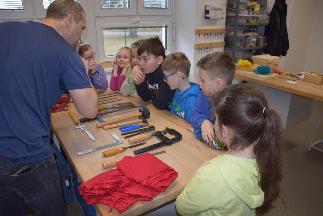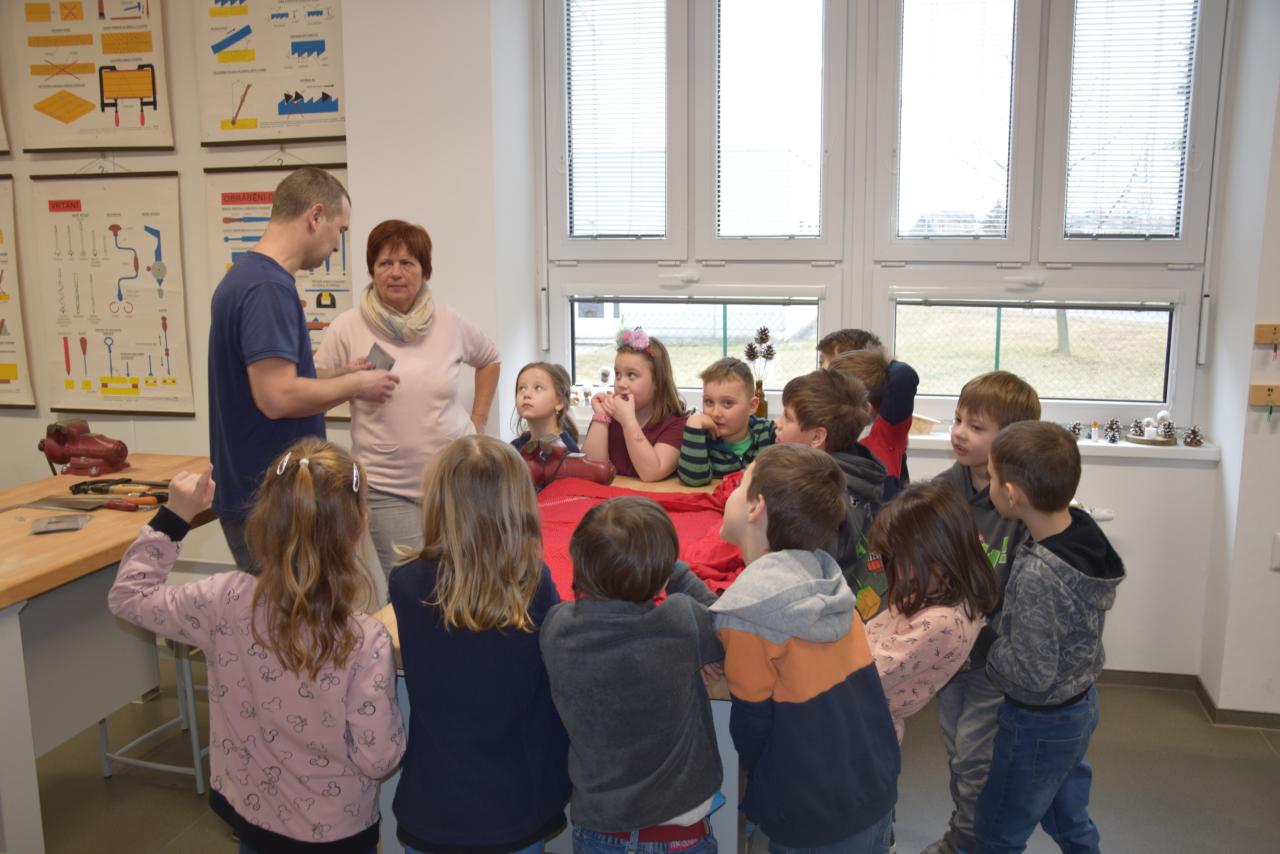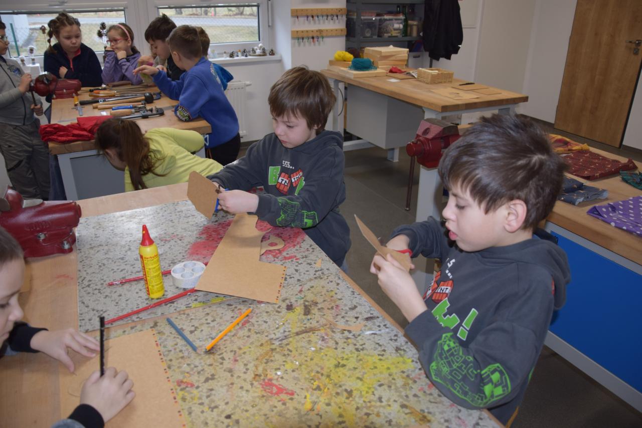 Ve čtvrtek 27. února 2025 žáci 1. a 2. tříd plnili úkoly na různých stanovištích, kde se učili poznávat nářadí, vyráběli karnevalové masky, hráli si se stavebnicemi a navštívili pěstírnu. Vyrobili si berušku v keramice a plnili úkoly pomocí ozobotů z českého jazyka a matematiky.