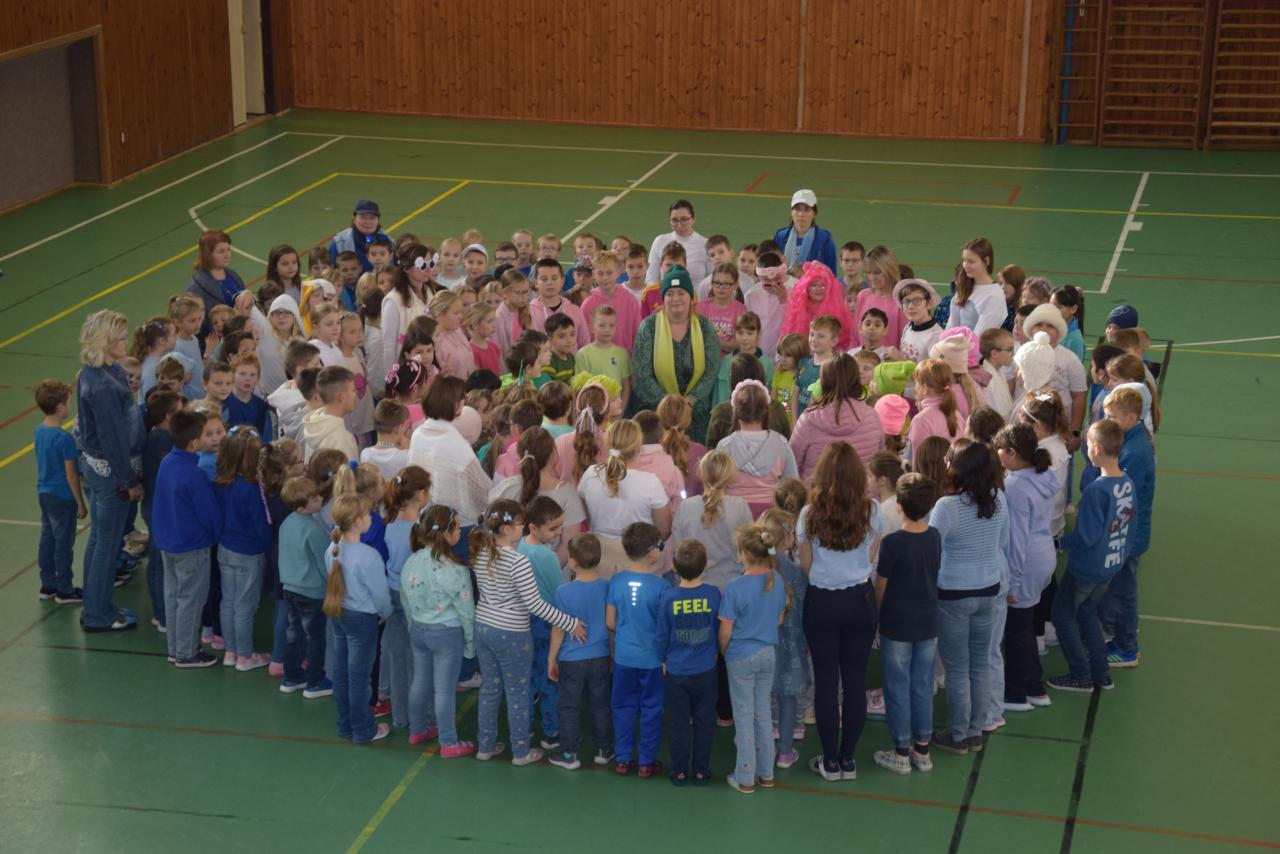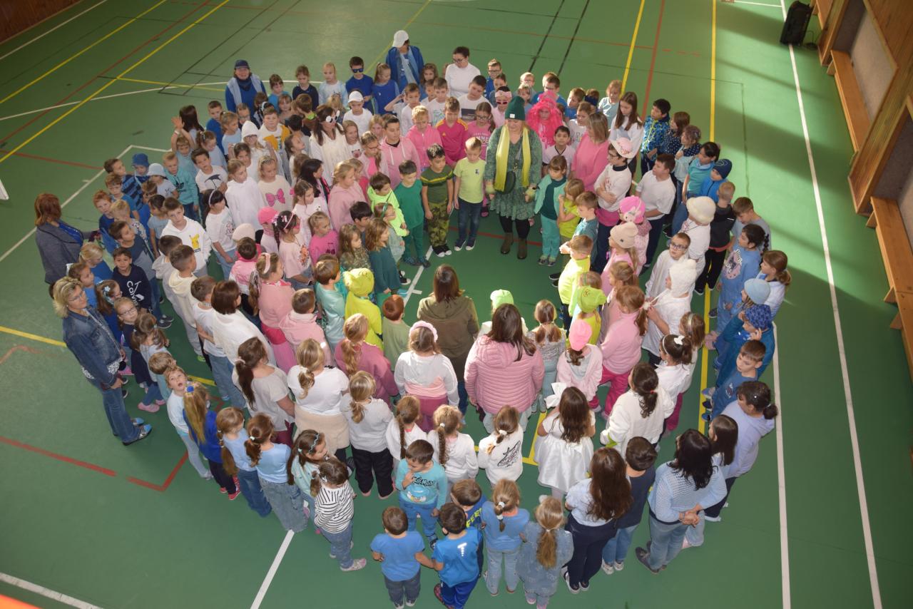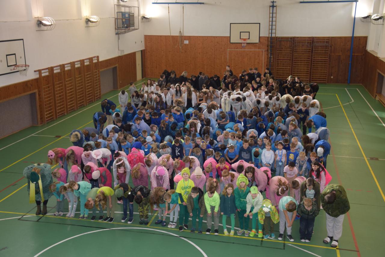 Na závěr jsme se všichni společně sešli v tělocvičně, kde jsme si udělali společnou fotografii všech zúčastněných tříd.
