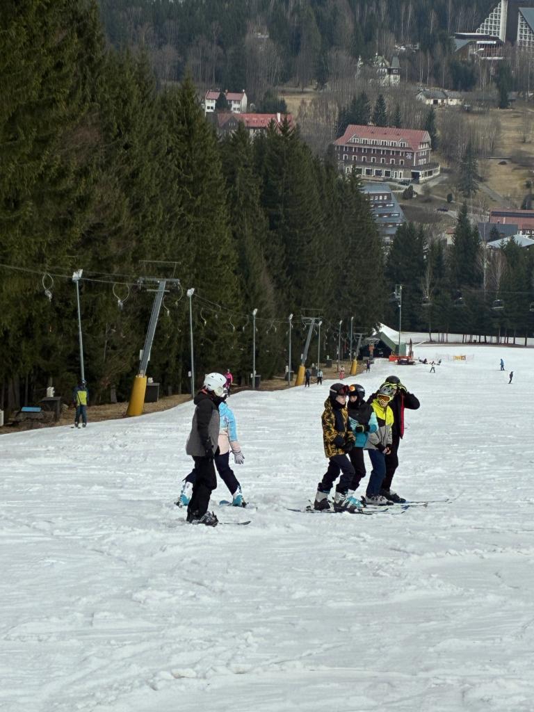 Třetí den našeho lyžařského výcviku v Harrachově byl opět plný zážitků. Dopoledne jsme si užili lyžování na svahu, kde bylo vidět další zlepšení všech účastníků.