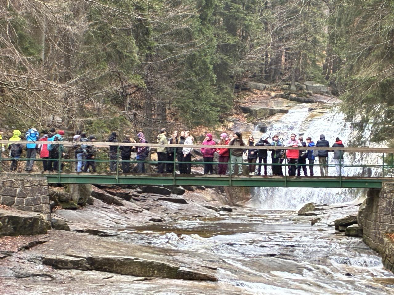 Dopolední lyžování pak vystřídal pestrý odpolední program. Navštívili jsme ski muzeum, kde jsme se dozvěděli mnoho zajímavostí o historii lyžování a zimních sportů. Následně jsme se vydali na procházku k Mumlavským vodopádům, které nás zaujaly svou krásou i okolní horskou přírodou.