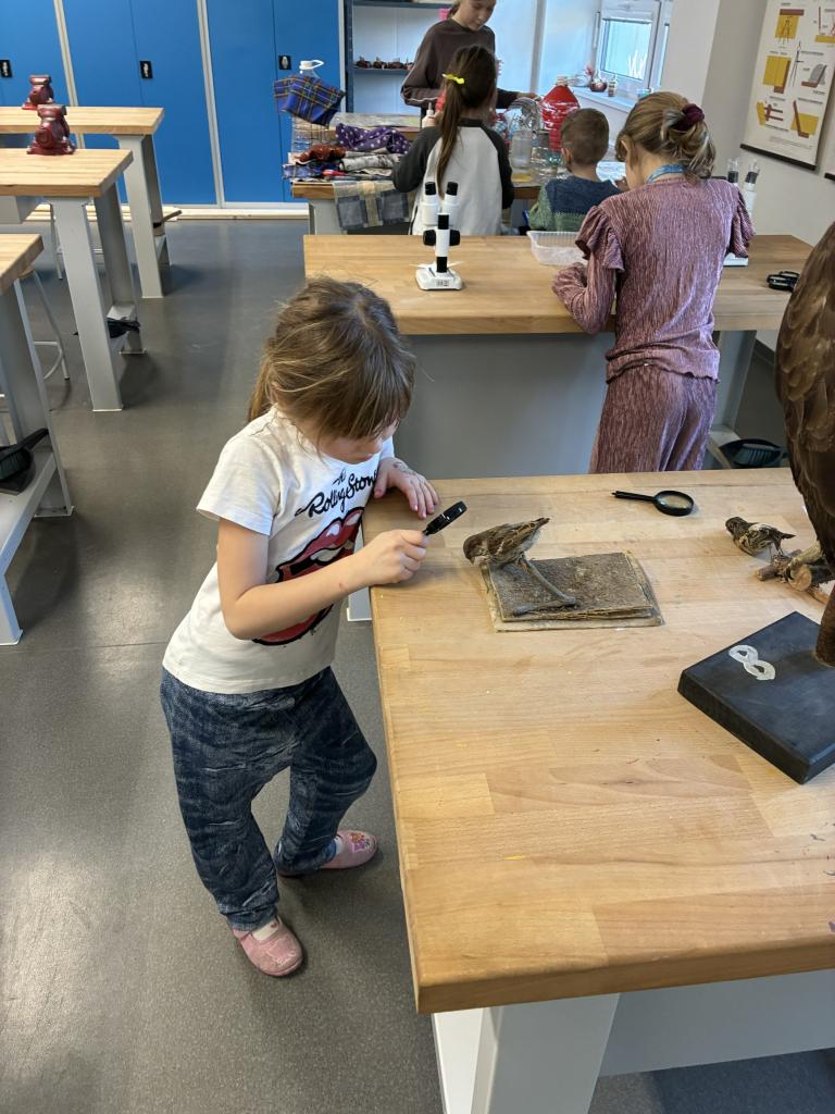 Žáci se během workshopu aktivně zapojili do výroby ptačího krmítka z recyklovaných materiálů, které si po skončení akce odnesli domů. Součástí programu bylo povídání o ptácích, kteří u nás zůstávají i v zimním období, seznámení s jejich významem pro fungování různých ekosystémů a praktická ukázka ptačího peří pozorovaného pod mikroskopem.
