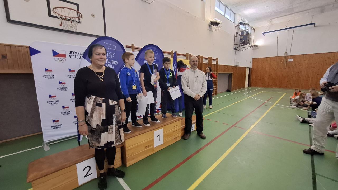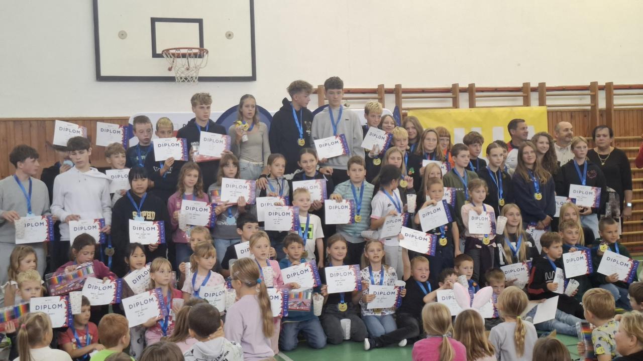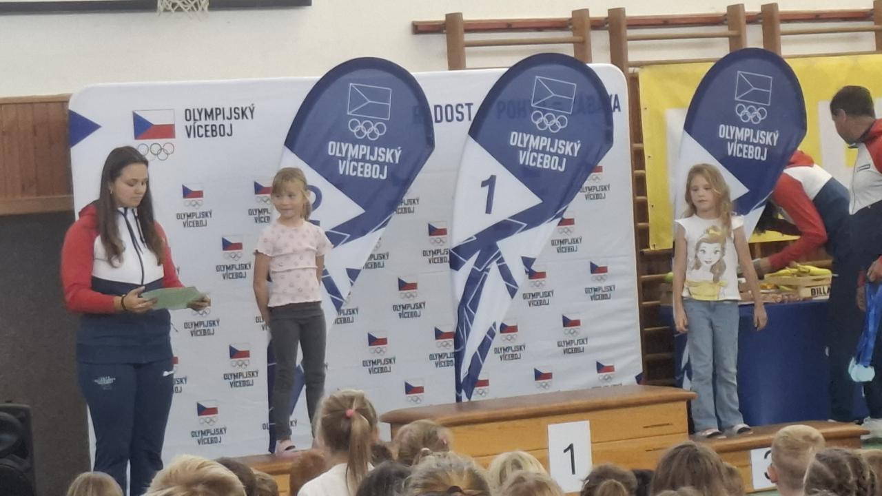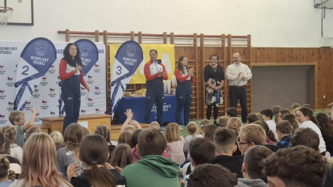 Ve středu 8.10. se celá škola zúčastnila vyhlašování výsledků sportovních disciplín z odznaku všestrannosti. Umístění se vyhlašovalo pro všechny ročníky za účasti olympioniků v čele s "moderátorkou" Šárkou Kašpárkovou. Gratulujeme vítězům. Těšíme se na jarní pokračování soutěže.