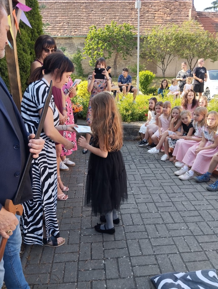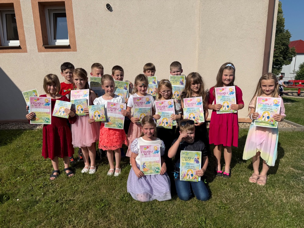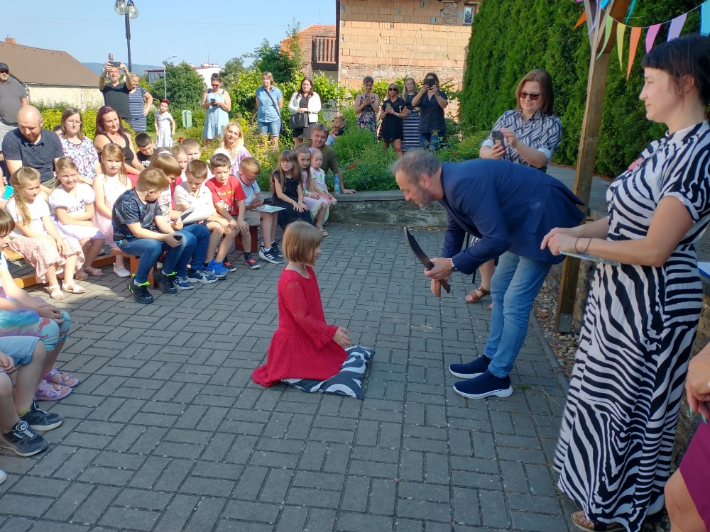 Na závěr školního roku nás čekala jedna velmi významná a důležitá věc-PASOVÁNÍ NA ČTENÁŘE. Celá akce proběhla na zahradě knihovny F.V.Lorence pod vedením úžasné paní Kobelové. Všechny děti byly zdárně popasovány panem starostou na čtenáře a na konci zhlédly divadélko! Moc děkujeme všem zúčastněným!
