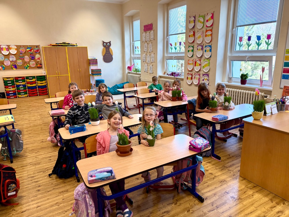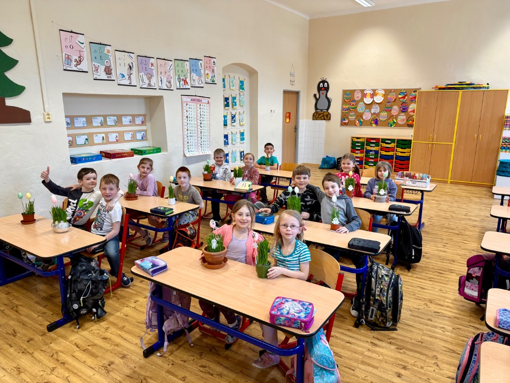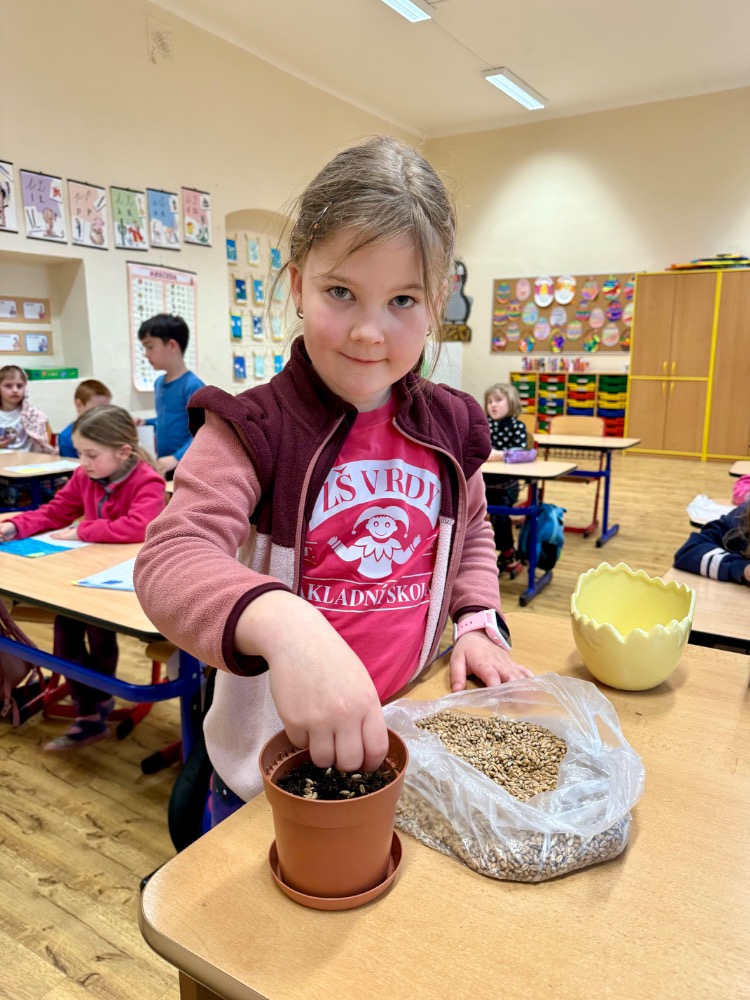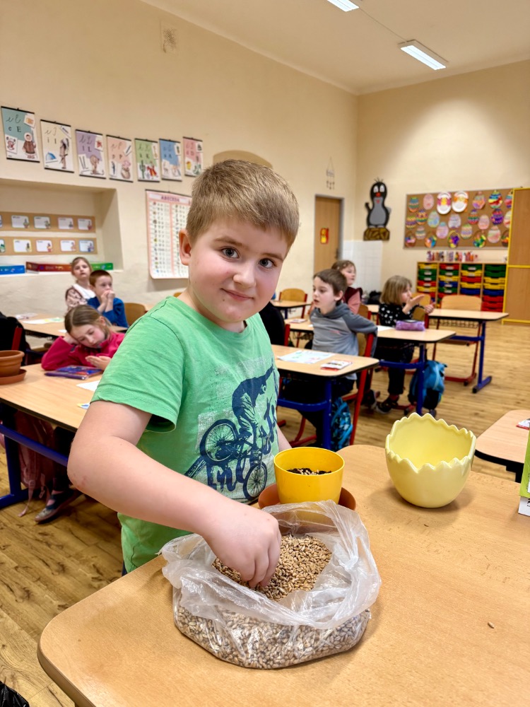Poslední březnový den se prvňáčci vydali jarní procházkou do Agrosdružení Vrdy. Zde nám pan Jetleb ukázal sklad obilí, podívali jsme se do traktoru a dokonce jsme se všichni zvážili na silniční váze! S sebou jsme dostali pšenici, kterou jsme si ve škole sami vypěstovali a odnesli na Velikonoce domů.