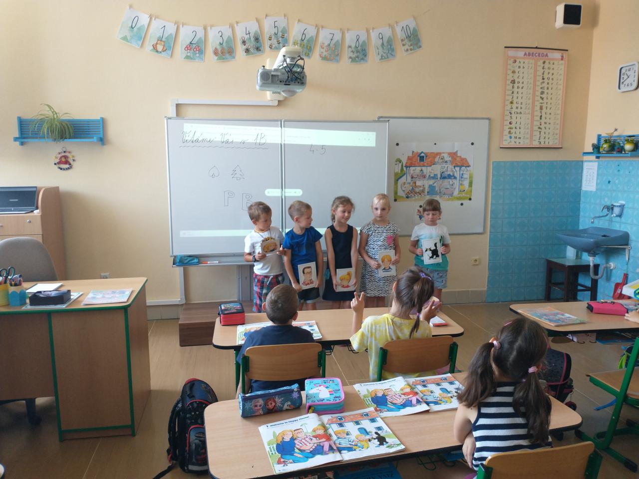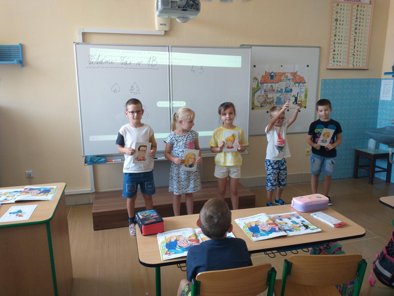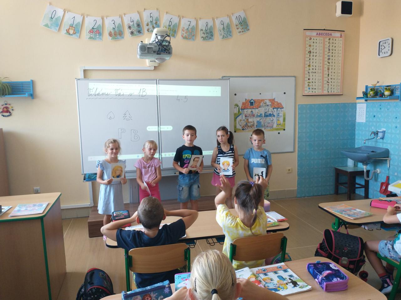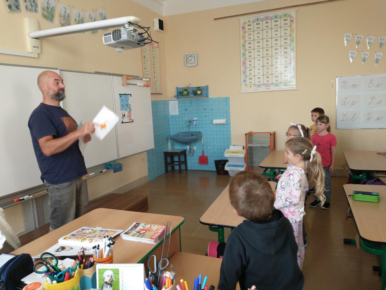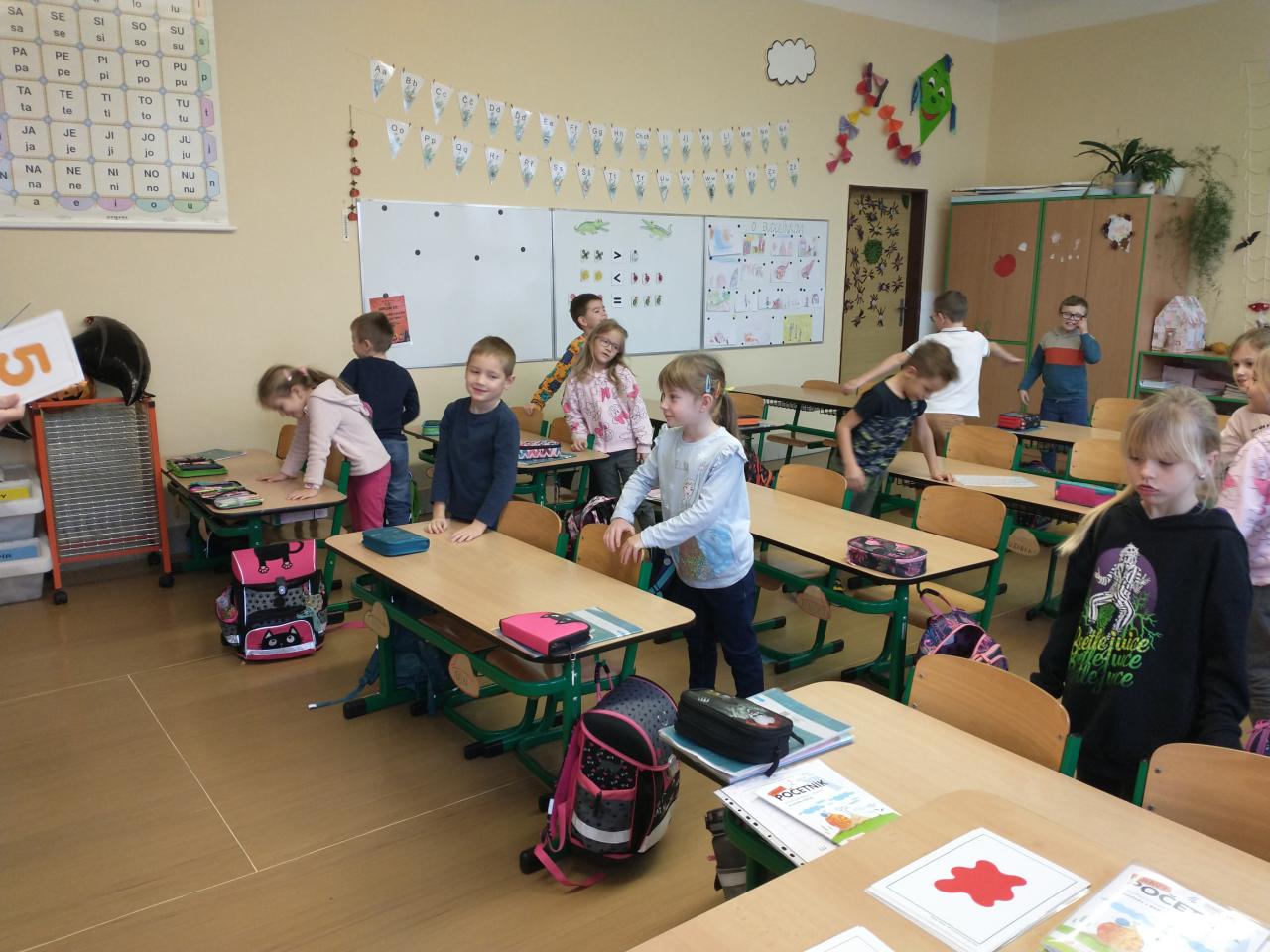Od září se učíme anglický jazyk. Pracujeme s kartami, plníme obrázkové úkoly. Velkým zpestřením výuky jsou pro nás hodiny s rodilým mluvčím. Zvládli jsme s ním i naši oblíbenou matematickou rozcvičku - samozřejmě celou anglicky!