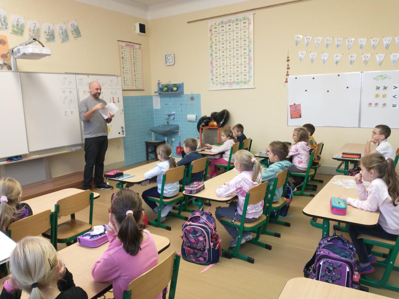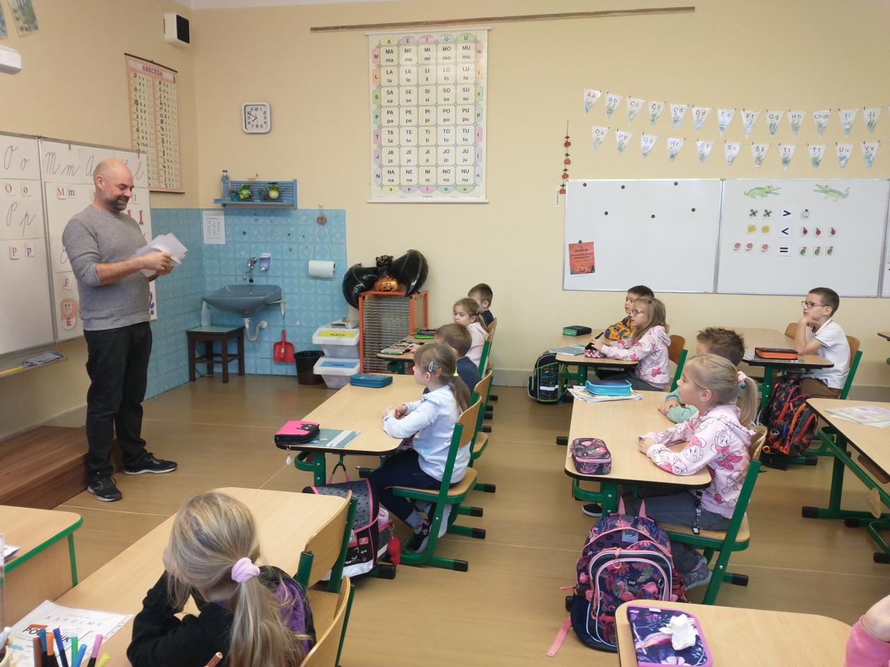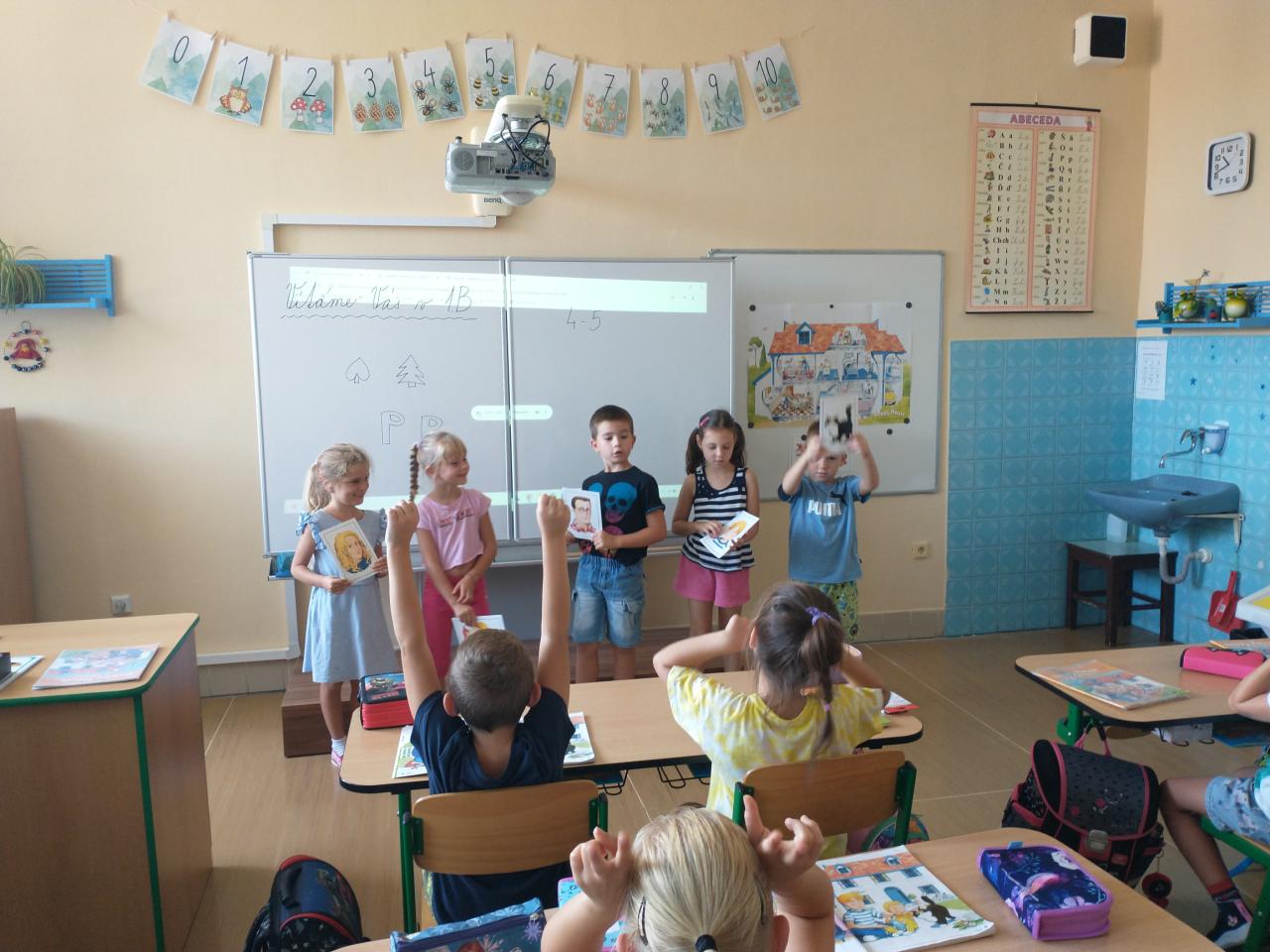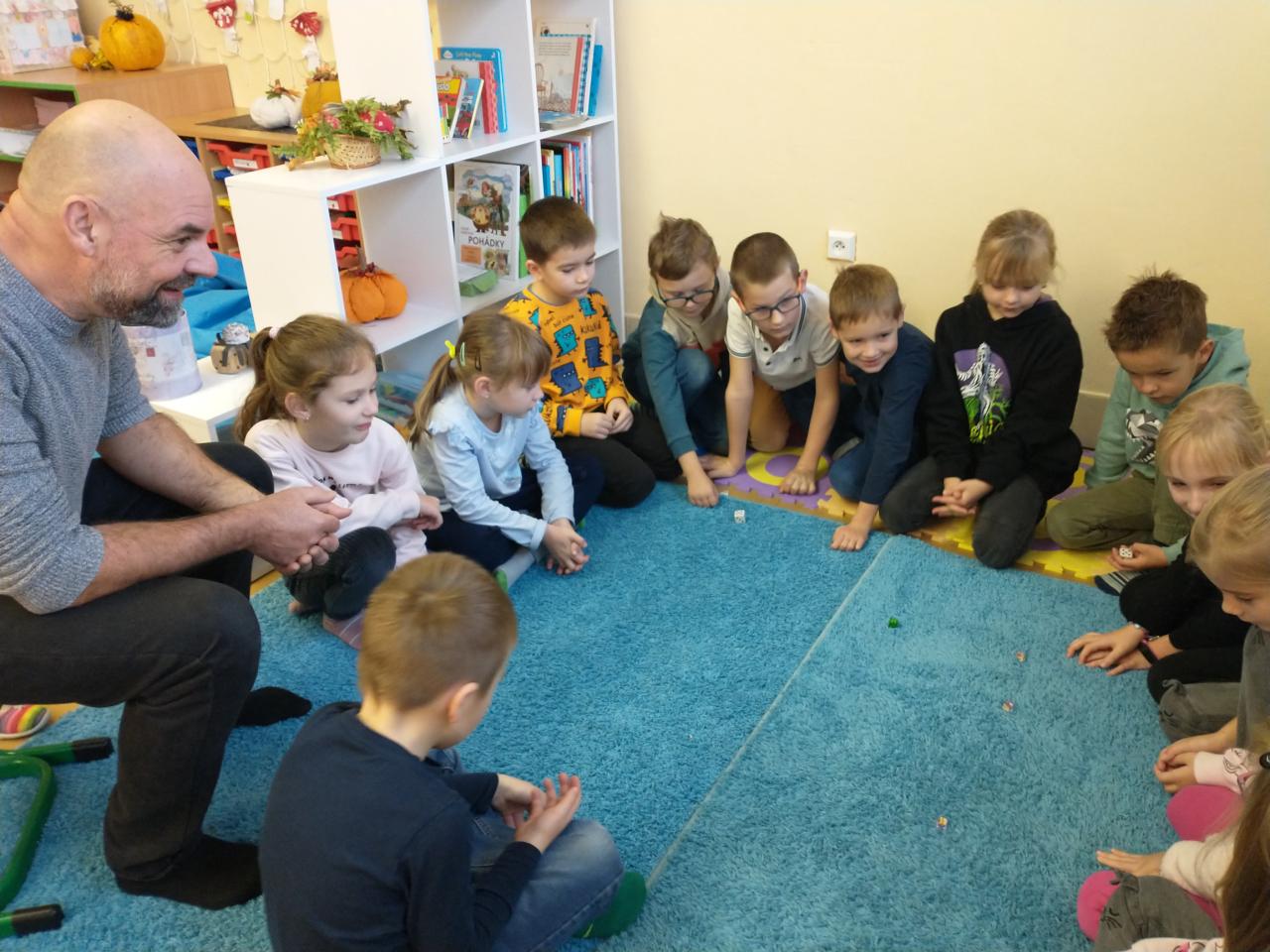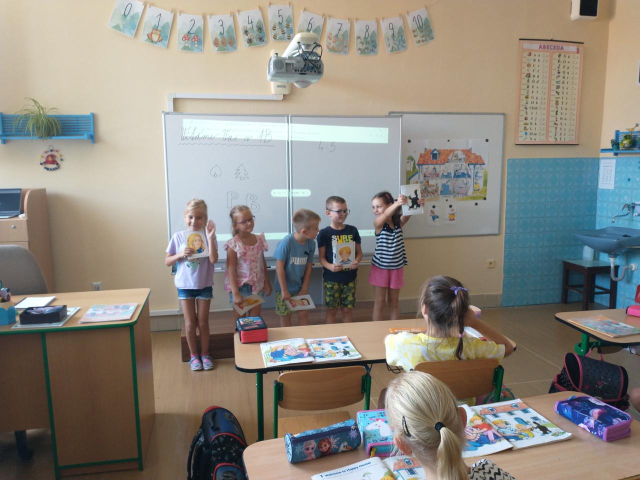 Od září se učíme anglický jazyk. Pracujeme s kartami, plníme obrázkové úkoly. Velkým zpestřením výuky jsou pro nás hodiny s rodilým mluvčím. Zvládli jsme s ním i naši oblíbenou matematickou rozcvičku - samozřejmě celou anglicky!