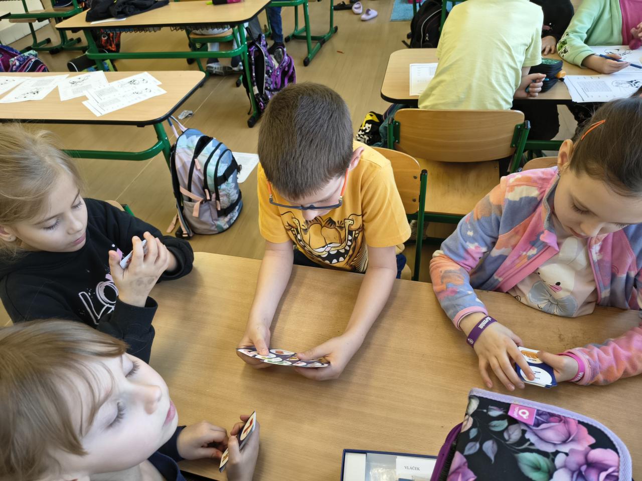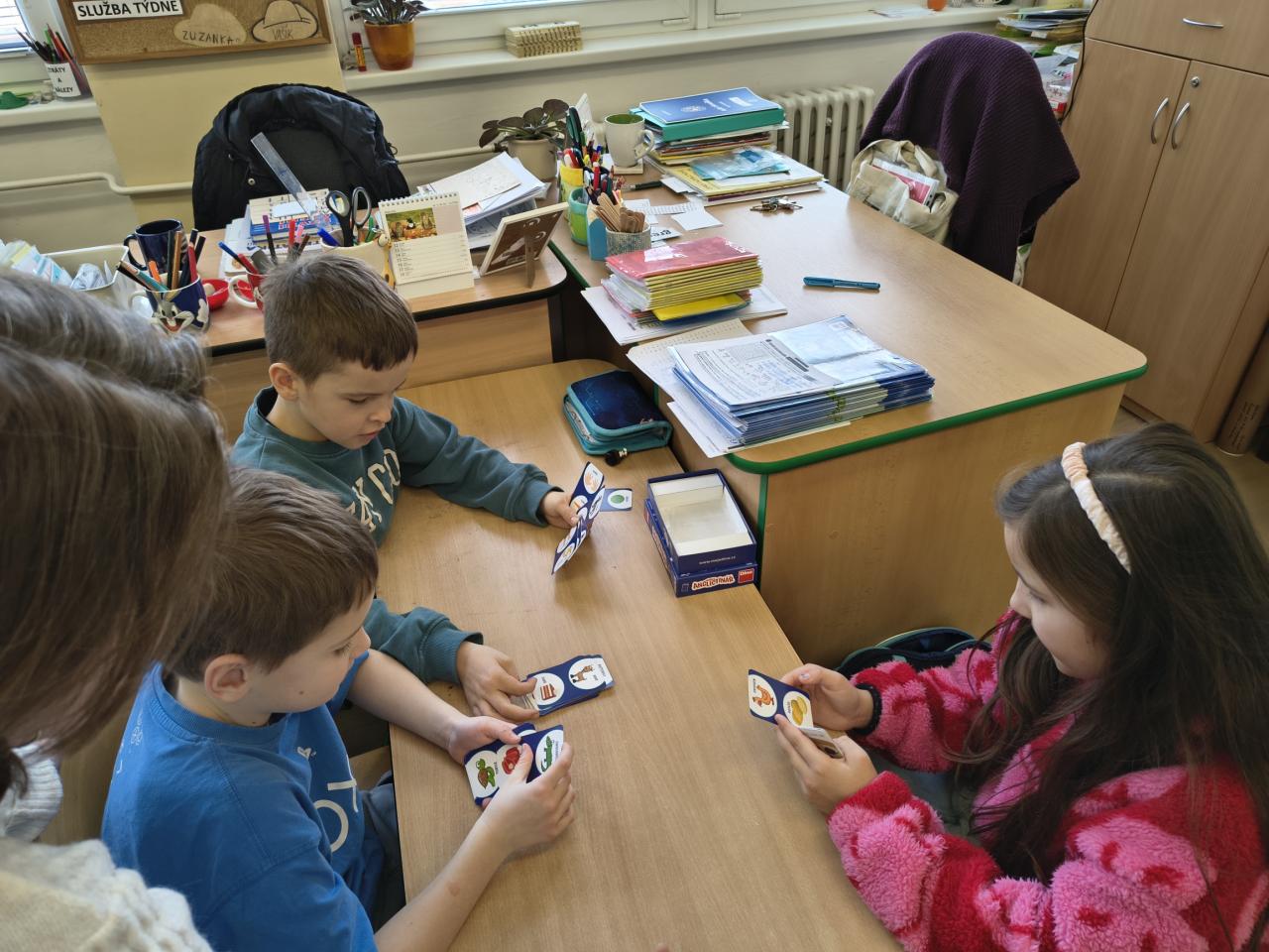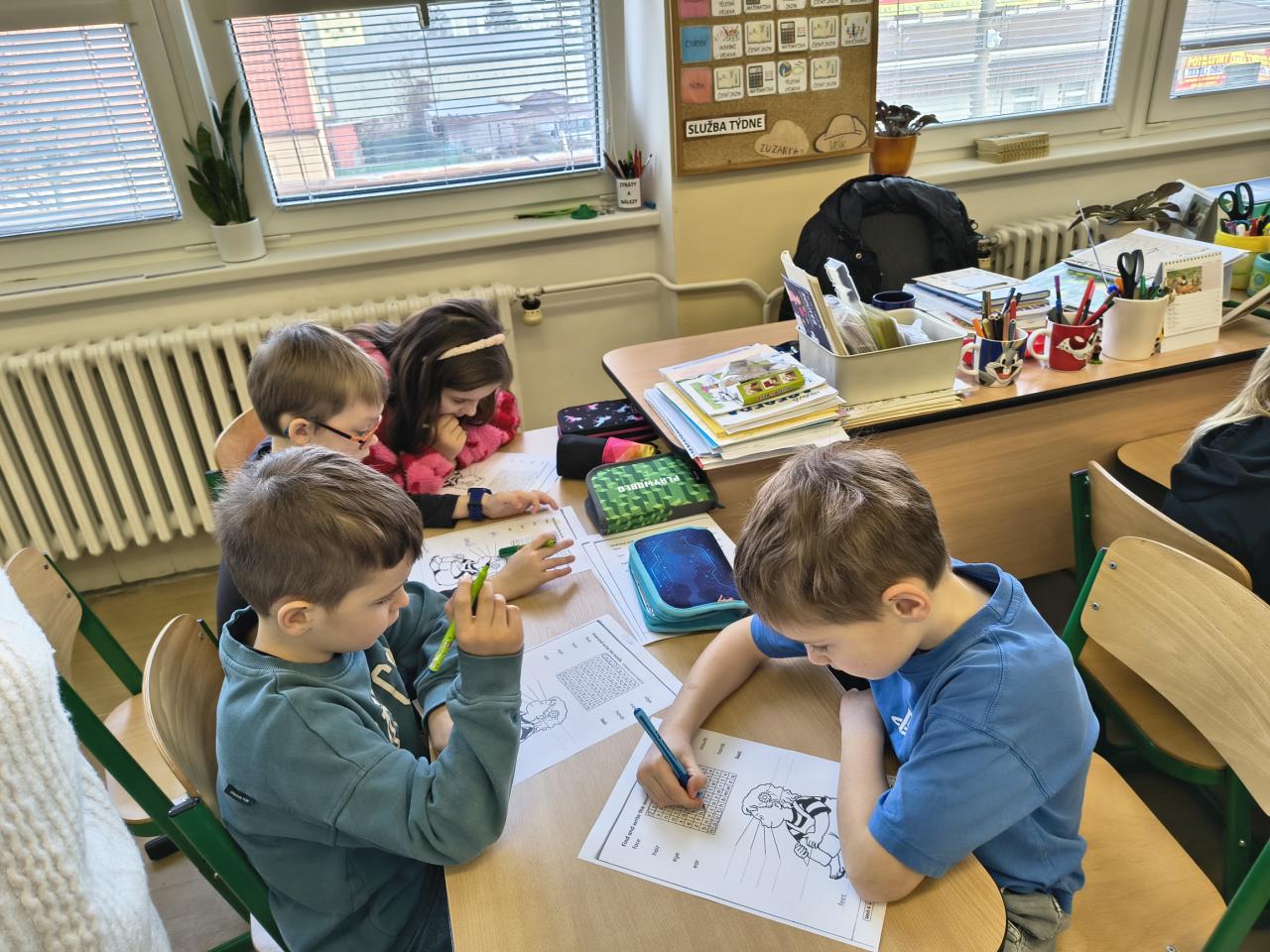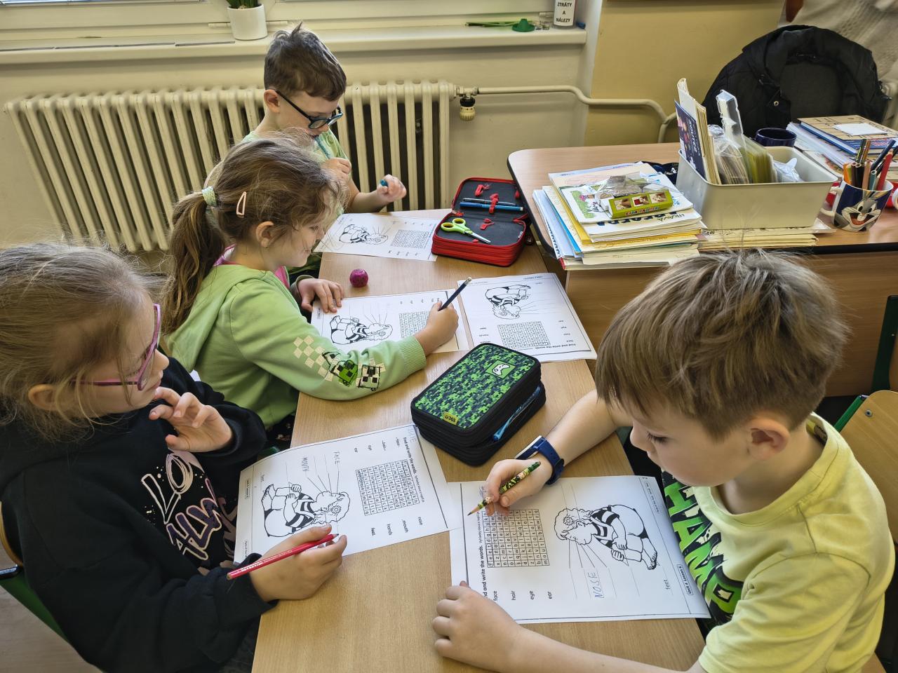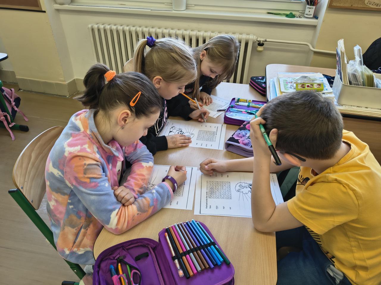 Tentokrát jsme pracovali ve skupinkách a plnili různé úkoly na stanovištích. Opakovali jsme si slovní zásobu se Scotem, řešili čtyřsměrku, hráli pexeso, skládali slova. Hodina nám velmi rychle utekla.