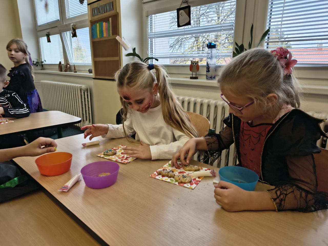 Dýně, pavouci, netopýři i duchové ve čtvrtek spolu s dalšími příšerkami a příšerami zasedli do lavic i za katedry. Užili si společnou přehlídku, splnili halloweenské úkoly a nazdobili si strašidelné perníčky.