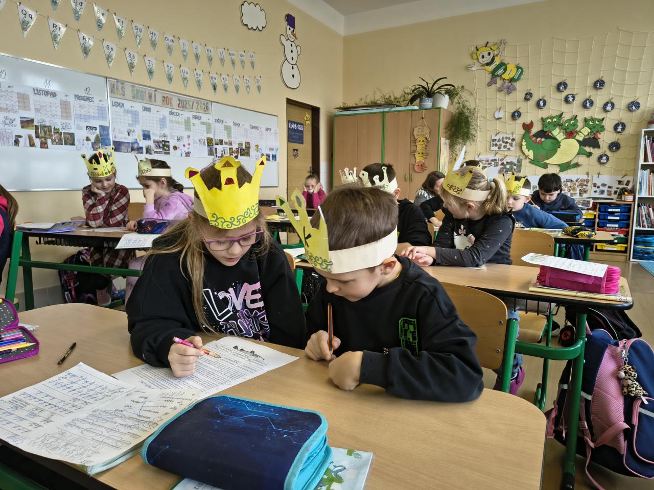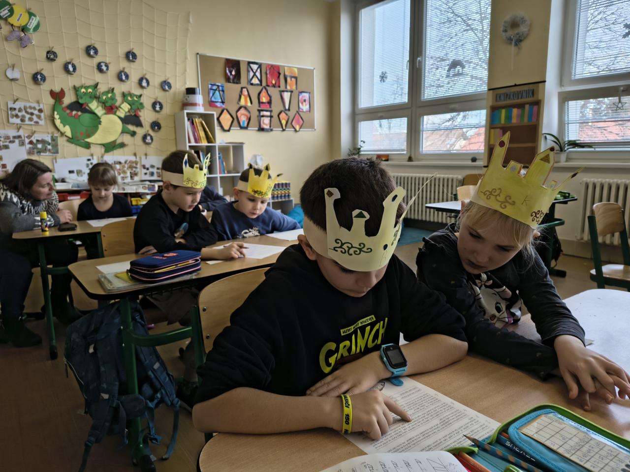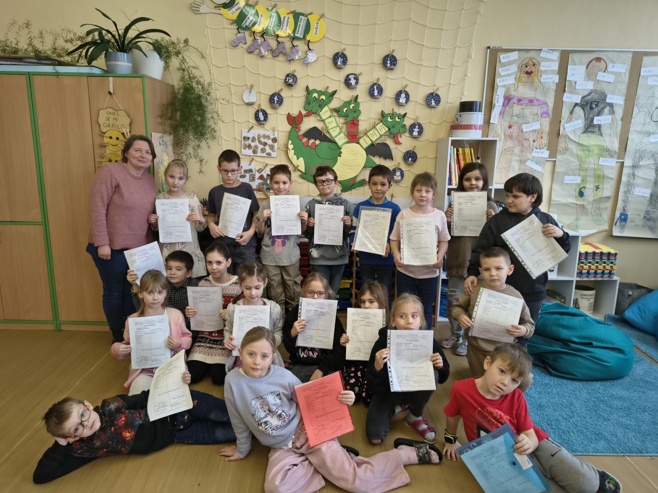 Vyzkoušeli jsme si tříkrálové učení, kreslili mizející obrázky a připomněli jsme si části našeho těla. S koncem ledna skončilo i první pololetí. Domů jsme si odnesli vysvědčení.