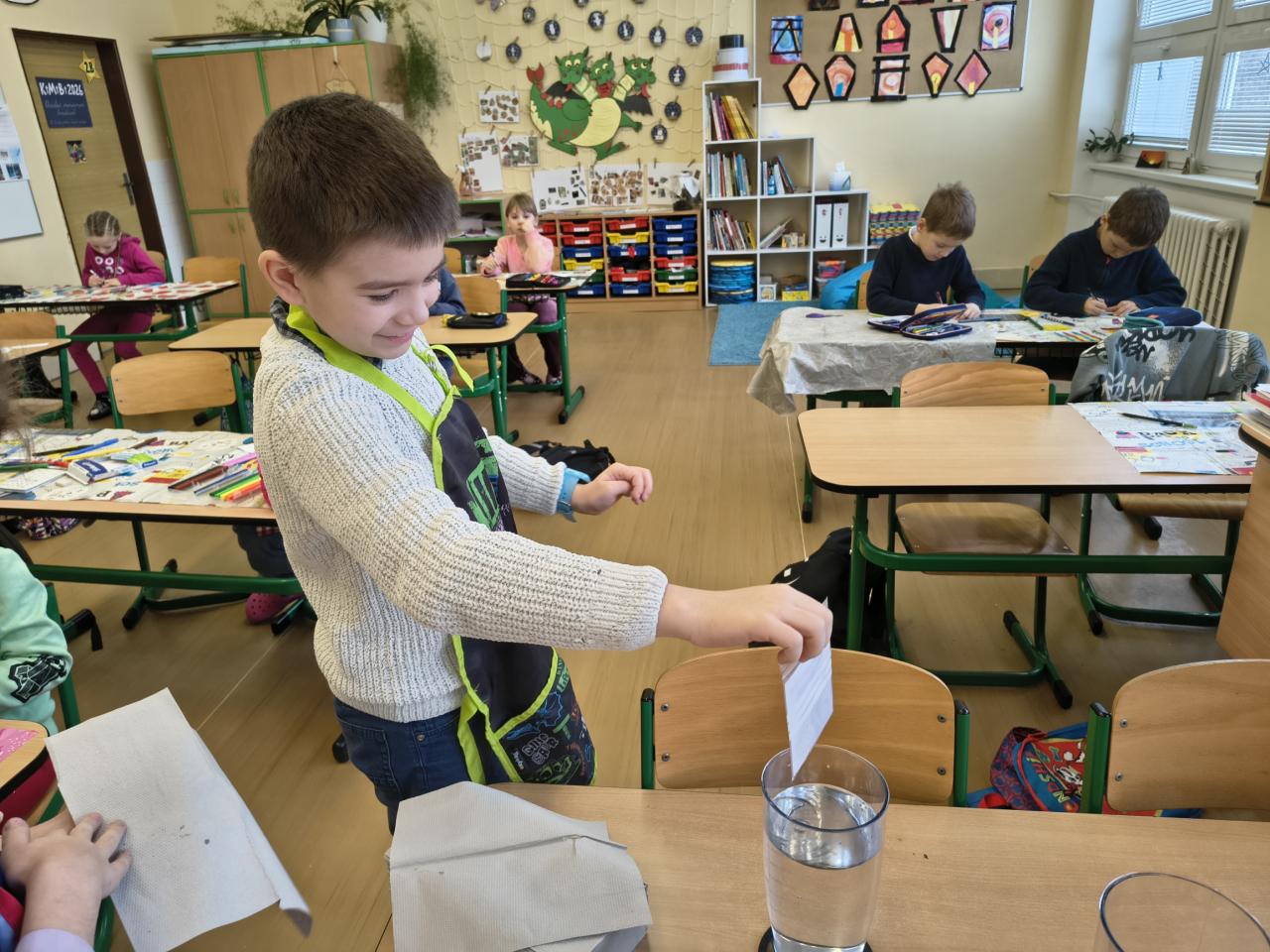 Vyzkoušeli jsme si tříkrálové učení, kreslili mizející obrázky a připomněli jsme si části našeho těla. S koncem ledna skončilo i první pololetí. Domů jsme si odnesli vysvědčení.