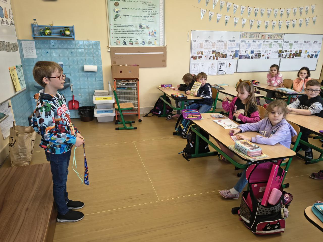 Každý jsme jiný a každý vynikáme v něčem jiném. Přesně to se nám potvrdilo při prezentacích na téma Můj talent. Druháci si připravili zajímavé náměty, doplnili je ukázkami medailí, diplomů, výzbroje i vlastních výrobků. Jejich příspěvky nám zpestřily hodiny českého jazyka i prvouky.