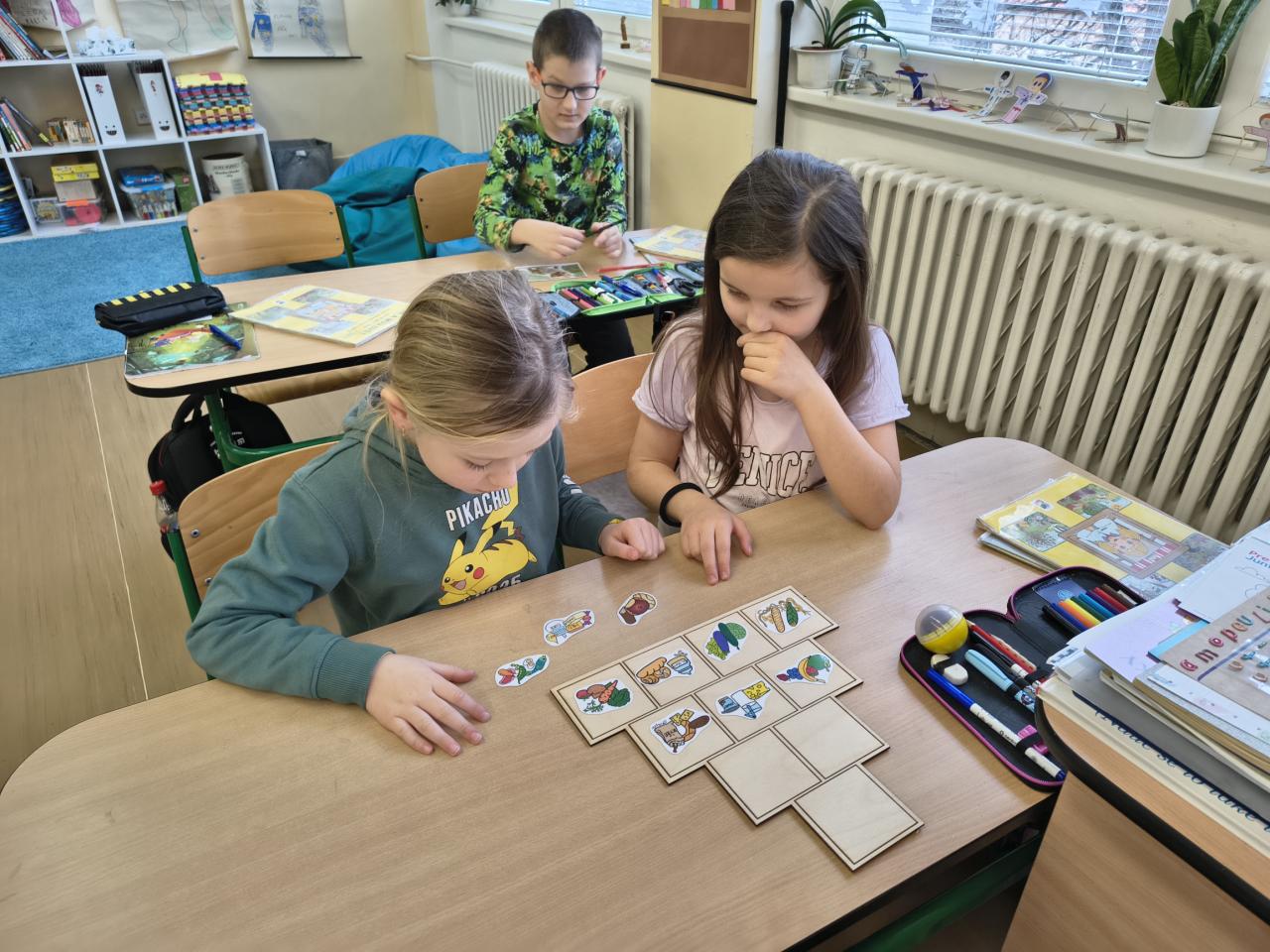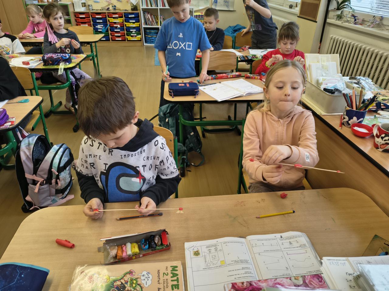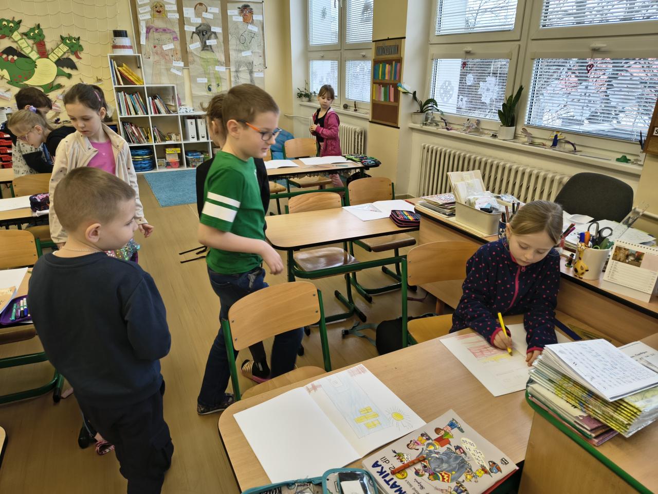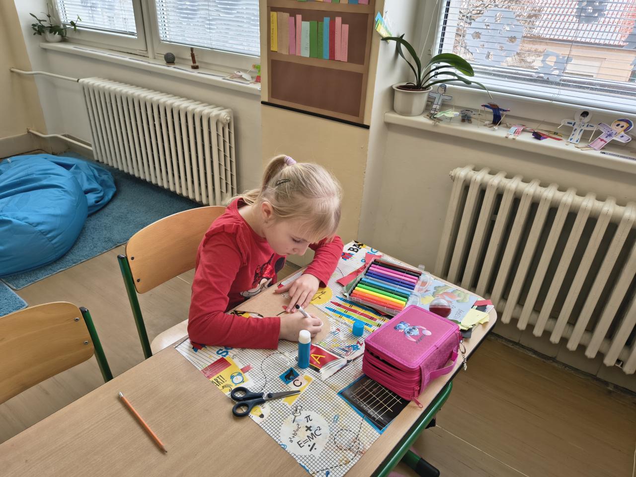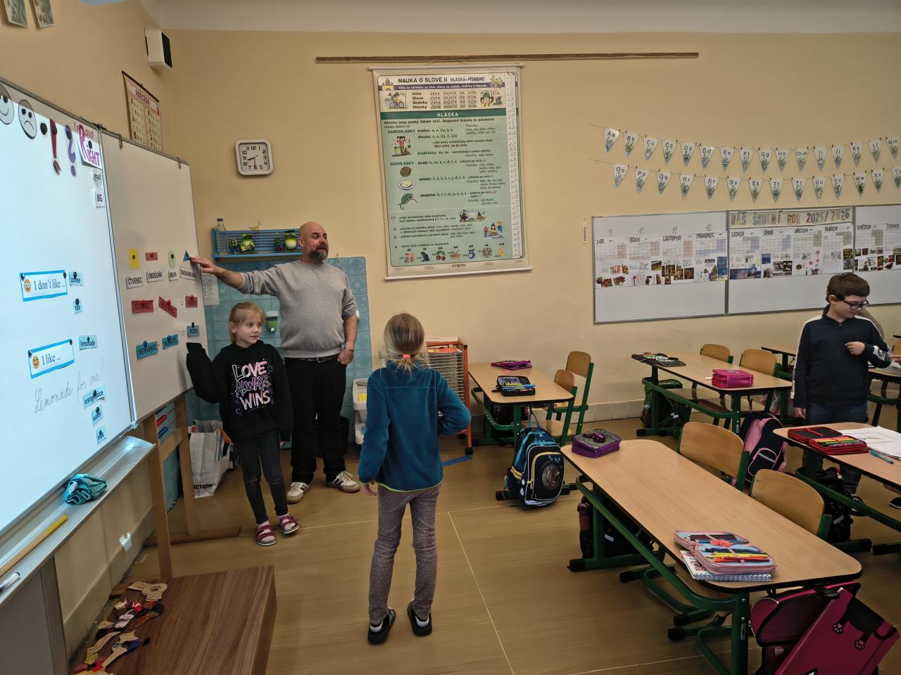 Naučili jsme se, co je to přímka, povedly se nám krásné rýsované obrázky. Určovali jsme tvrdé a měkké souhlásky. Protáhli jsme se při angličtině s rodilým mluvčím. Užili jsme si hry Zahradník a Hledej, najdi, vybarvi. Tématem prvouky bylo zdravé stravování a samozřejmě masopust.