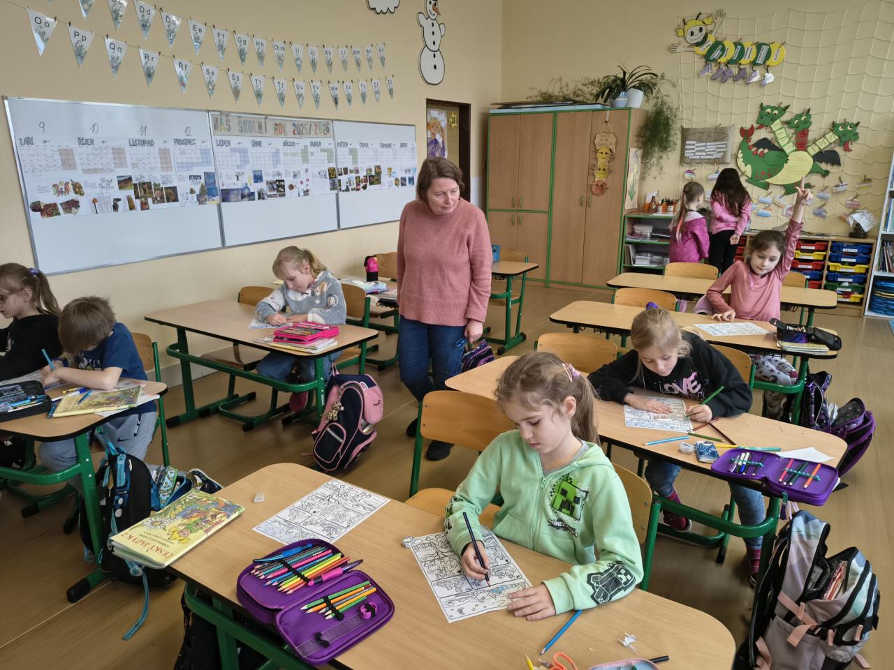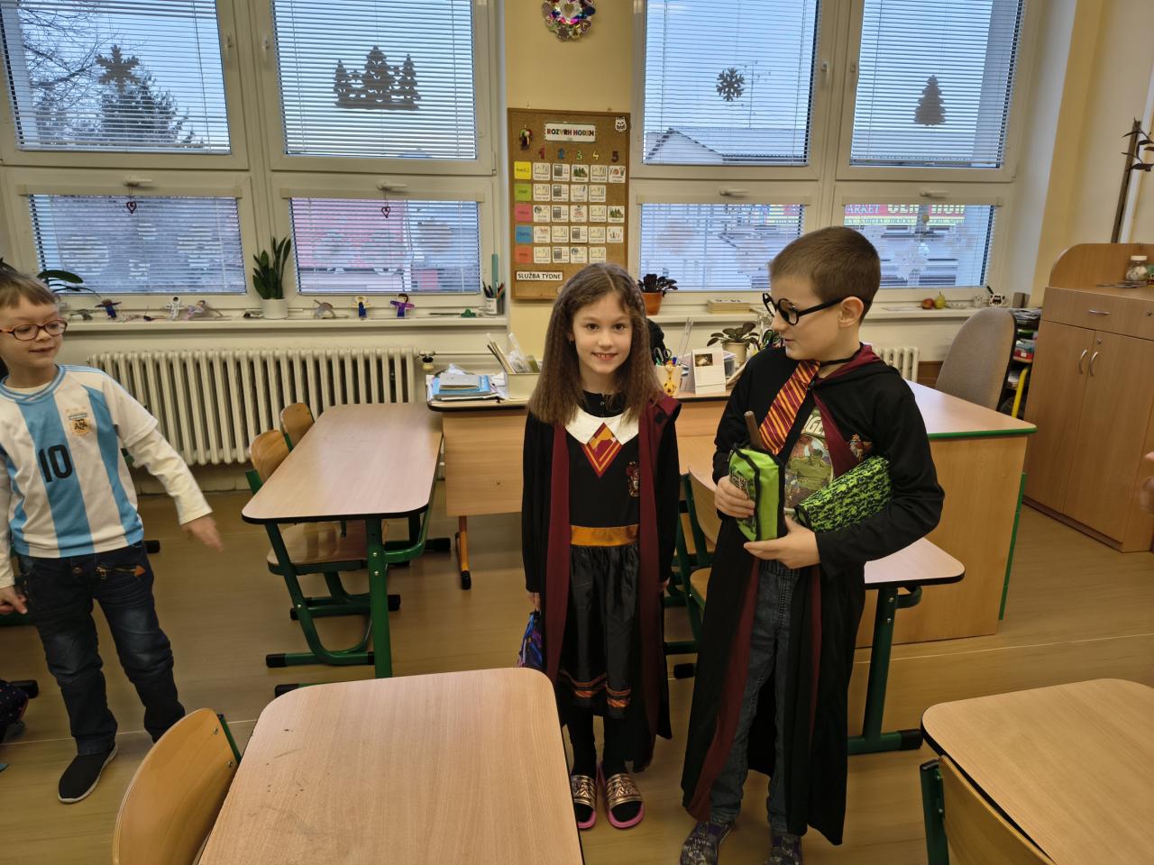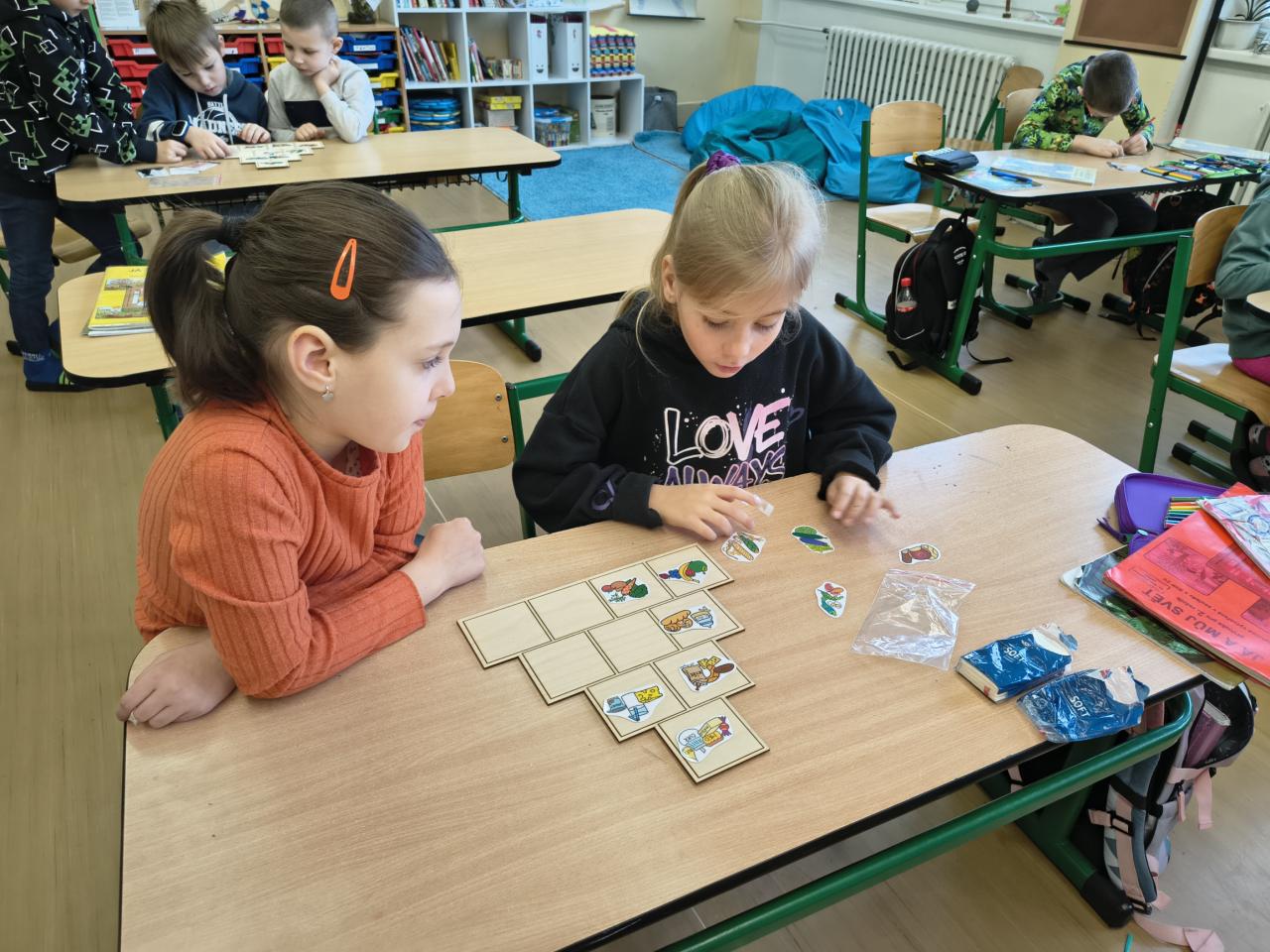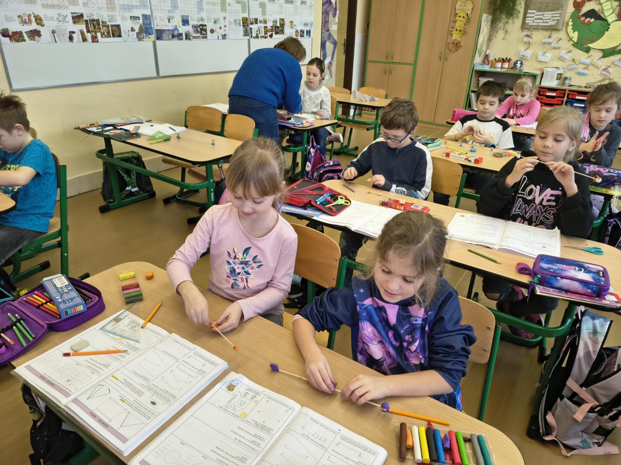 Naučili jsme se, co je to přímka, povedly se nám krásné rýsované obrázky. Určovali jsme tvrdé a měkké souhlásky. Protáhli jsme se při angličtině s rodilým mluvčím. Užili jsme si hry Zahradník a Hledej, najdi, vybarvi. Tématem prvouky bylo zdravé stravování a samozřejmě masopust.