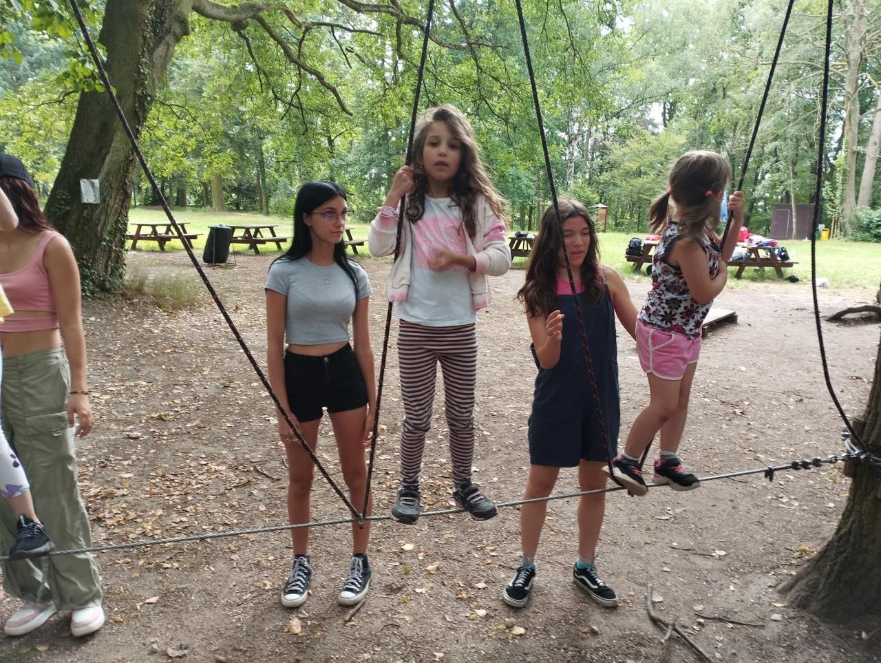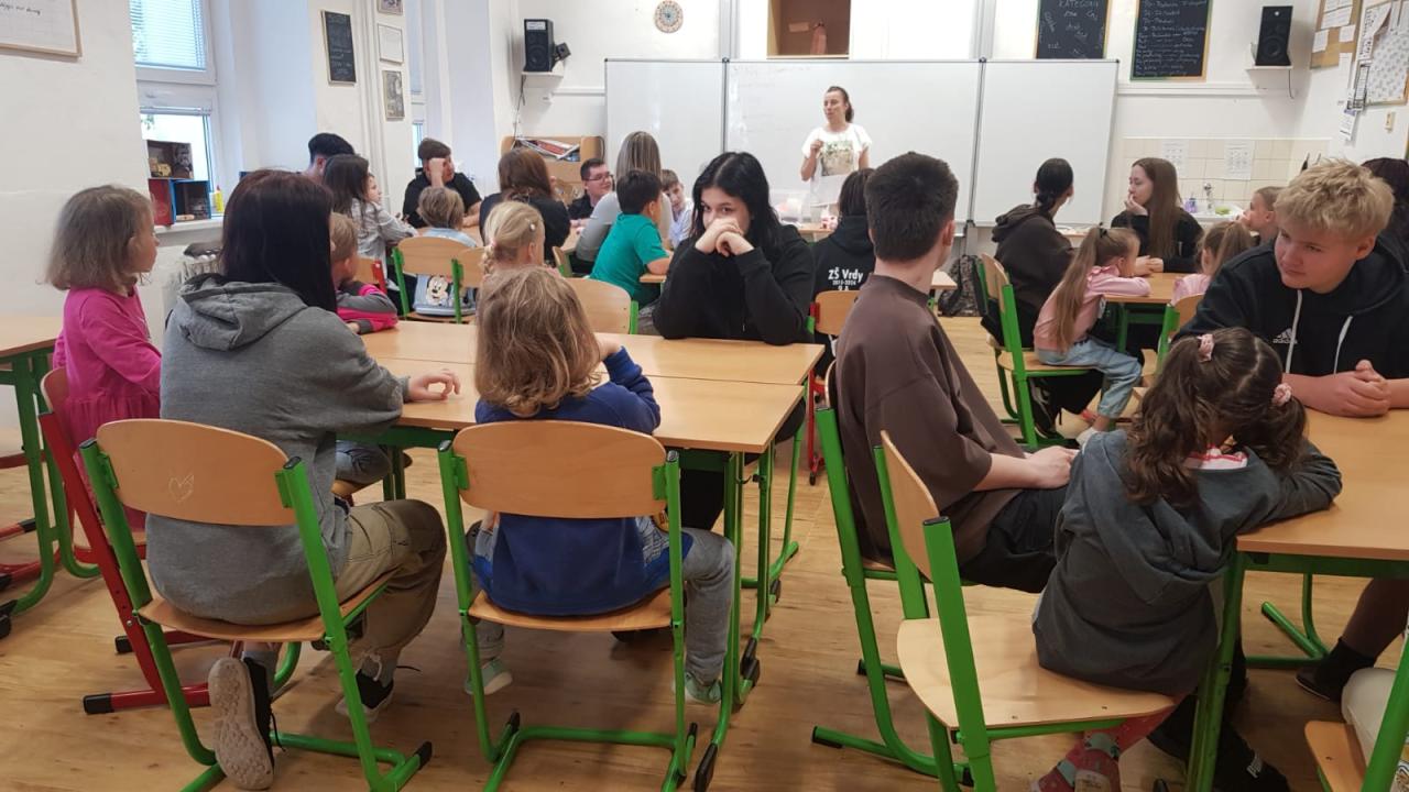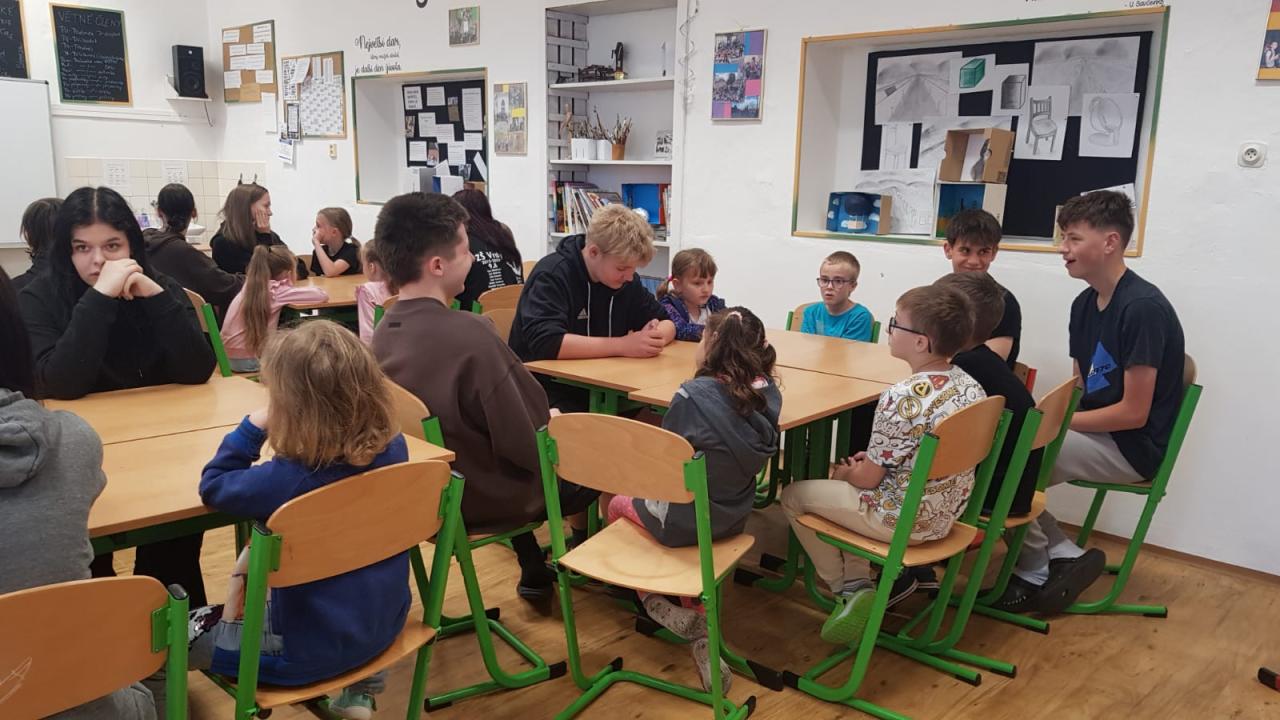 V rámci naší celoroční spolupráce jsme si společně s 9.A naplánovali i závěrečné červnové aktivity. Sešli jsme se a vzájemně si navlékli náramky přátelství. Školní rok jsme ukončili výletem k zámku Loučeň. Prošli jsme společně labyrinty, zahráli si šachy, překonávali lanové a opičí dráhy.