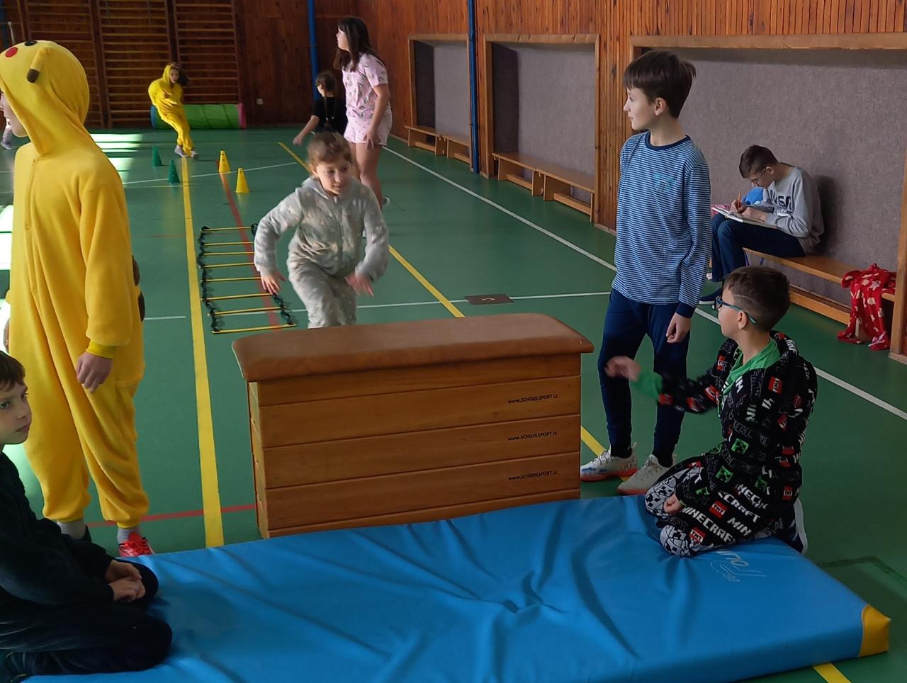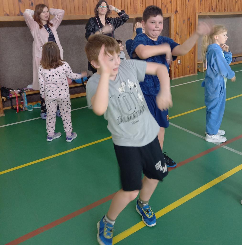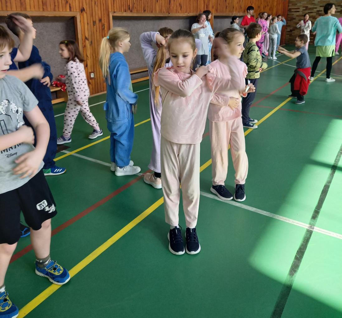 ...jsme účastí na Pyžamovém dni vyjádřili podporu pohody a psychického zdraví žáků, a také jsme tím vyjádřili solidaritu s rodinami vážně nemocných dětí, které tráví dlouhé týdny i měsíce v nemocnicích, často právě v pyžamu. V českém jazyce jsme si povyprávěli o historii pyžama a také o domech Ronalda Mc Donalda, které jsou stavěny a otvírány pro rodiny dlouhodobě nemocných dětí. Druhá hodina se nesla v duchu pohybu. Děti ze 4. B s p. uč. Michaelou Kratochvílovou si pro celý první stupeň připravily pyžamovou rozcvičku. Krásně jsme si zacvičili i zatancovali. Děkujeme. Ve výtvarné výchově jsme se proměnili v módní návrháře a navrhli si krásná pyžama - podobně jako Coco Chanel, o které jsme si povídali v první hodině. Na závěr nás pak čekala matematika - s kružítkem v ruce jsme se snažili o první kružnice a kruhy, což se nám docela dařilo. Určitě jsme si celé dopoledne pěkně užili.