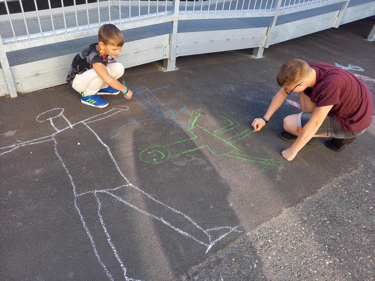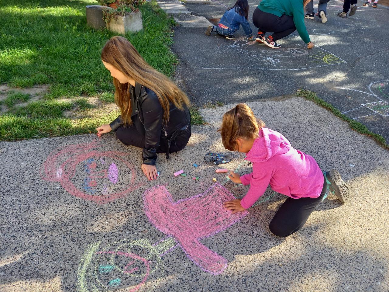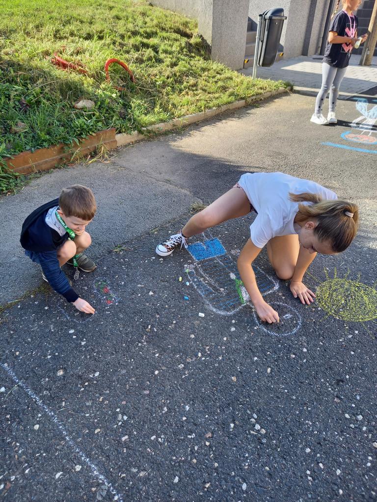 jsme se se svými velkými kamarády opět sešli, abychom společnými silami nakreslili sebe spolu s nějakou věcí, která nás spojuje. Všem se podařila nádherná díla, o kterých nám autoři v naší "venkovní galerii" povyprávěli.
