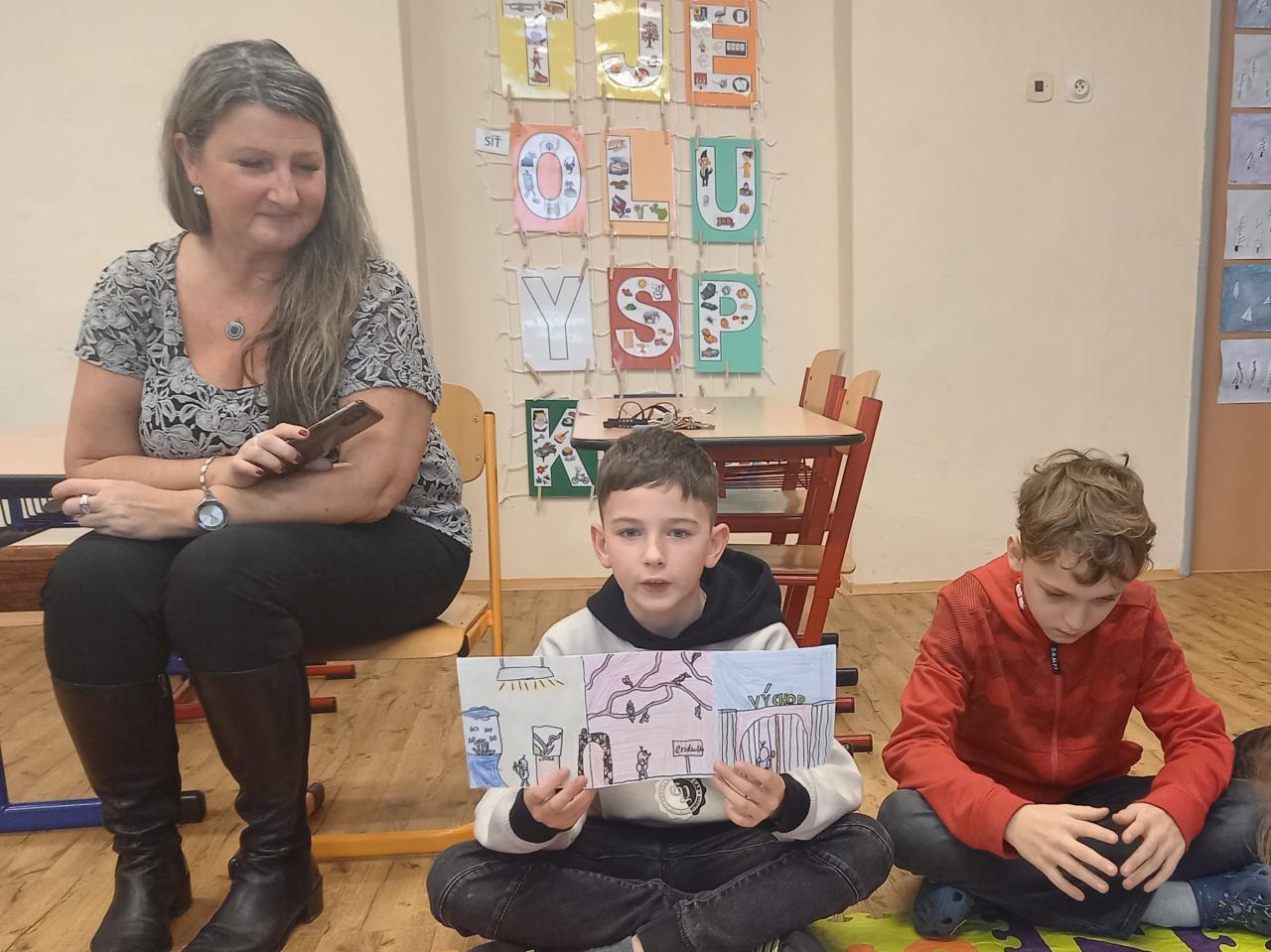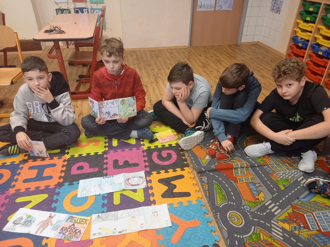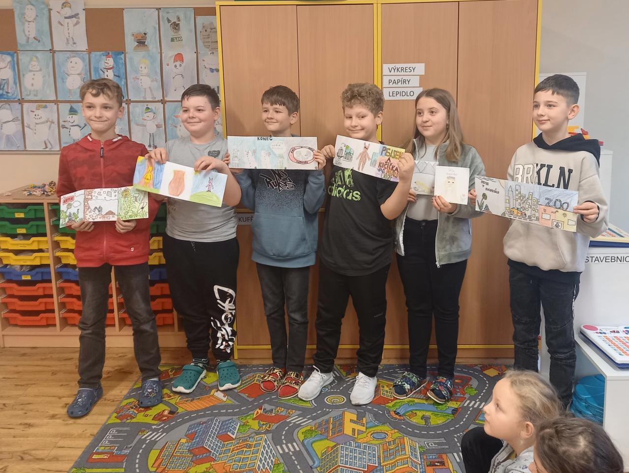 ...nás po předchozí domluvě navštívili žáci 5.B třídy, kteří se s námi chtěli podělit o radost z vytvořeného leporela. Měli jsme možnost vyslechnout zajímavá pohádková vyprávění, která byla doprovázena ukázkami leporel s pěknými ilustracemi. Padly také dotazy a odpovědi nebo dokončení vyprávění. Aktivita se nám moc líbila, je pro nás inspirací. Moc děkujeme p. uč. Miláčkové a žákům, kteří nám chtěli své hezké práce prezentovat.