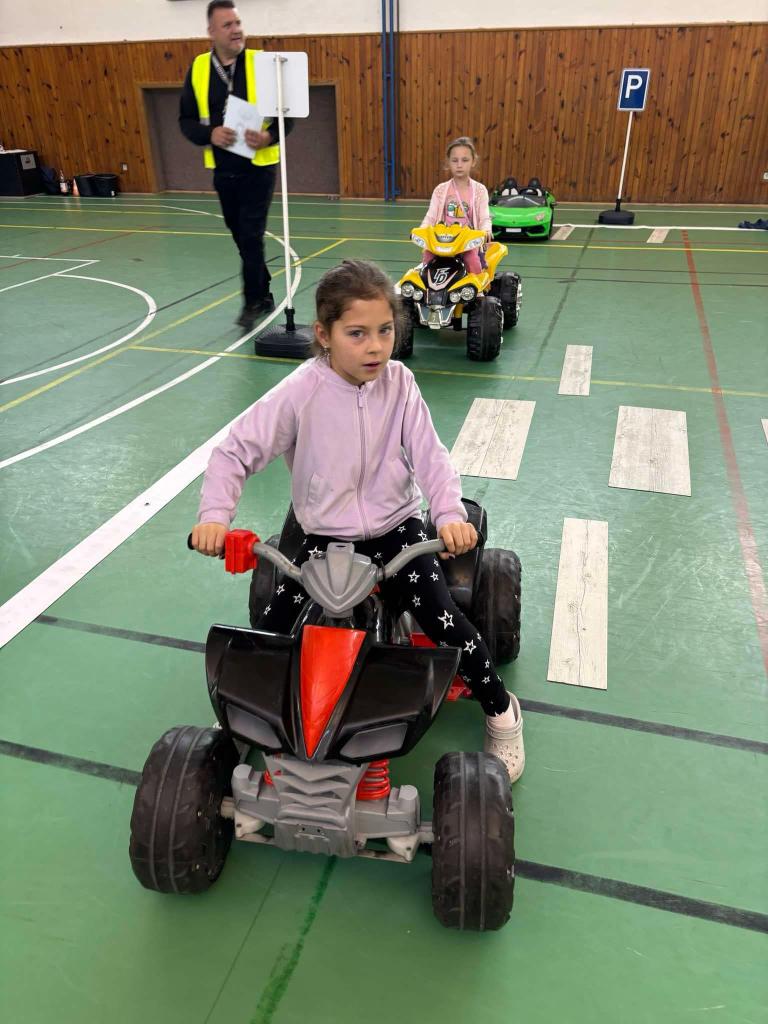 Nejprve si žáci zopakovali důležitá pravidla bezpečného chování na silnici a připomněli si důležité dopravní značky. Poté si mohl každý vyzkoušet řízení dětského autíčka. Zábavné, ale zároveň poučné projížďky ukázaly, že být řidičem není jen o rychlosti, ale především o ohleduplnosti a dodržování pravidel. Na dopravním hřišti nechyběli ani naši chodci a policisté.