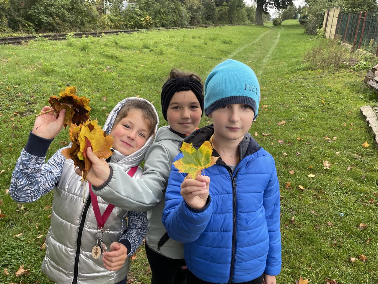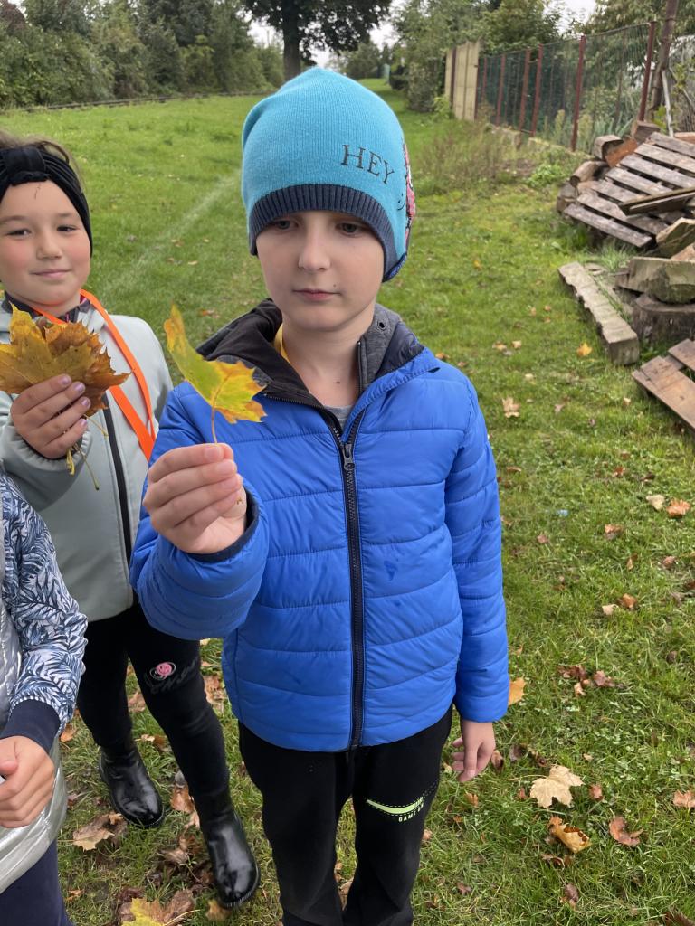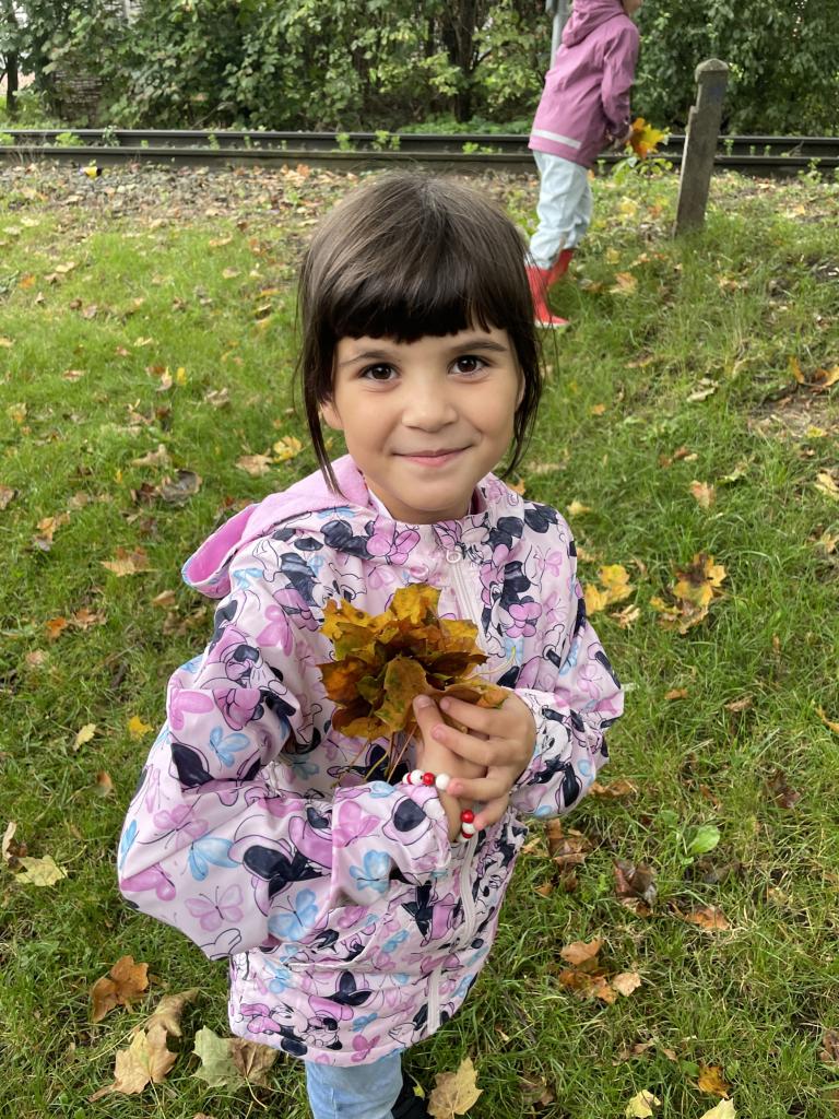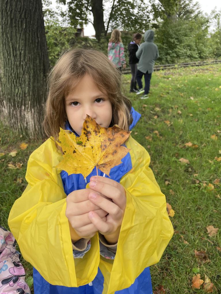 Podzimní téma jsme využili i k vycházce, během které jsme popisovali projevy podzimu v přírodě, pojmenovali jsme různé stromy a vytvořili jsme kytice z listí.