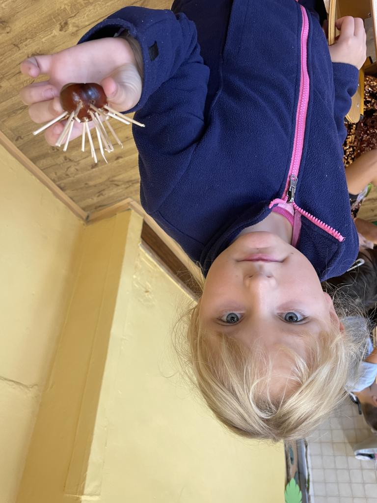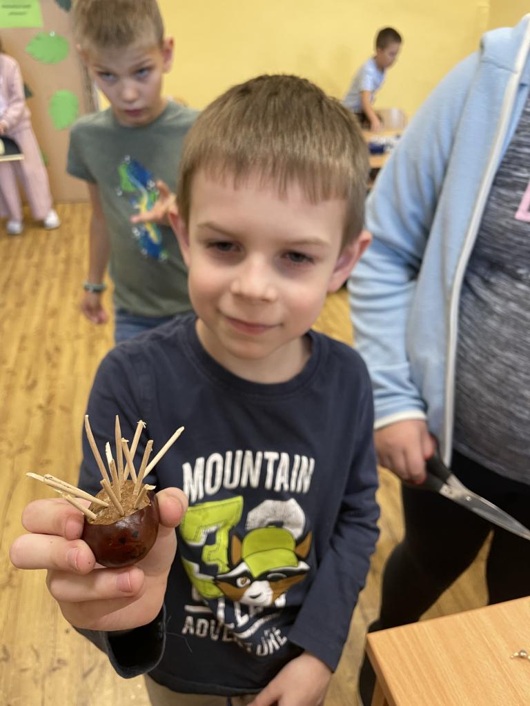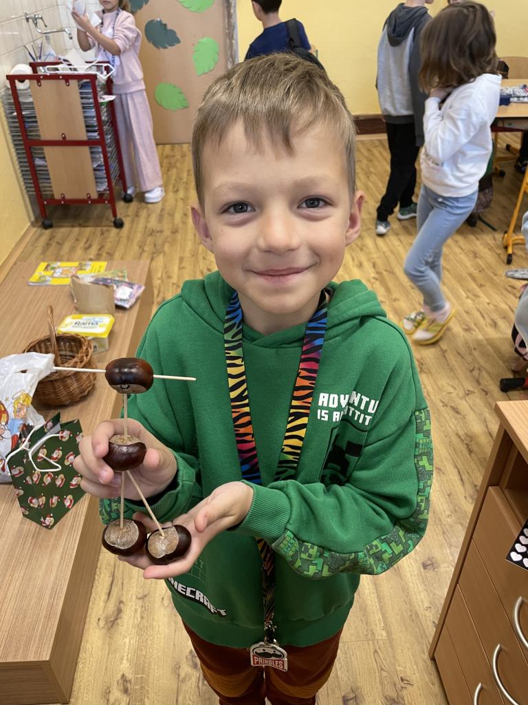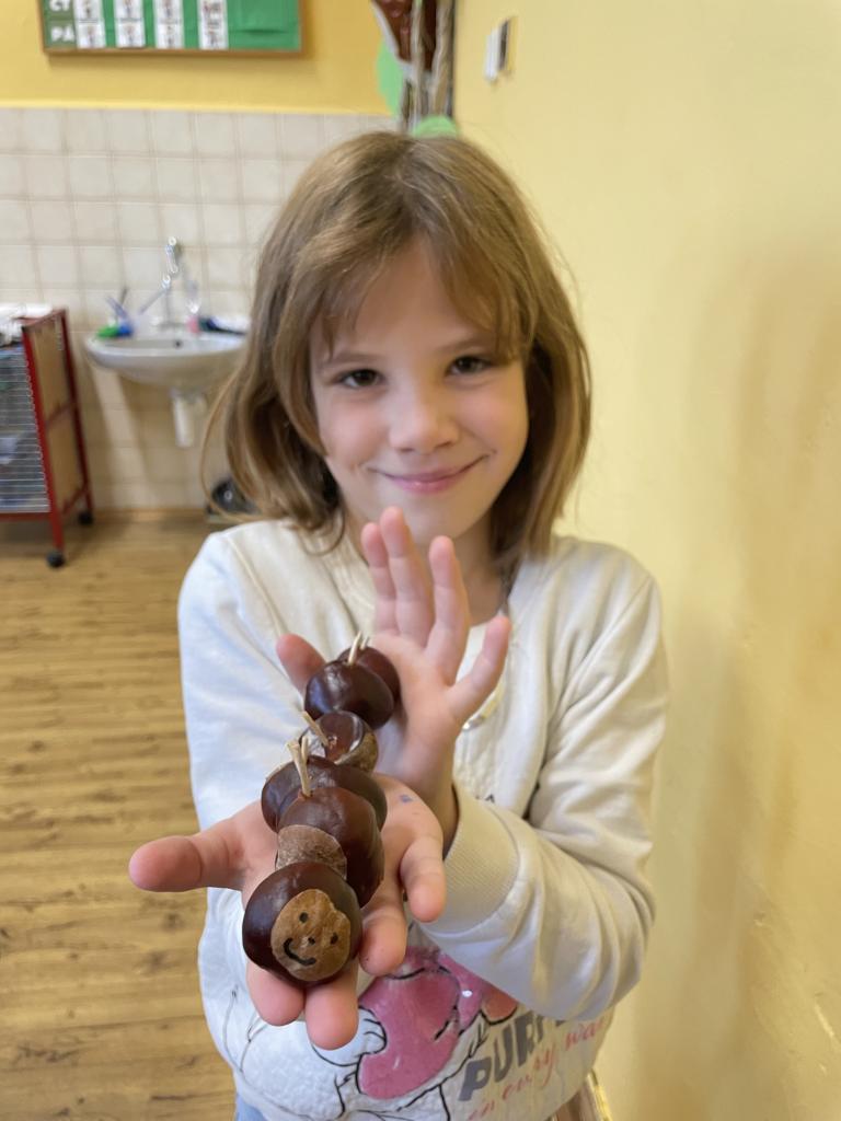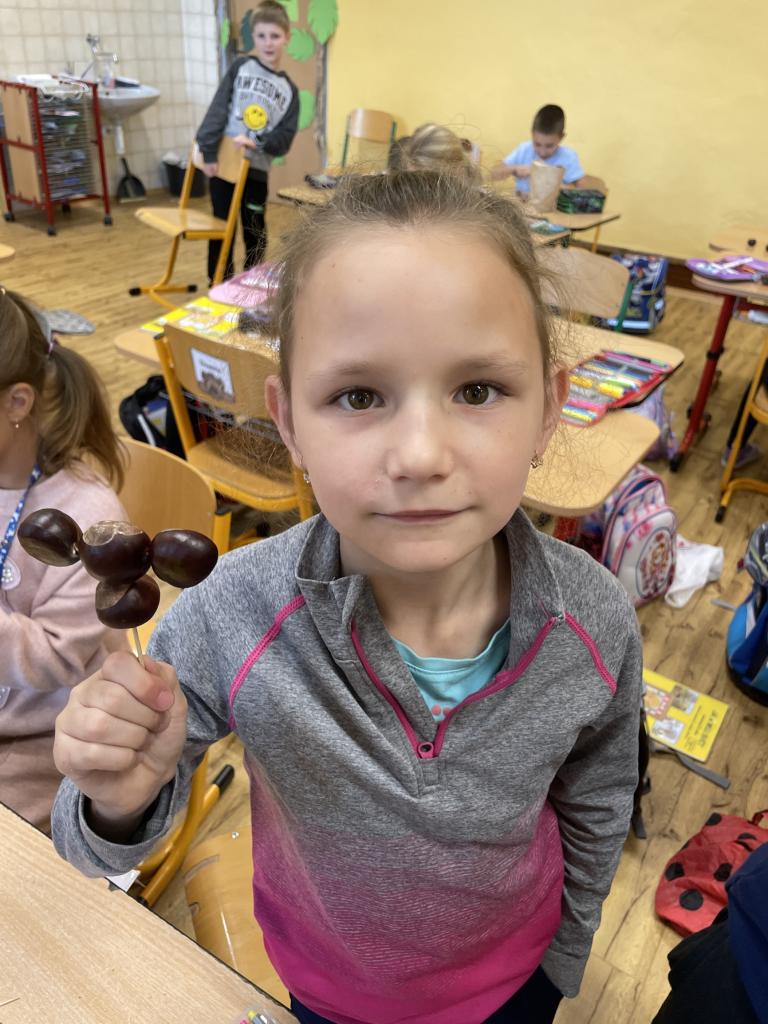 V týdnu 30.9. - 4.10. proběhl ve II.B kaštanový týden. Děti si donesly několik kaštanů a s jejich pomocí se učily. V hodinách matematiky nám kaštany posloužily jako názorná ukázka. Ukázali jsme si na nich rozklady. Dále jsme je využili i v hodině pracovních činností, kdy jsme z kaštanů vyráběli zvířata a postavy.
