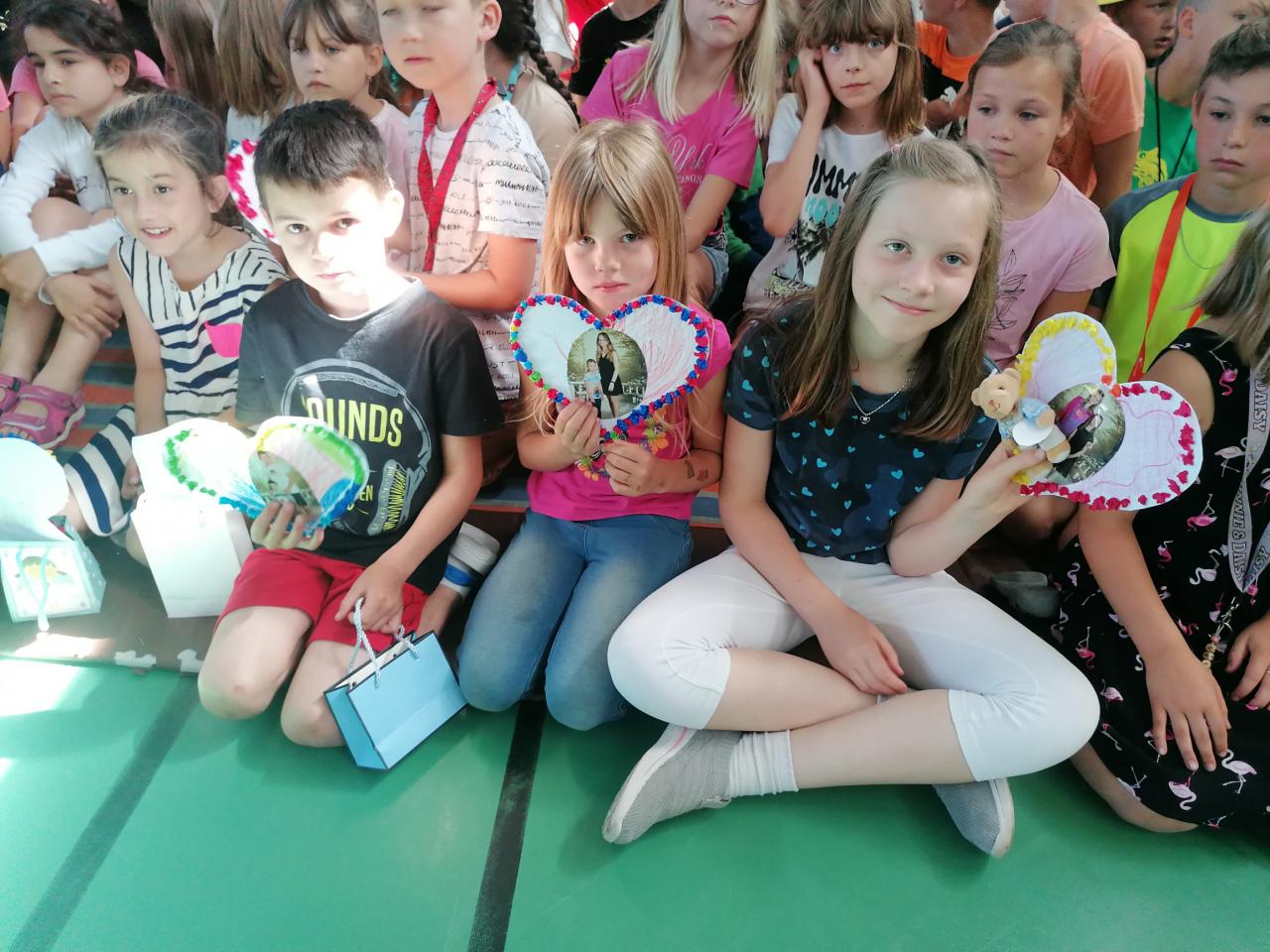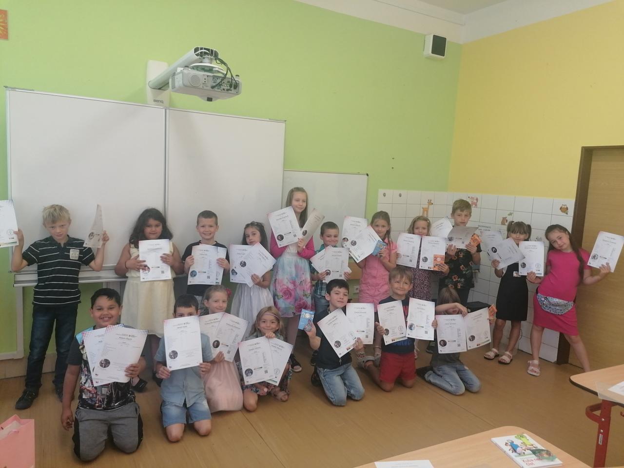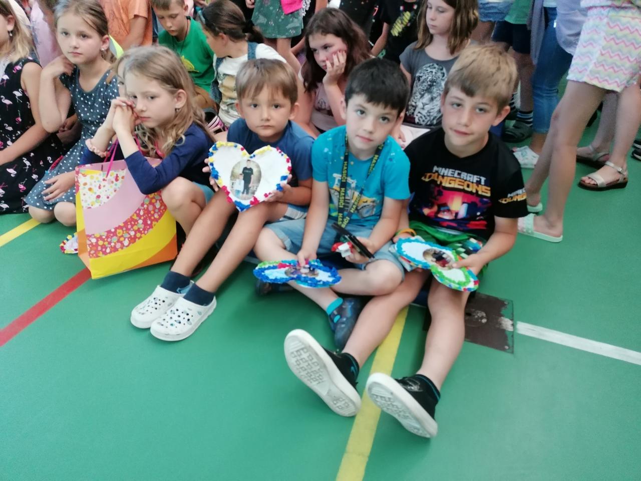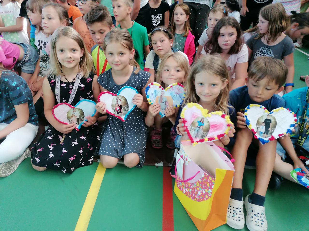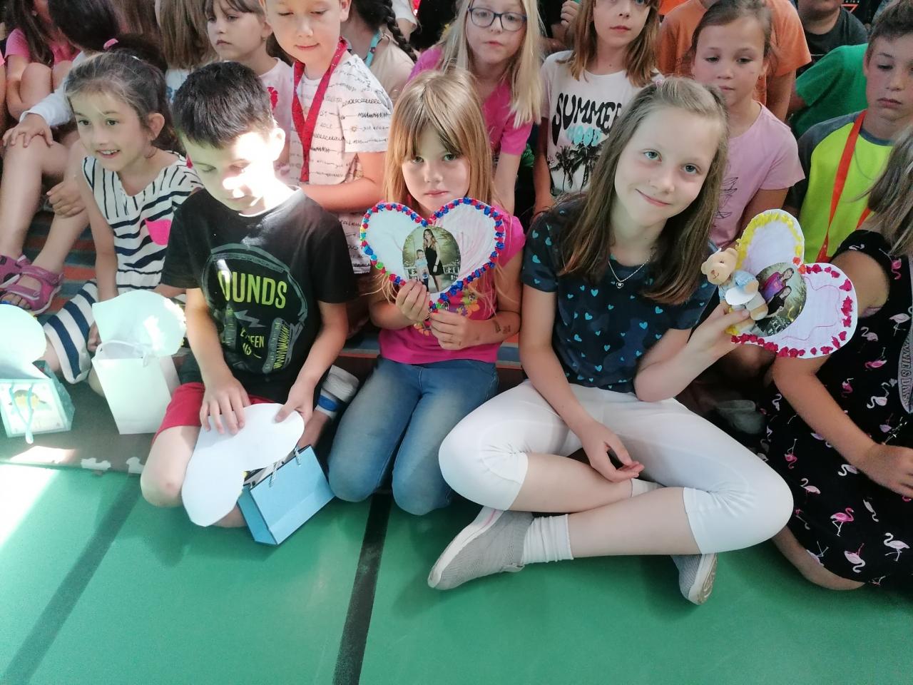 Naši kamarádi z 9.A nám stihli ještě poslední týden ukázat, jak se pracuje v počítačové učebně. Ve čtvrtek jsme se s nimi rozloučili v tělocvičně a předali jsme jim vlastnoručně vyrobená srdíčka s fotkou na památku. V pátek se s námi ještě přišli vyfotit s vysvědčením. Přejeme jim hodně úspěchů.