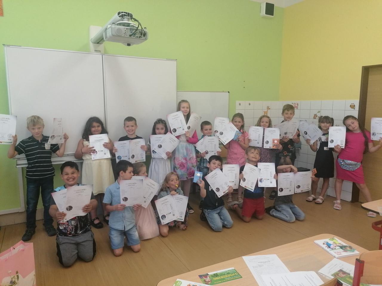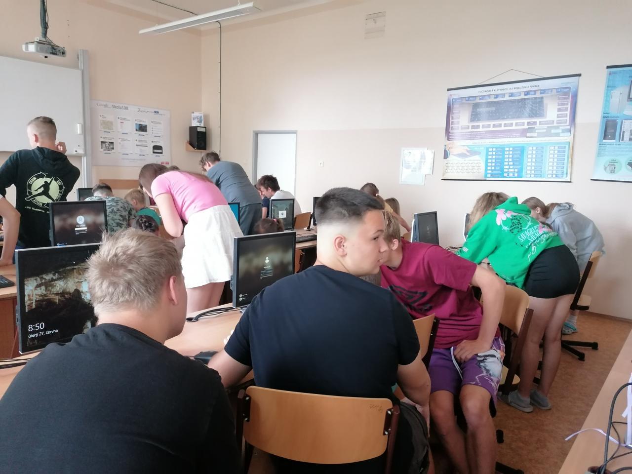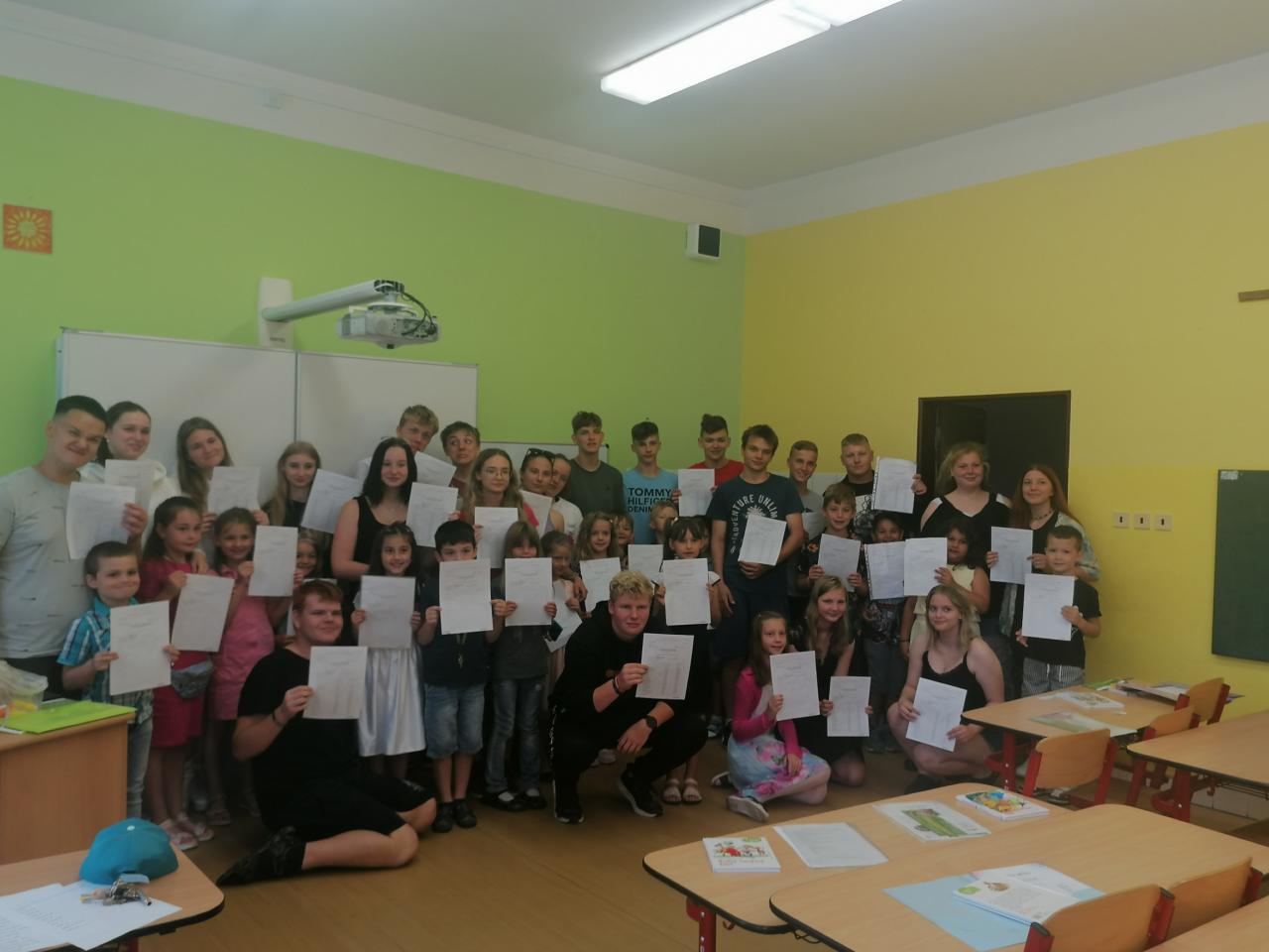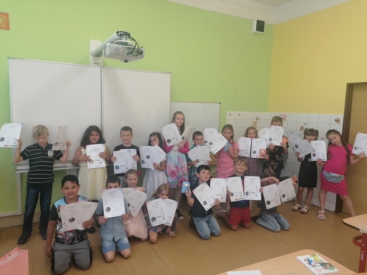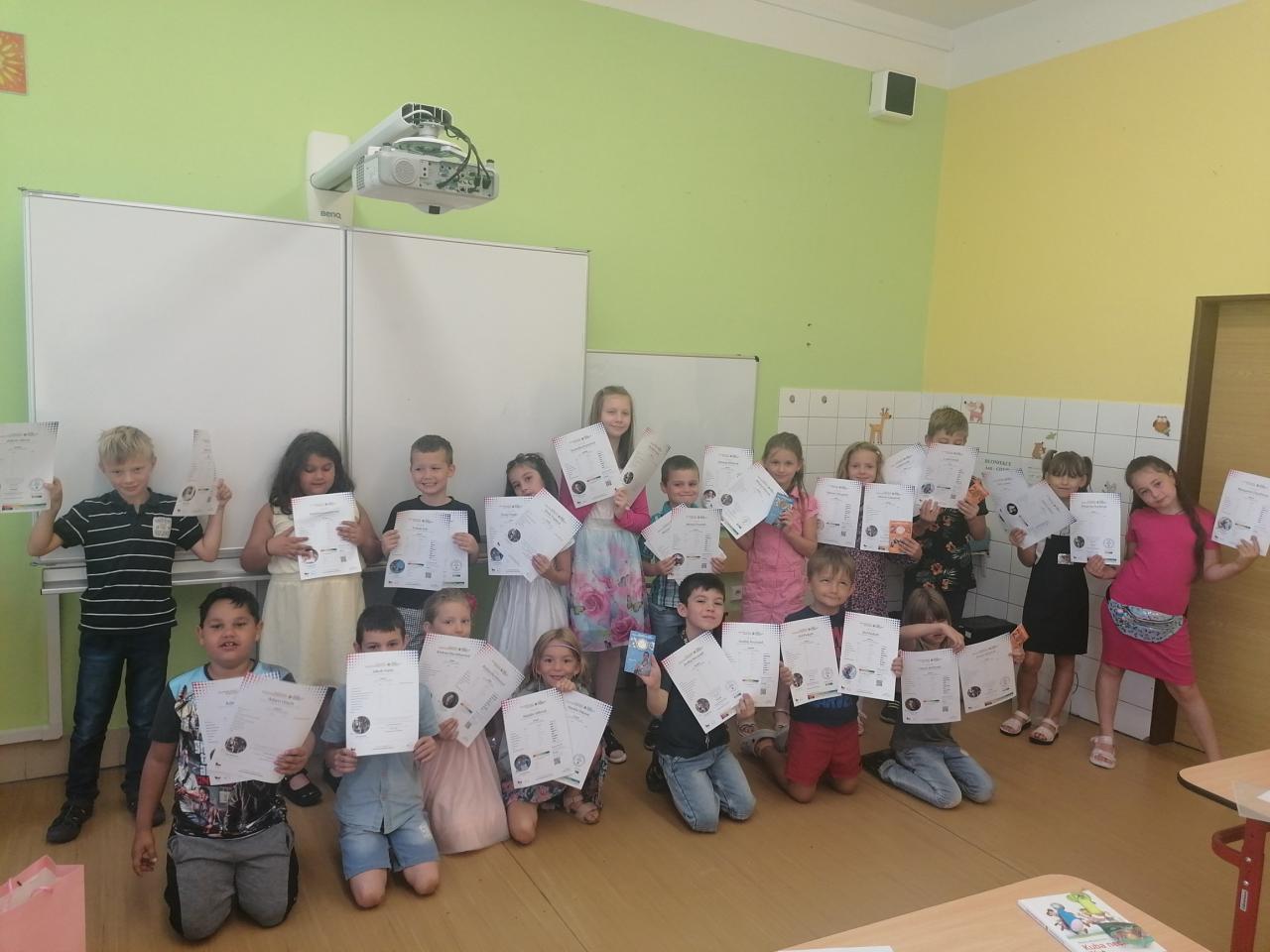 Naši kamarádi z 9.A nám stihli ještě poslední týden ukázat, jak se pracuje v počítačové učebně. Ve čtvrtek jsme se s nimi rozloučili v tělocvičně a předali jsme jim vlastnoručně vyrobená srdíčka s fotkou na památku. V pátek se s námi ještě přišli vyfotit s vysvědčením. Přejeme jim hodně úspěchů.
