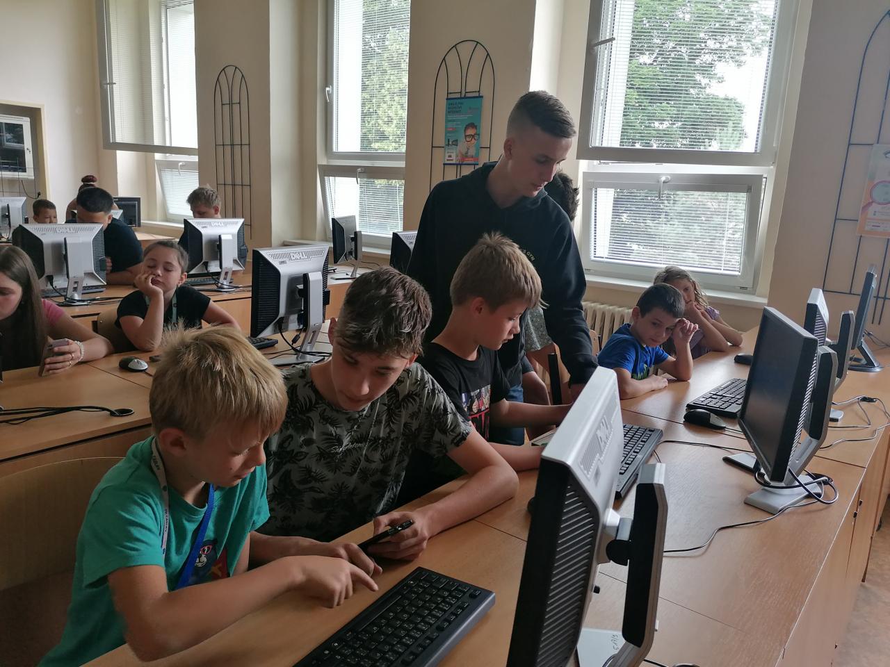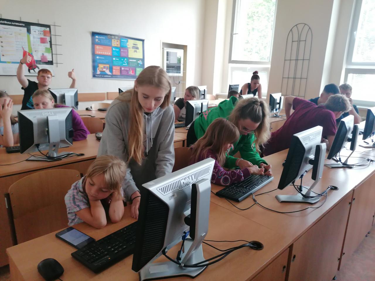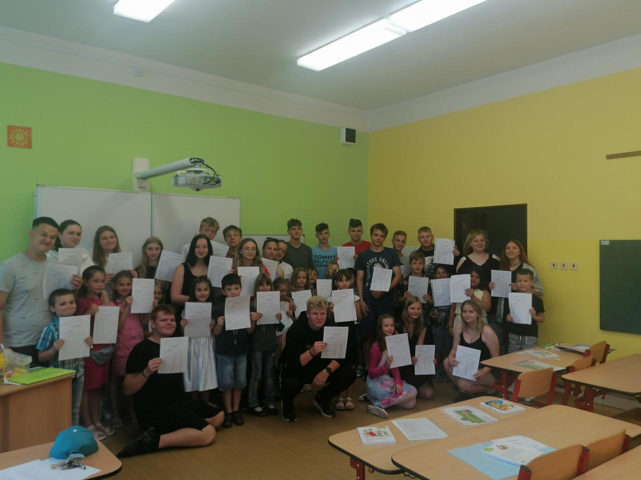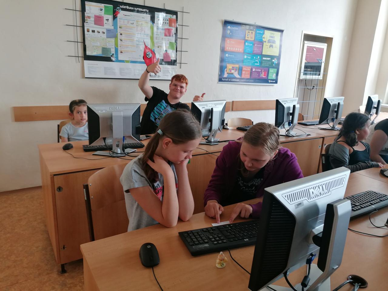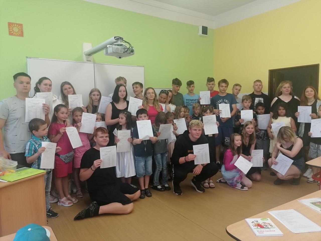 Naši kamarádi z 9.A nám stihli ještě poslední týden ukázat, jak se pracuje v počítačové učebně. Ve čtvrtek jsme se s nimi rozloučili v tělocvičně a předali jsme jim vlastnoručně vyrobená srdíčka s fotkou na památku. V pátek se s námi ještě přišli vyfotit s vysvědčením. Přejeme jim hodně úspěchů.