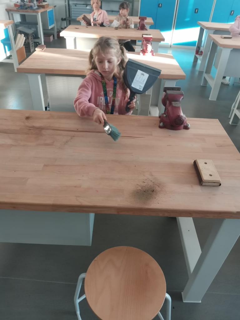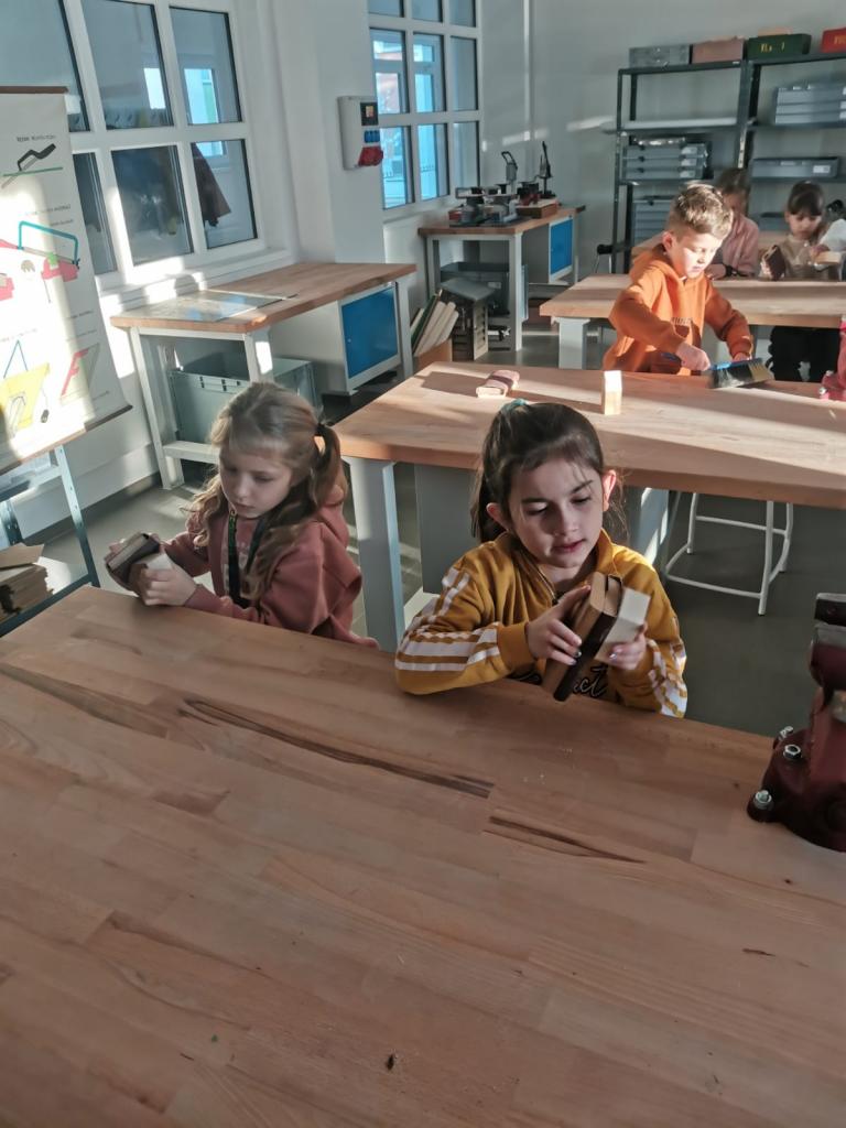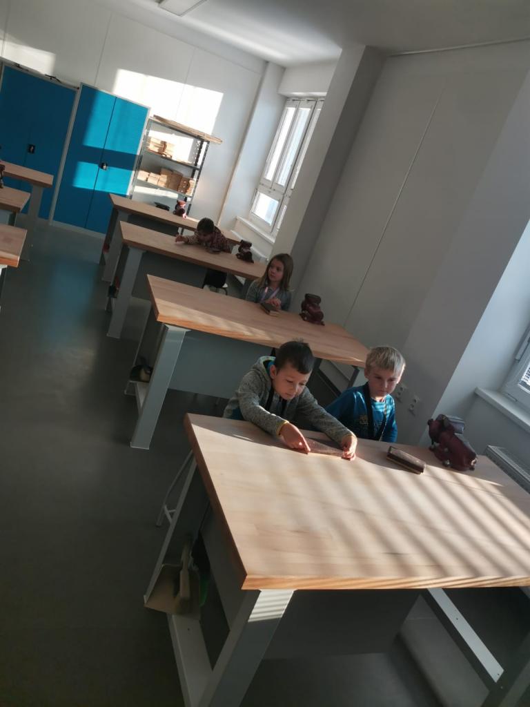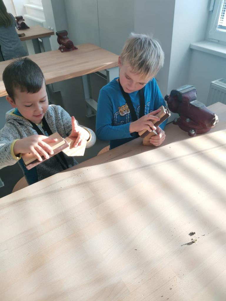 Navštívili jsme i naši novou dílnu, kde jsme brousili dřevěné výrobky. Ve třídě jsme potom pracovali s temperovými barvami. Při práci nás navštívili čert s Mikulášem a andělé. Děkujeme všem rodičům, kteří nás přišli podpořit a naše výrobky si na jarmarku zakoupili.