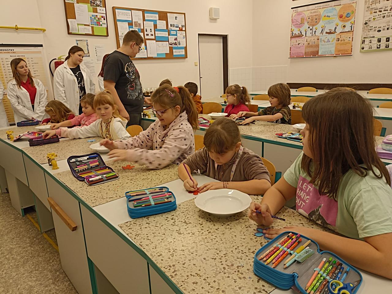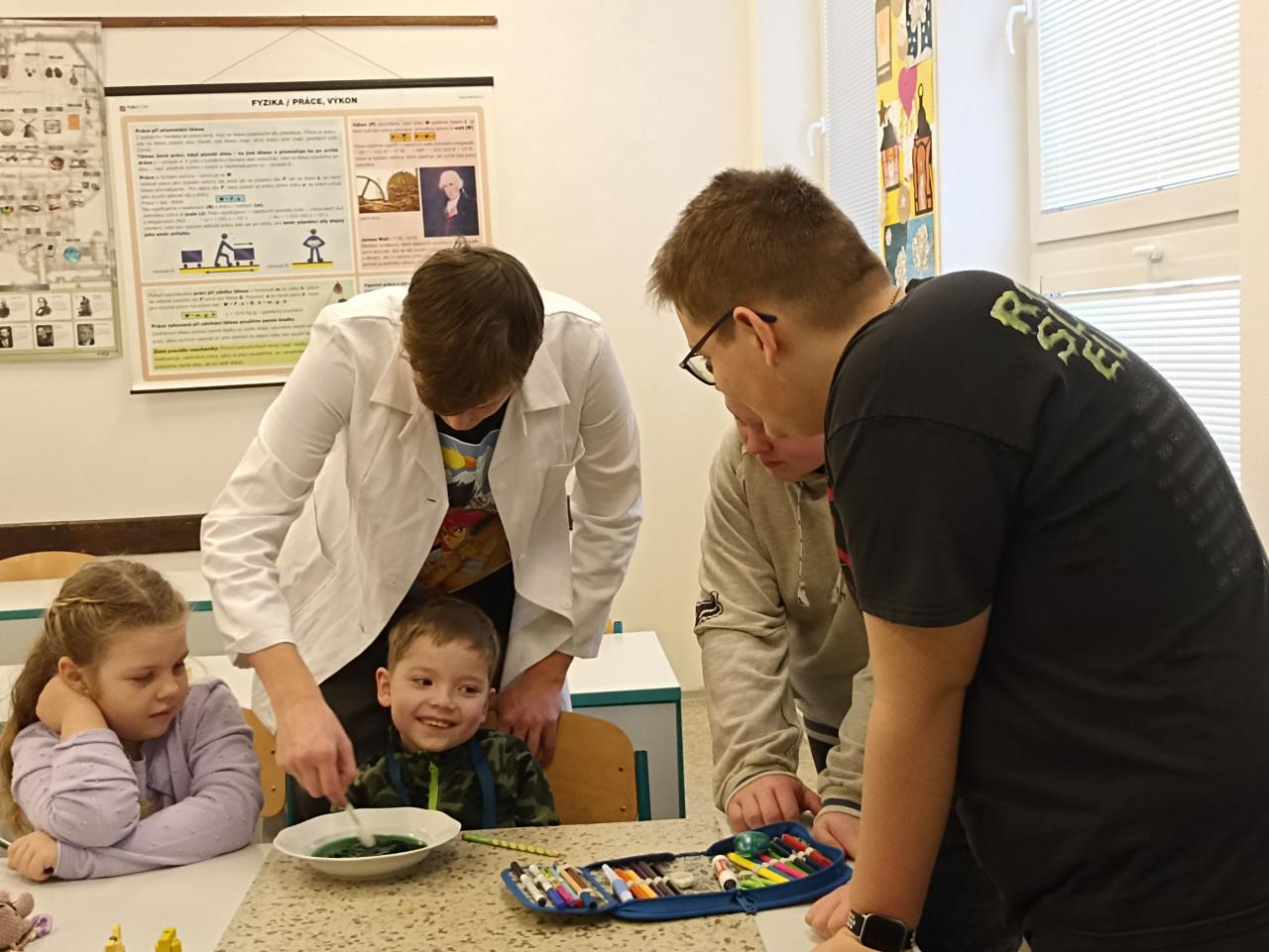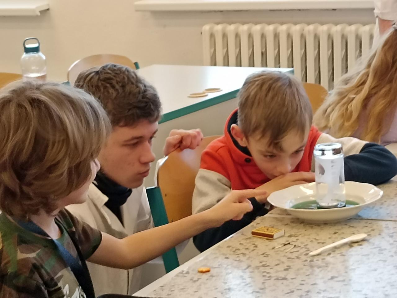 Naši kamarádi z devátých tříd za námi často chodí, abychom jim předvedli, co umíme nebo abychom něco společně vyrobili. Tentokrát jsme se přišli podívat, co umí oni. Předvedli nám zajímavé pokusy, kterých jsme se mohli také zúčastnit...