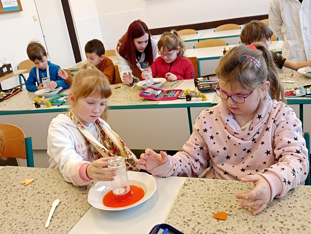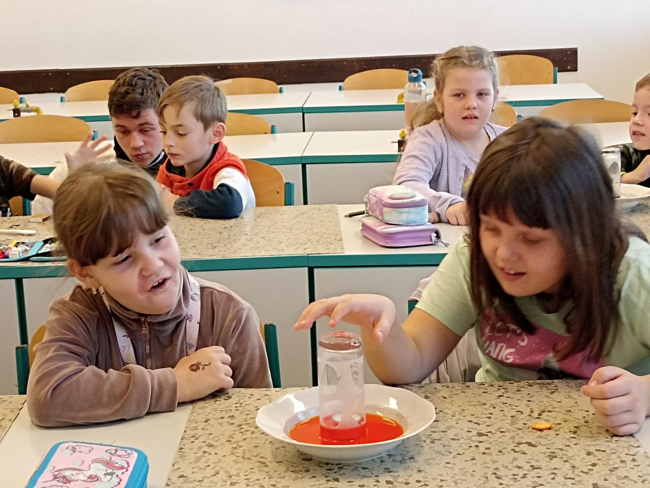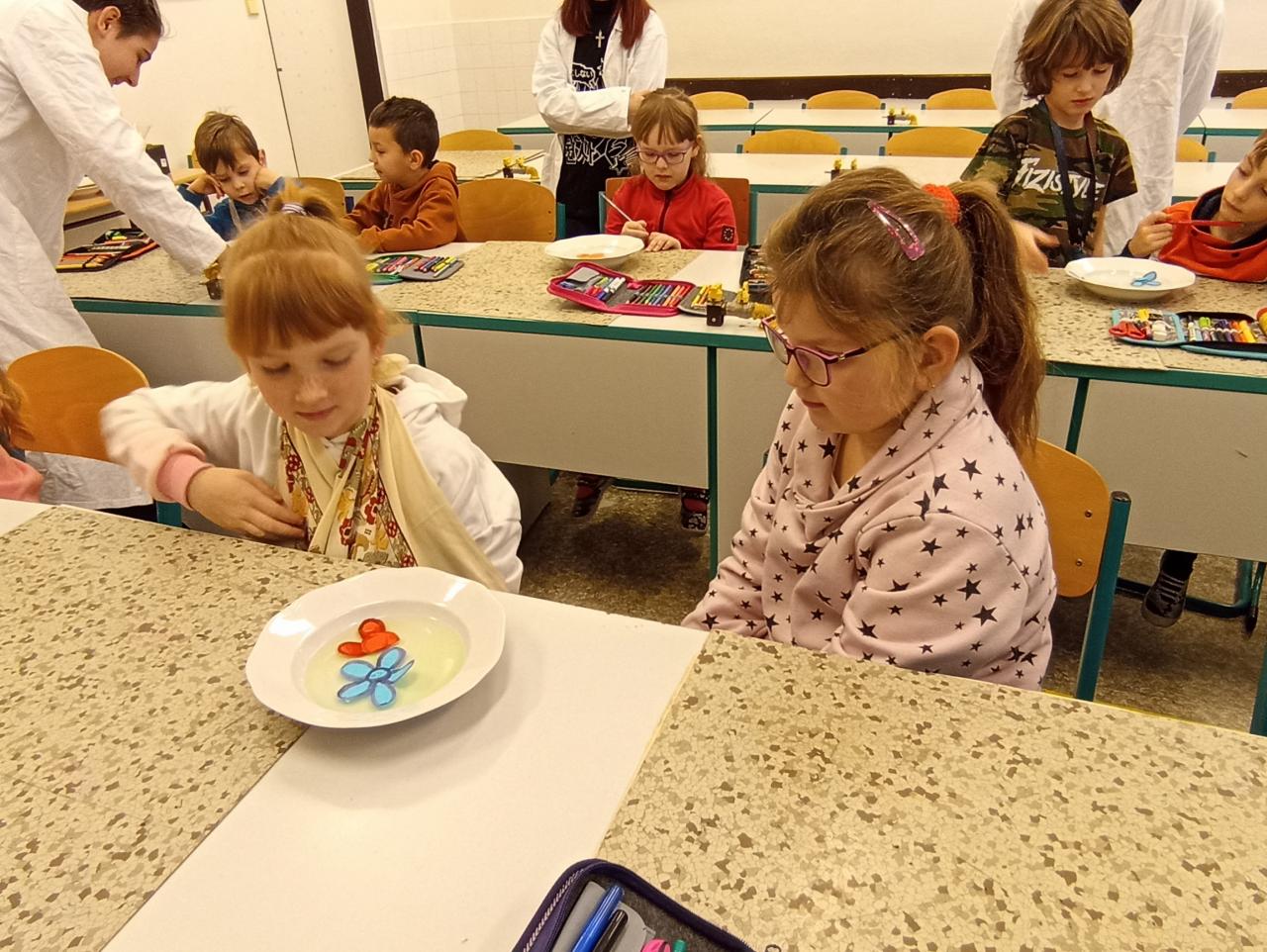 Naši kamarádi z devátých tříd za námi často chodí, abychom jim předvedli, co umíme nebo abychom něco společně vyrobili. Tentokrát jsme se přišli podívat, co umí oni. Předvedli nám zajímavé pokusy, kterých jsme se mohli také zúčastnit...