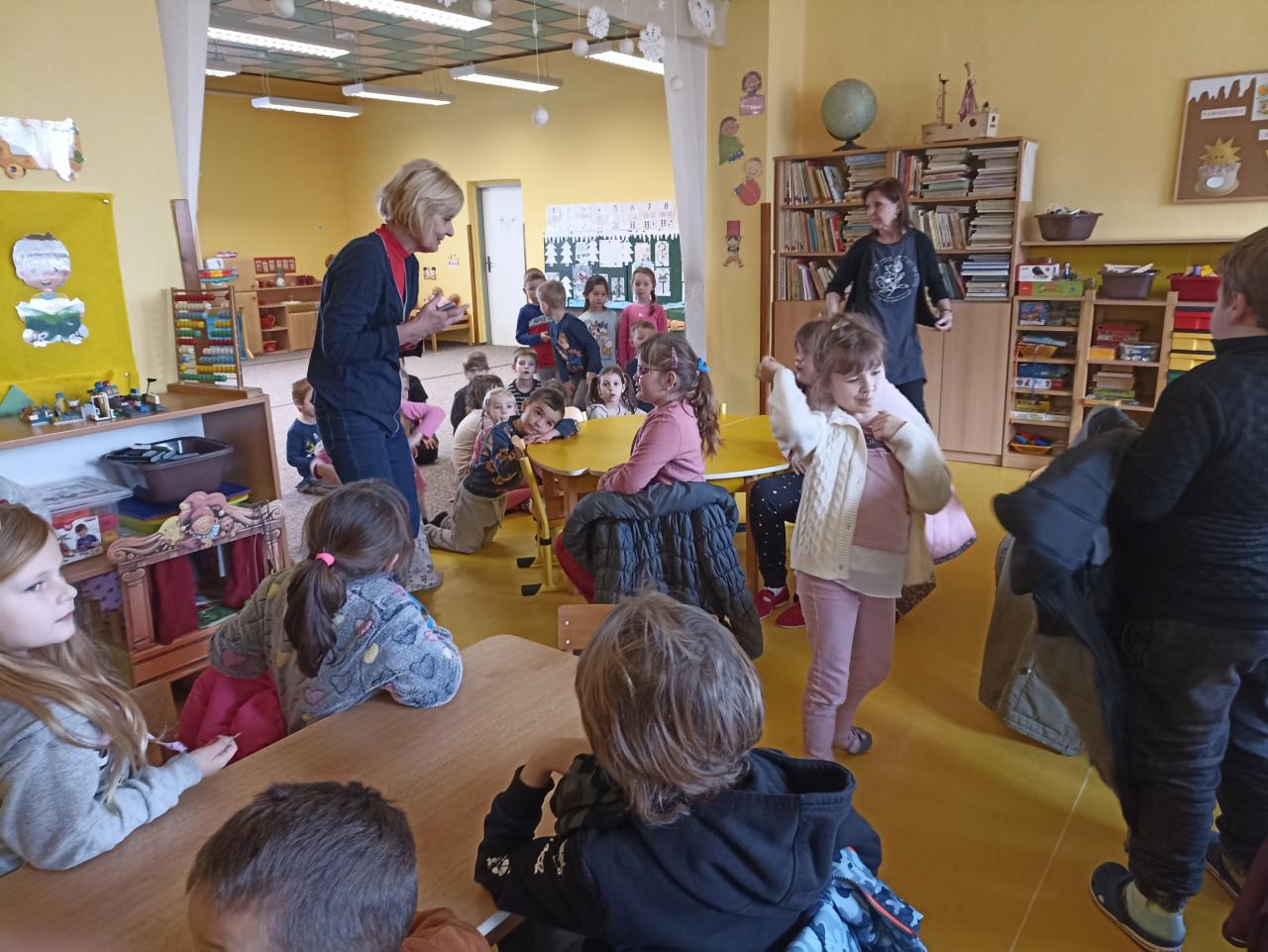 V pátek jsme si zpestřili den návštěvou v MŠ Větrná, kde nás přivítaly milé paní učitelky a pozdravili jsme se s našimi kamarády. Společně jsme shlédli pohádku O pejskovi a kočičce, u které jsme se hodně nasmáli. Od předškoláčků prvňáčci dostali i dáreček. Už se těšíme se na další setkání.