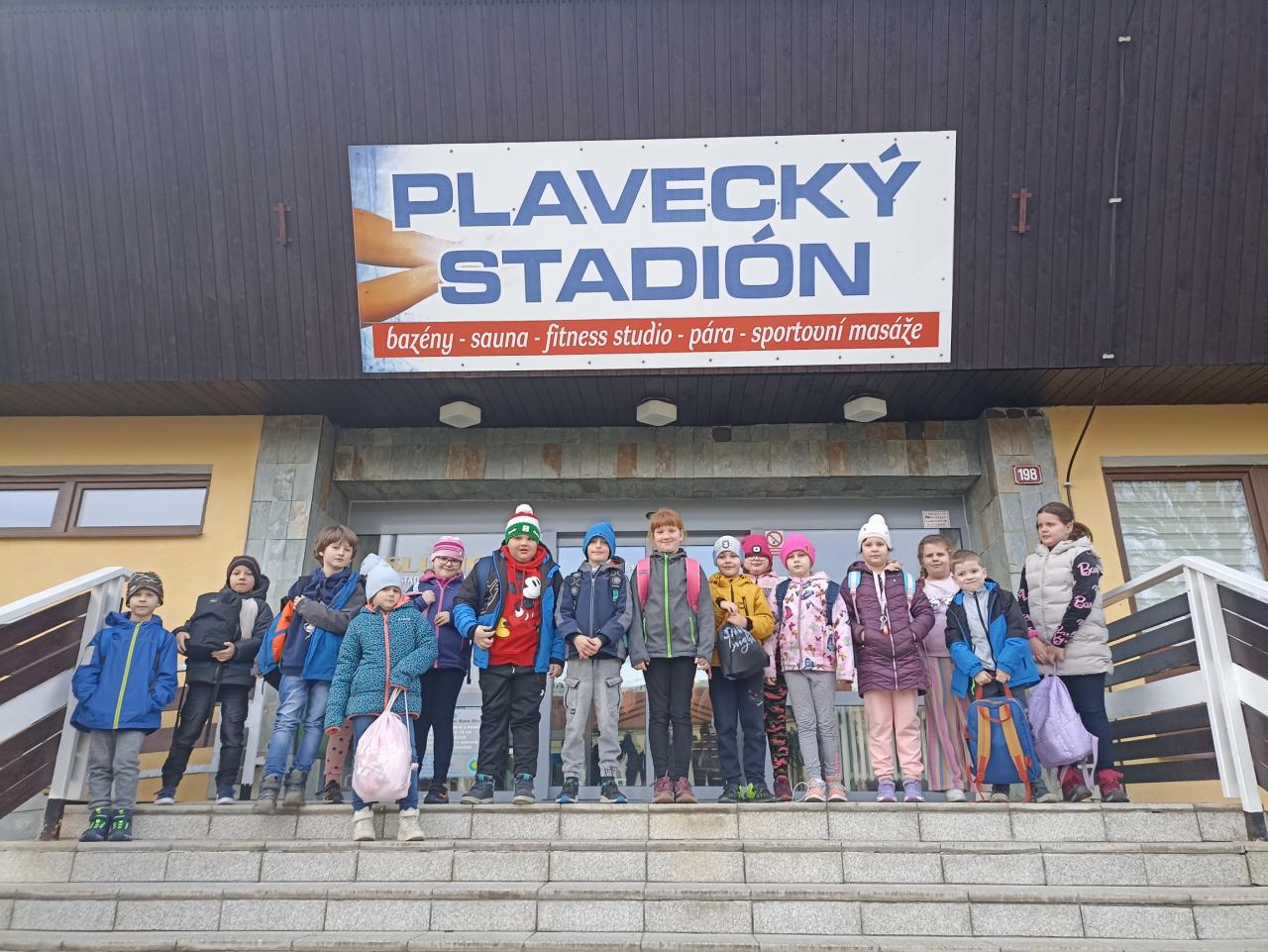 V pátek 8.3. jsme se konečně dočkali a vyrazili do Kutné Hory na první lekci plavání. Byli jsme trochu nervózní, protože jsme nevěděli, co nás čeká i když nám paní učitelka vše vysvětlila. Nakonec vše dobře dopadlo, byli jsme rozřazeni do družstev, lekci si užili a těšíme se na příště...